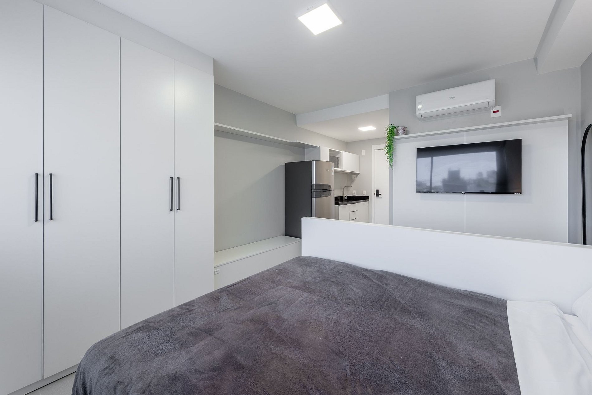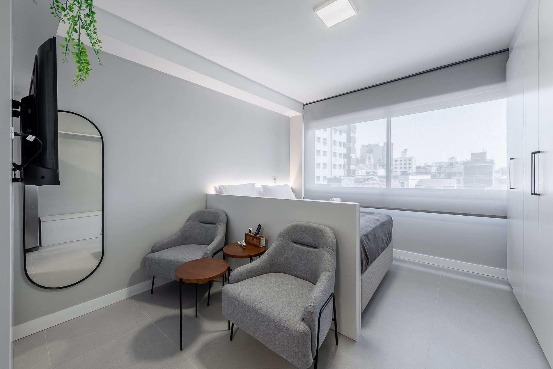 Bariloche Studio is an urban retreat in the elegant Bela Vista neighborhood, located in Skyline Park Moinhos. Inspired by the calm and charm of snowy mountain landscapes, it blends thoughtful design with cozy comfort in a space featuring a fully equipped kitchen, fast Wi-Fi, a couple-size bed, and hot and cold air conditioning. From above, it offers an inspiring view of Porto Alegre, just minutes from Moinhos de Vento Park.