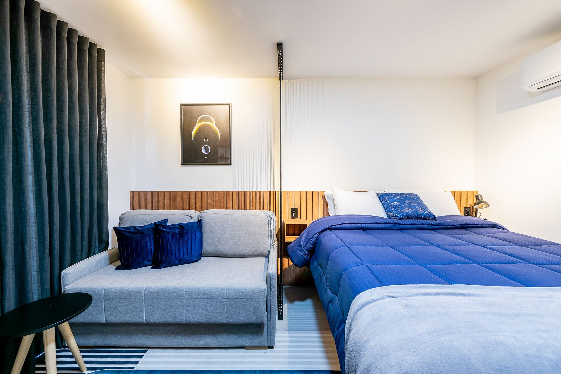 During your stay, guests will have access to the building’s gym, coworking space, laundry room, bicycle parking, and the entertainment area on the rooftop. Common areas of the building do not require a reservation and are freely accessible to guests. Event and party spaces are not available to guests.