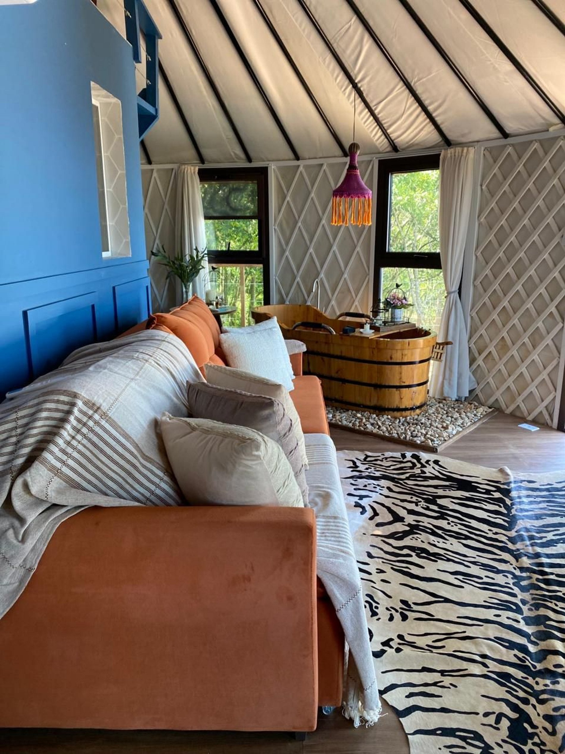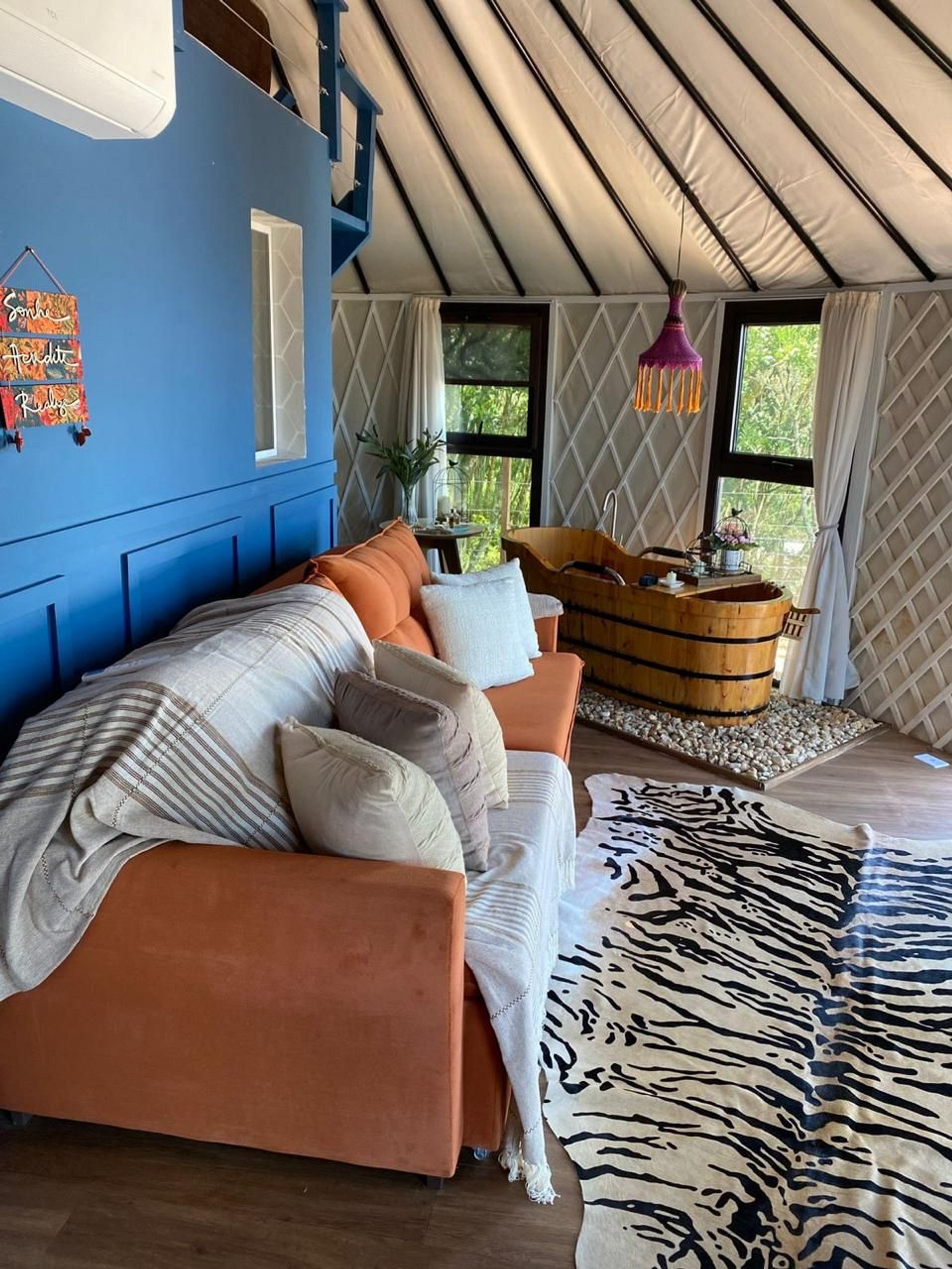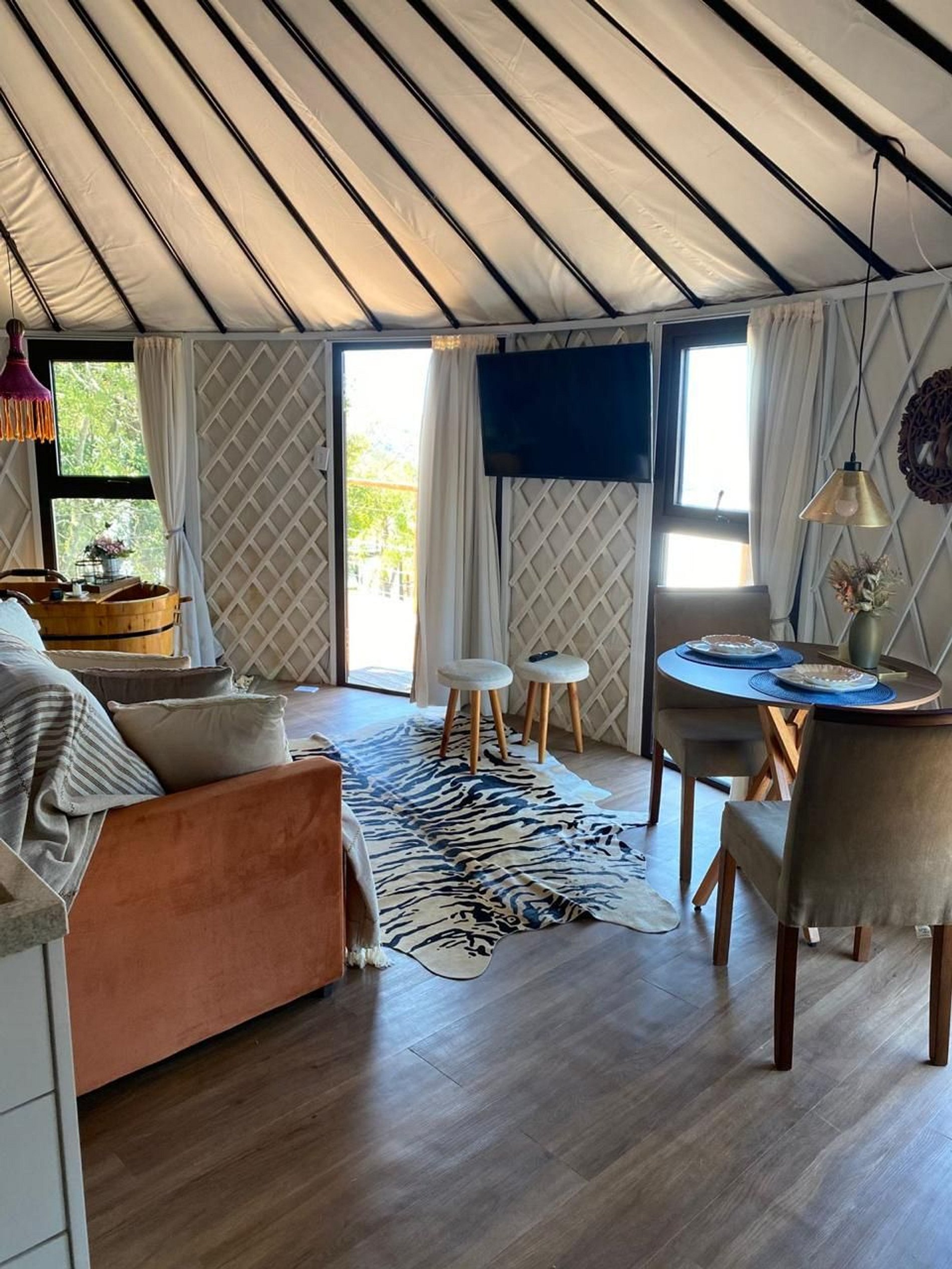 Exclusive yurt surrounded by nature, lush greenery, and a stunning panoramic view. A cozy retreat where you can relax, with a fully equipped kitchen, a soothing bathtub, and a private deck perfect for watching the sunset and connecting with the environment. Ideal for couples, families, or anyone seeking tranquility, comfort, and a genuine connection with nature. Located just minutes from Osório and Santo Antônio da Patrulha.