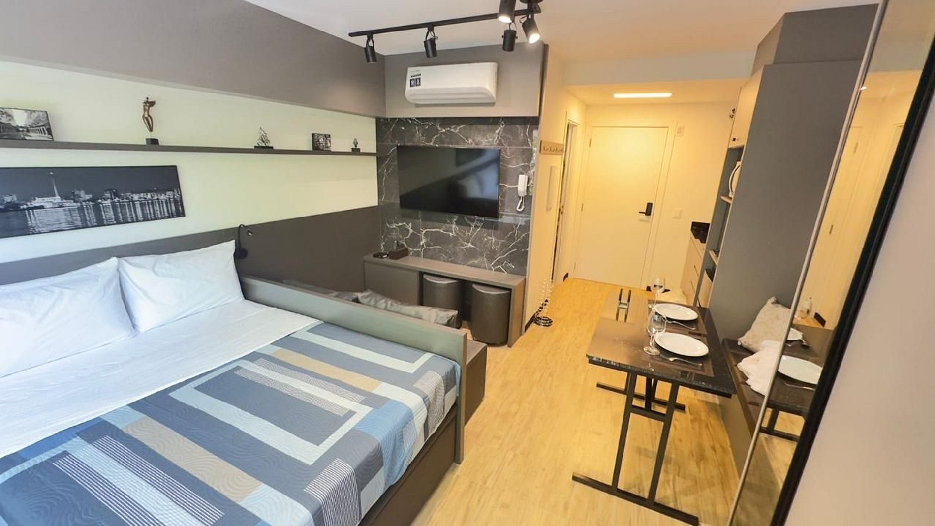 Black Marble Studio offers a modern and sophisticated space located in the MontSerrat neighborhood of Porto Alegre. With an elegant black-themed decor and marble finishes, it’s the perfect setting for a comfortable stay.