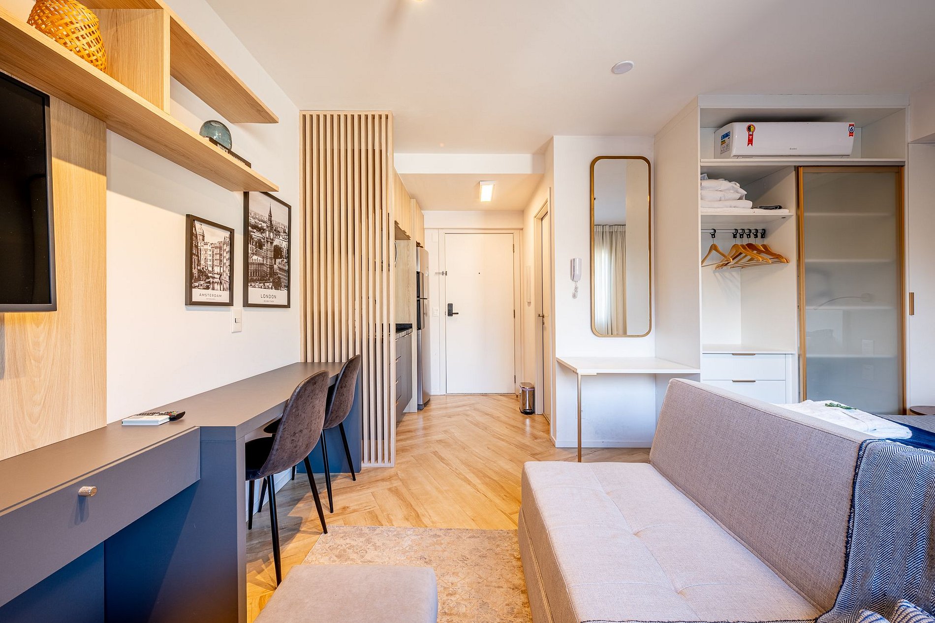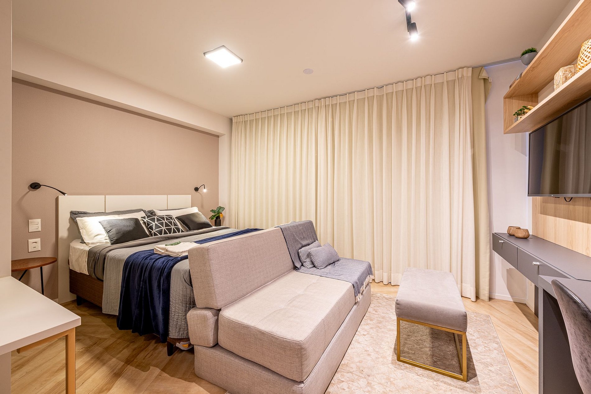 Discover the charm of Studio C509, located on the 5th floor of the incredible Lucas By YOO — a modern, high-end building. Perfect for up to 3 guests, with a queen bed, sofa bed, fully equipped kitchen, Wi-Fi, air conditioning, and 1 covered (rotating) parking spot. Pet friendly — your best friend is welcome too! A stay full of comfort, style, and practicality in the perfect spot to relax or enjoy the city.