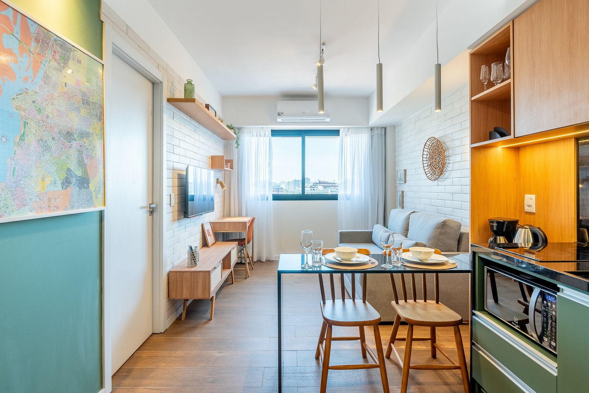 At Casa Brasileira, every detail has been designed for your comfort. 1-bedroom apartment in Rio Branco with a queen bed, sofa bed in the living room, hot/cold air conditioning in both rooms, full kitchen, tv on living and bedroom, Wi-Fi, and fixed parking in the building. 24/7 staffed front desk and self check-in via digital lock. Central boiler hot shower, linens/towels included. Prime location near UFRGS, Redenção Park, cafés, and restaurants.