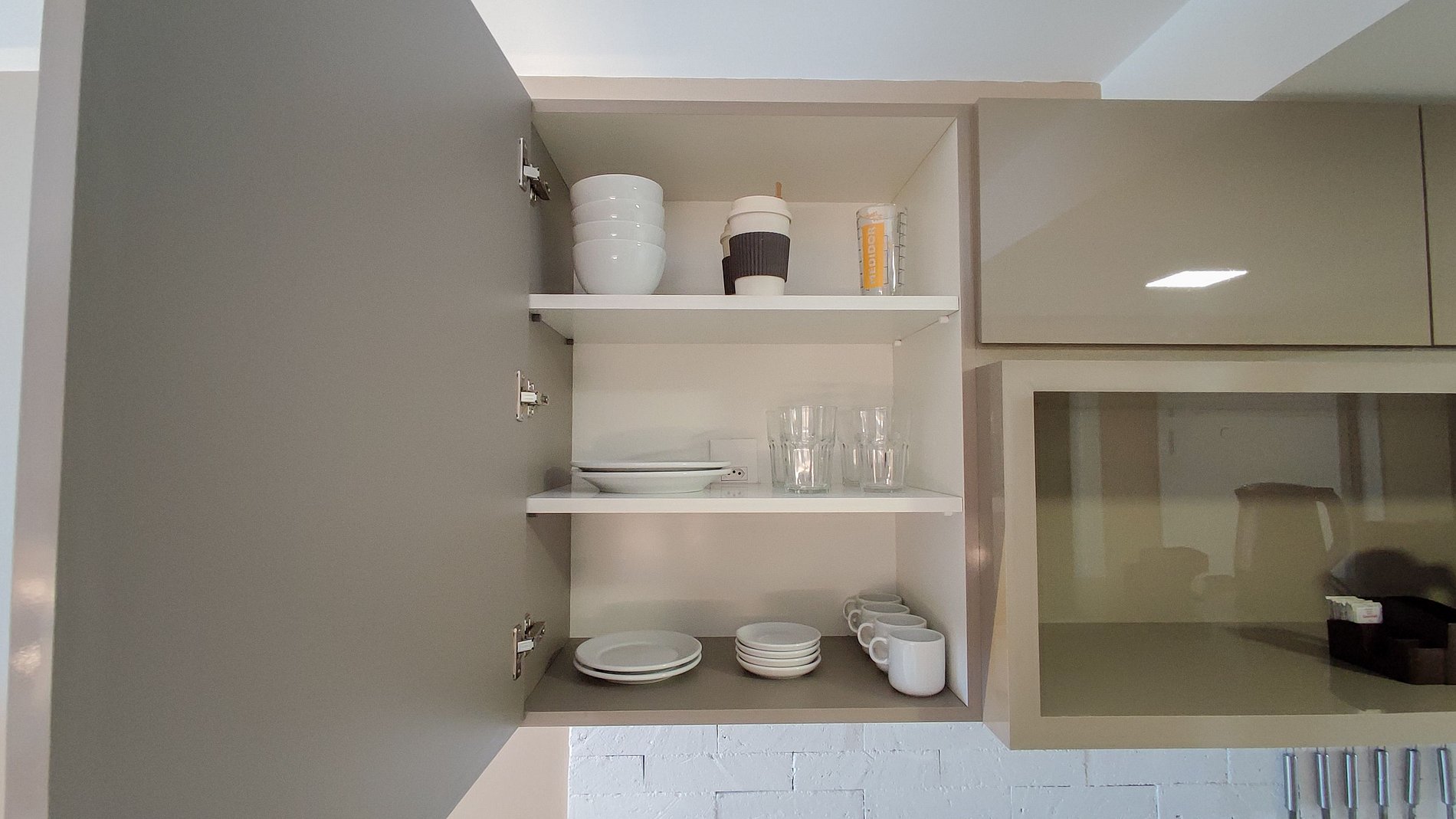 - pans, glasses, wine glasses, sparkling wine glasses, crockery and cutlery