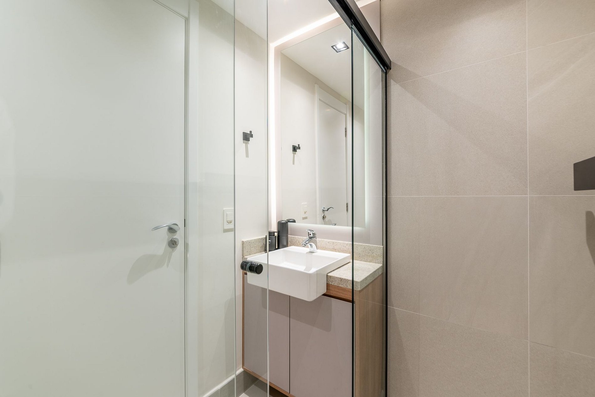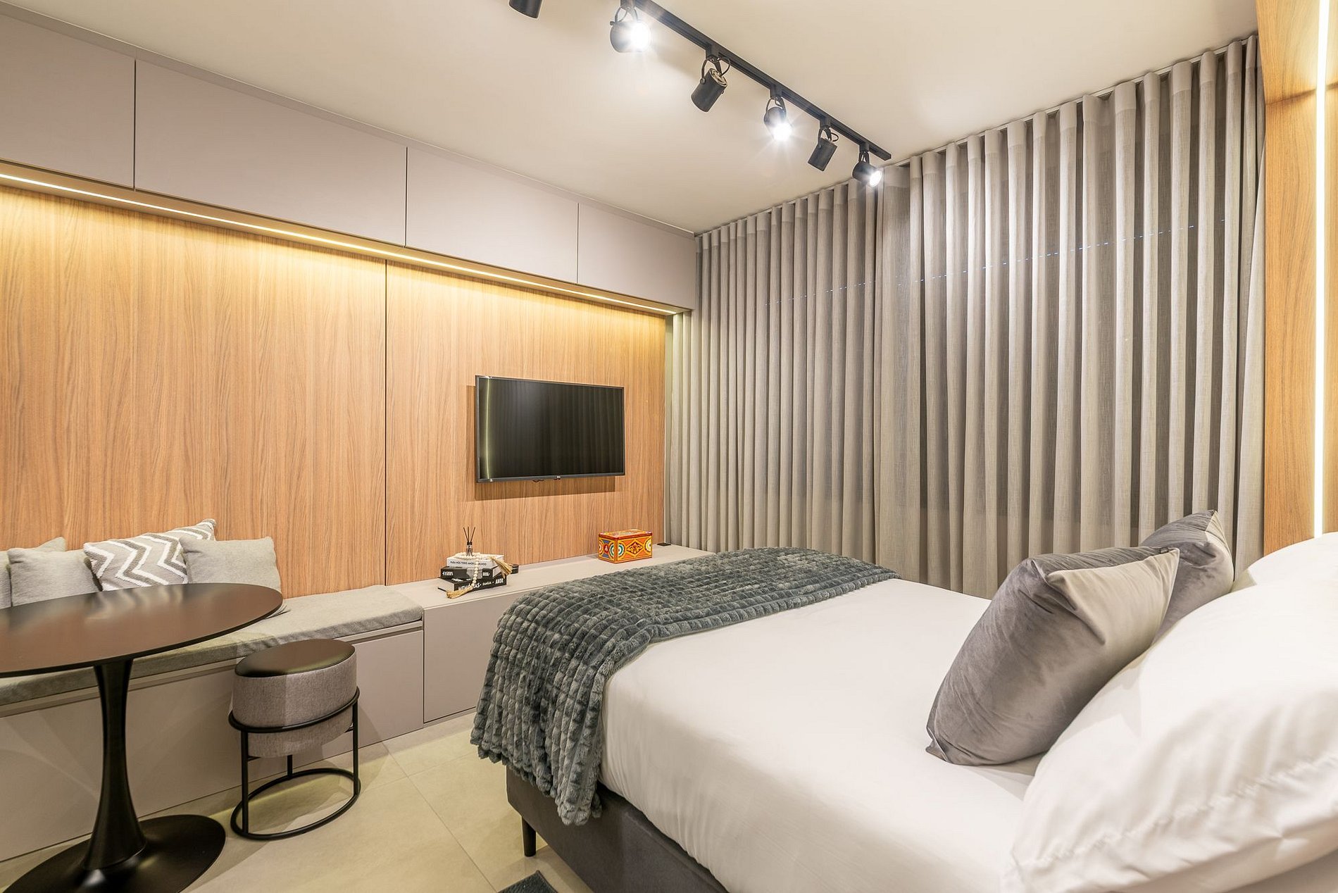 Studio Di Luce is a charming urban retreat in the Skyline Parque Moinhos. On the 7th floor, natural light flows through elegant curtains, revealing a modern and cozy space. A double bed, fully equipped kitchen, hot/cold air conditioning, and Smart TV ensure comfort. With 24-hour concierge, digital self check-in, and rotating parking, you’ll be close to the best cafés, restaurants, and the vibrant energy of Porto Alegre.