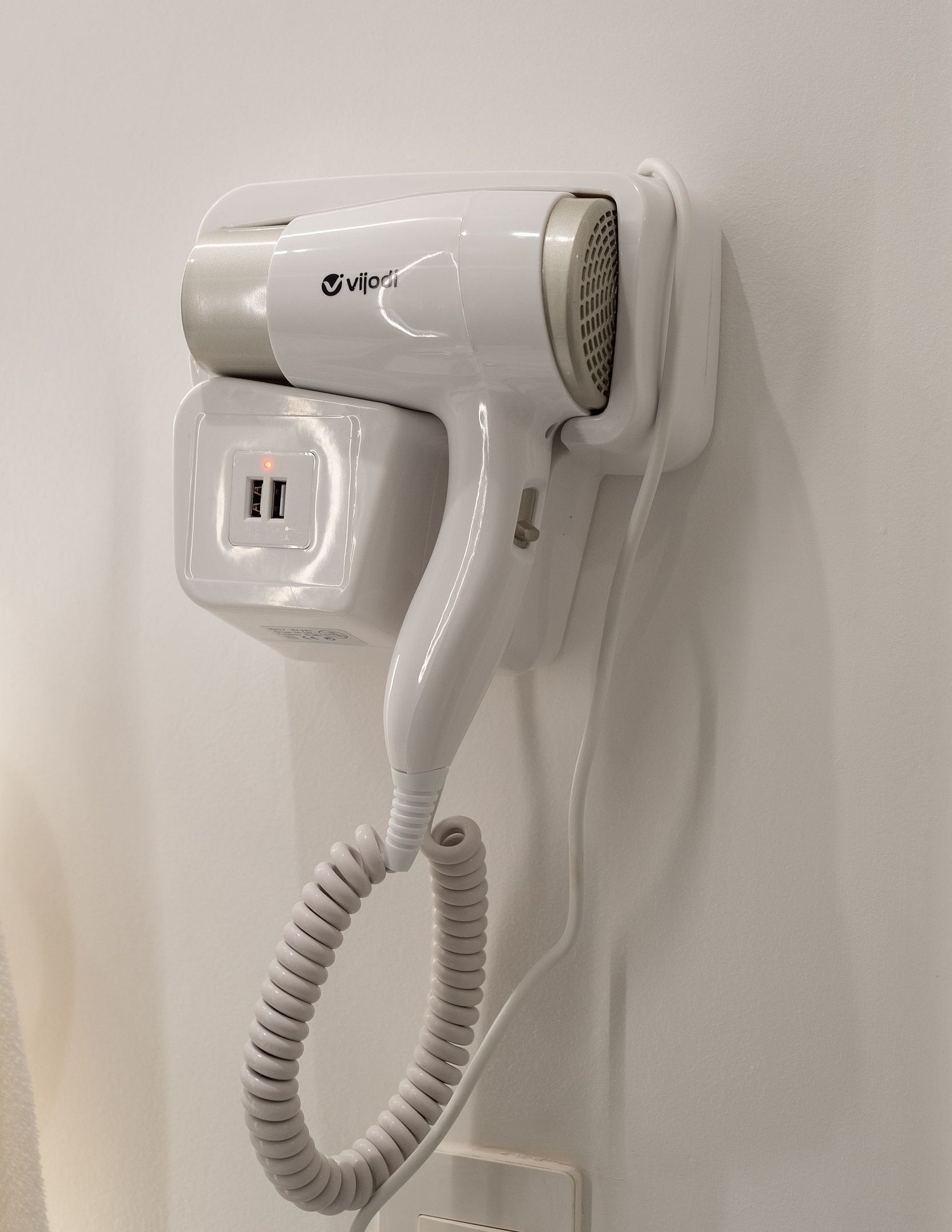 Child safety: the accommodation includes small objects and lacks childproofing features such as drawer locks and outlet covers. The windows present a fall hazard, and no extra mattress is available for children.