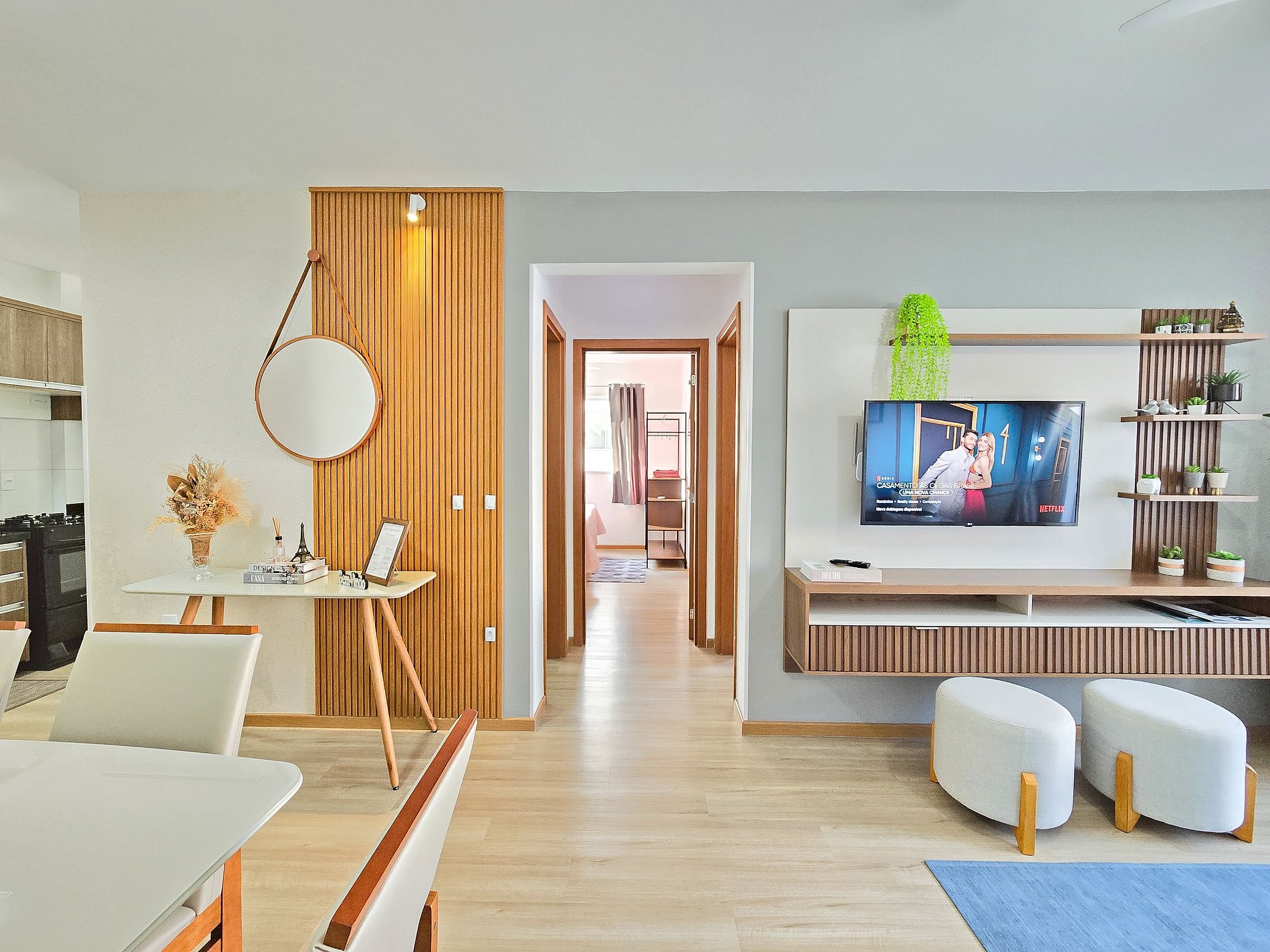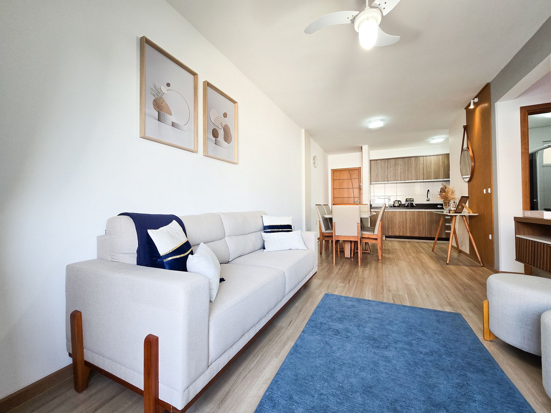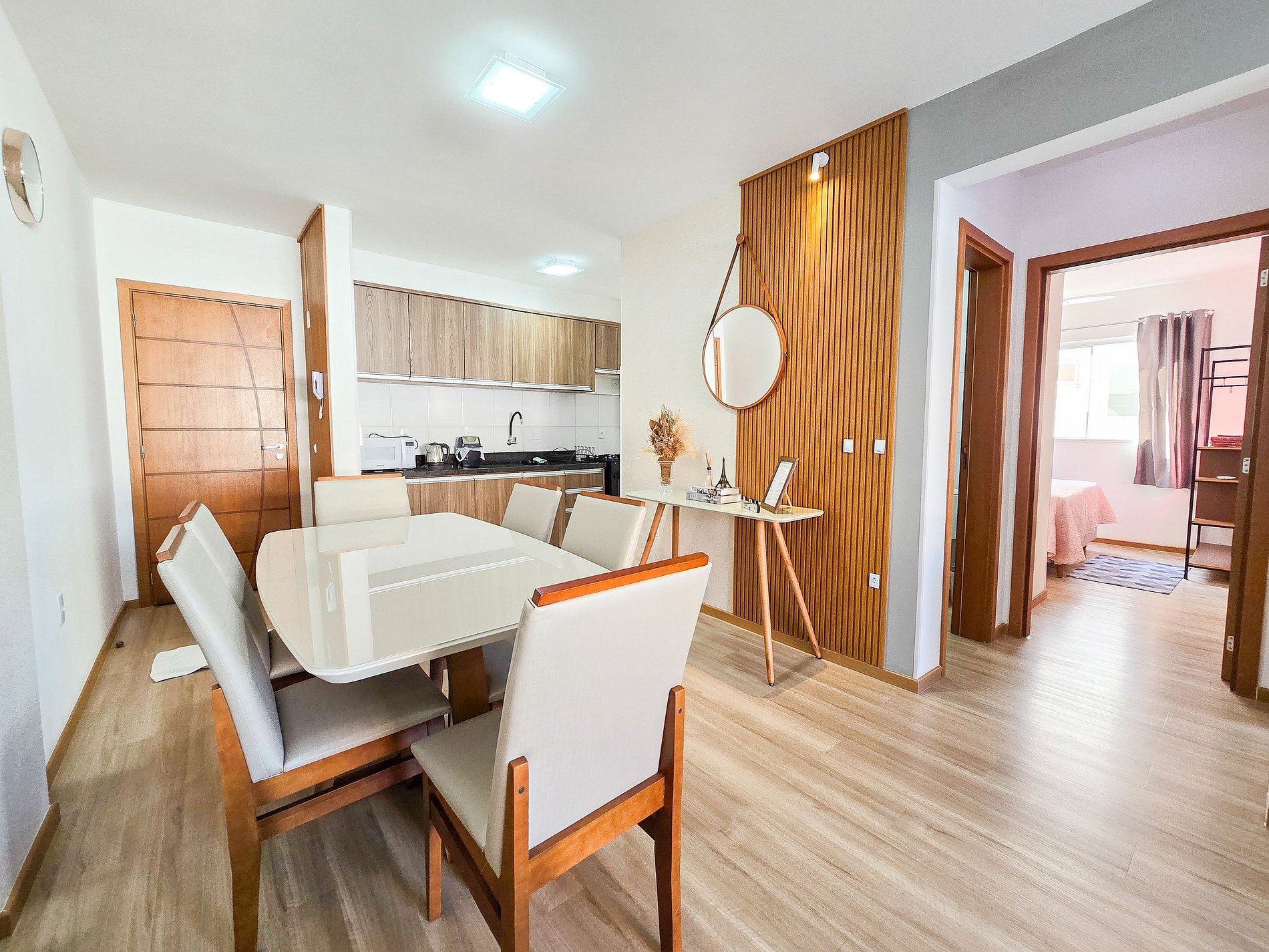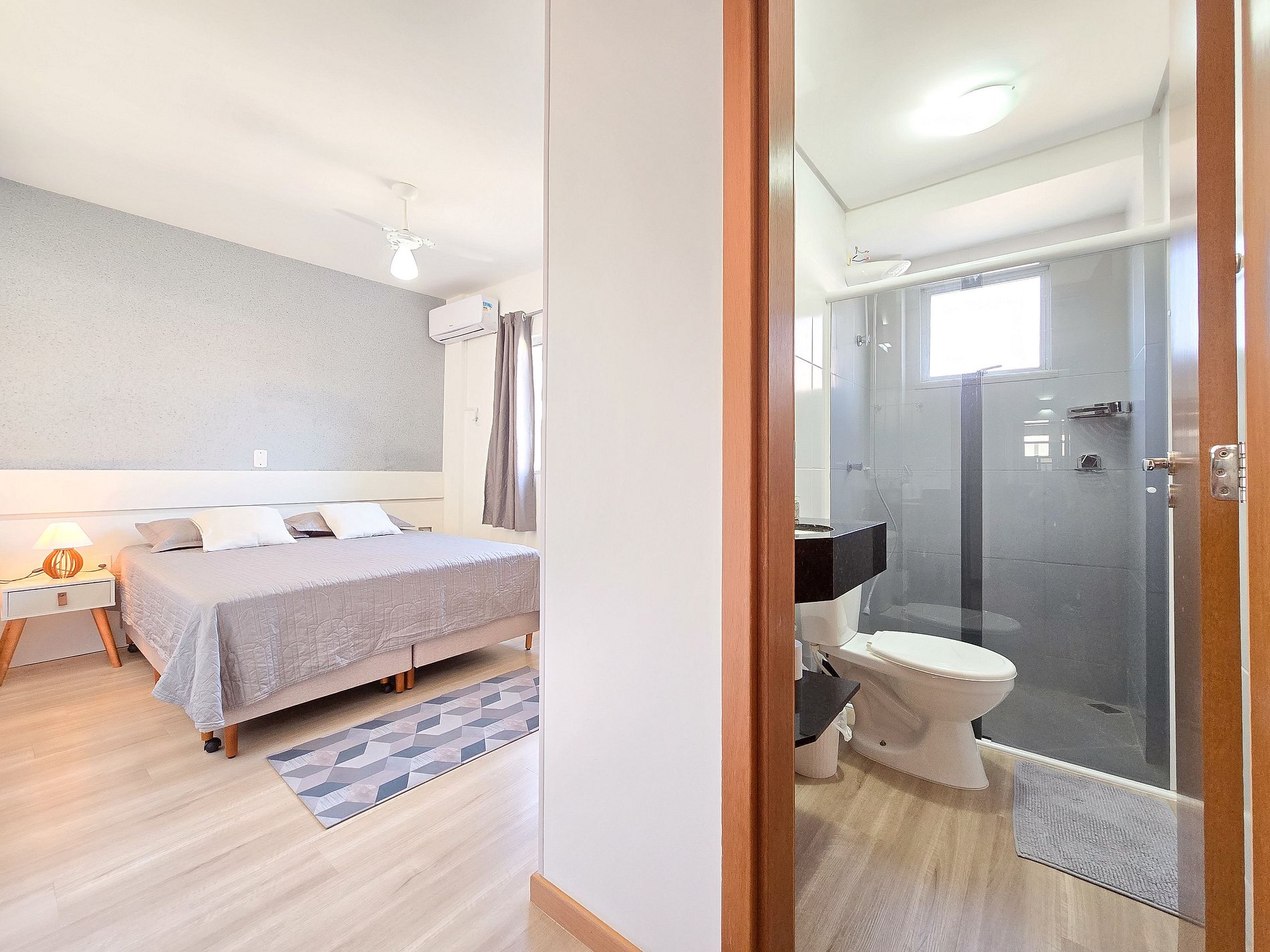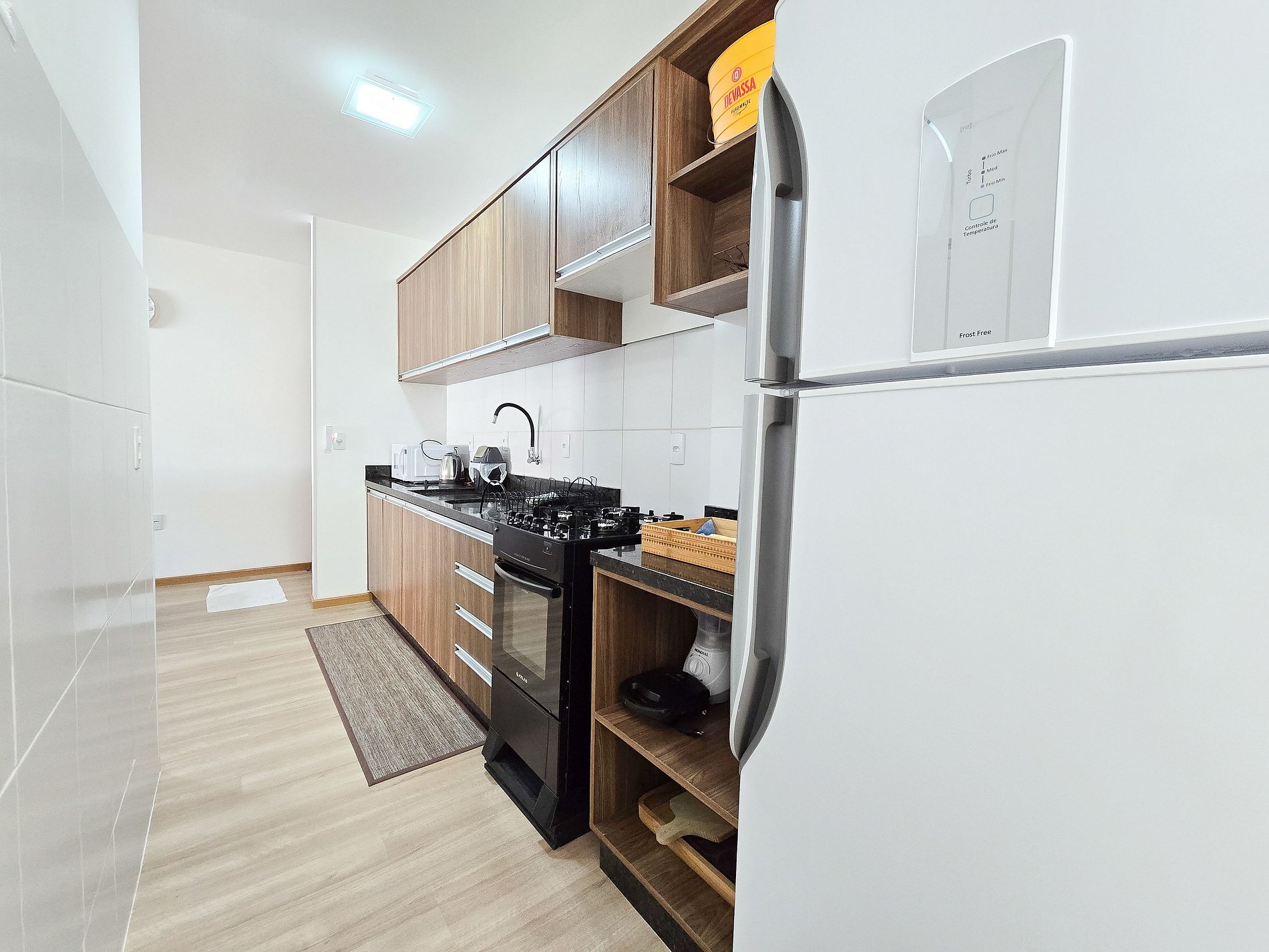 Apartamento com 2 dormitórios (1 suíte) acomoda até 5 pessoas, apenas 900 metros de distancia da praia de Bombas em Bombinhas. Infraestrutura com academia ao lado do condomínio, supermercado a poucos metros de distância em condomínio com zeladoria até as 18 horas e vigia noturno a partir das 22hrs.