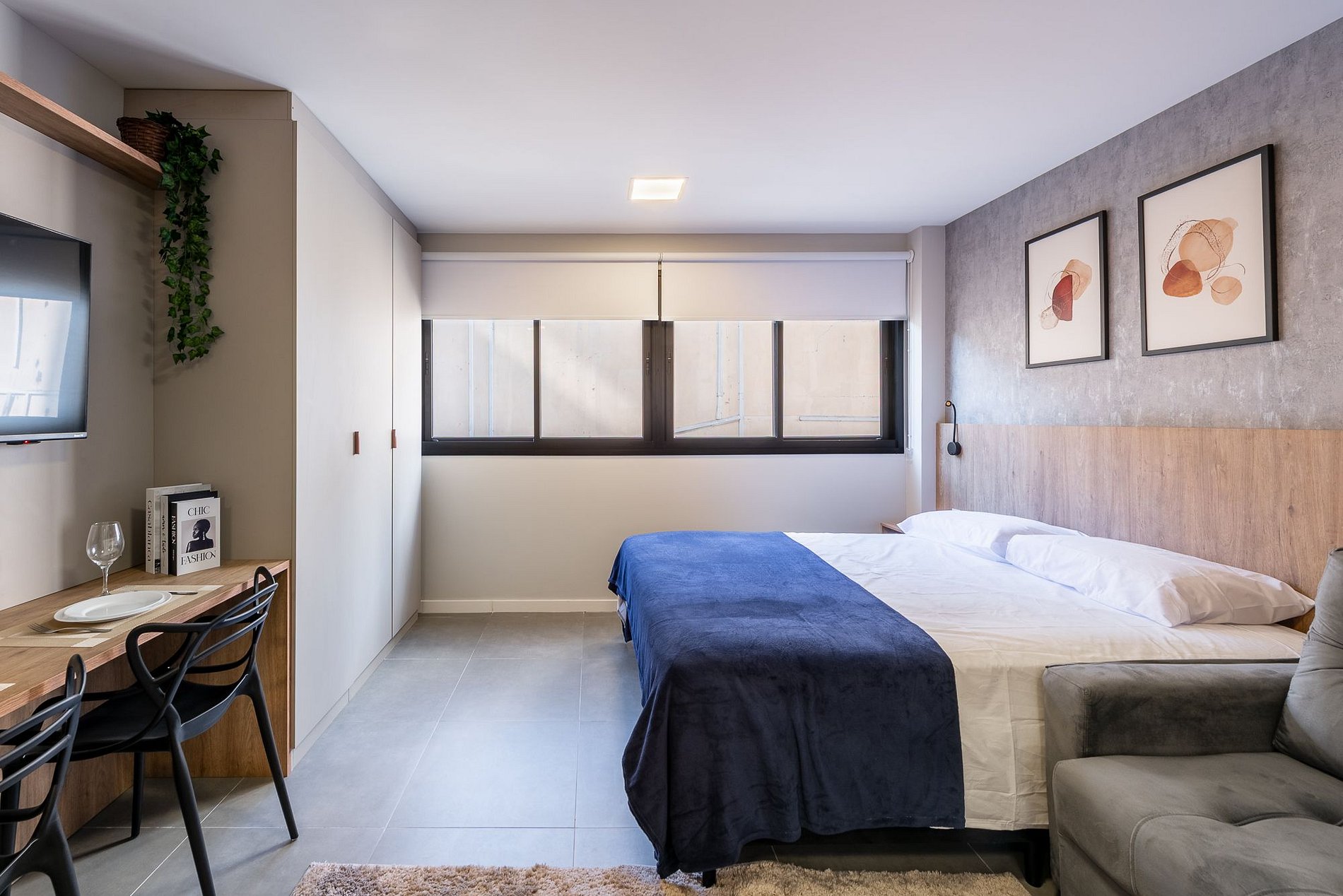 Studio Oliva combina confort, practicidad y diseño en el corazón del barrio Boa Vista. Ubicado en el moderno edificio GO Carlos Gomes, ofrece una cómoda cama doble, cocina completamente equipada, mesa para comer o trabajar y una hermosa vista de la ciudad. Con acceso a la piscina, gimnasio, lavandería y terraza, es el refugio ideal para quienes buscan bienestar y comodidad en Porto Alegre.
