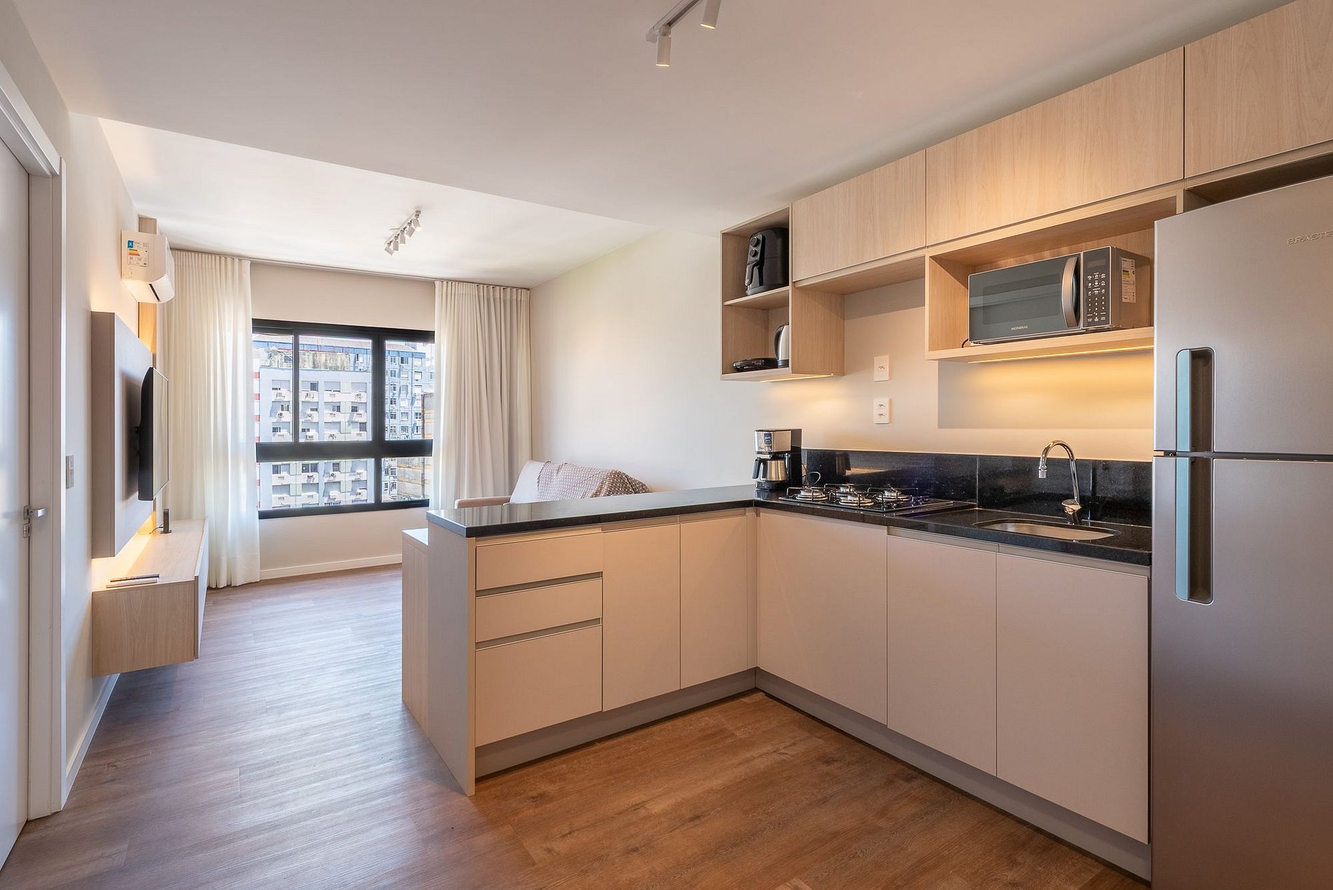 El Apartamento Toledo, ubicado en GO Cidade Baixa, fue diseñado para ofrecer confort, practicidad y una experiencia urbana completa, ideal tanto para estancias cortas como prolongadas.