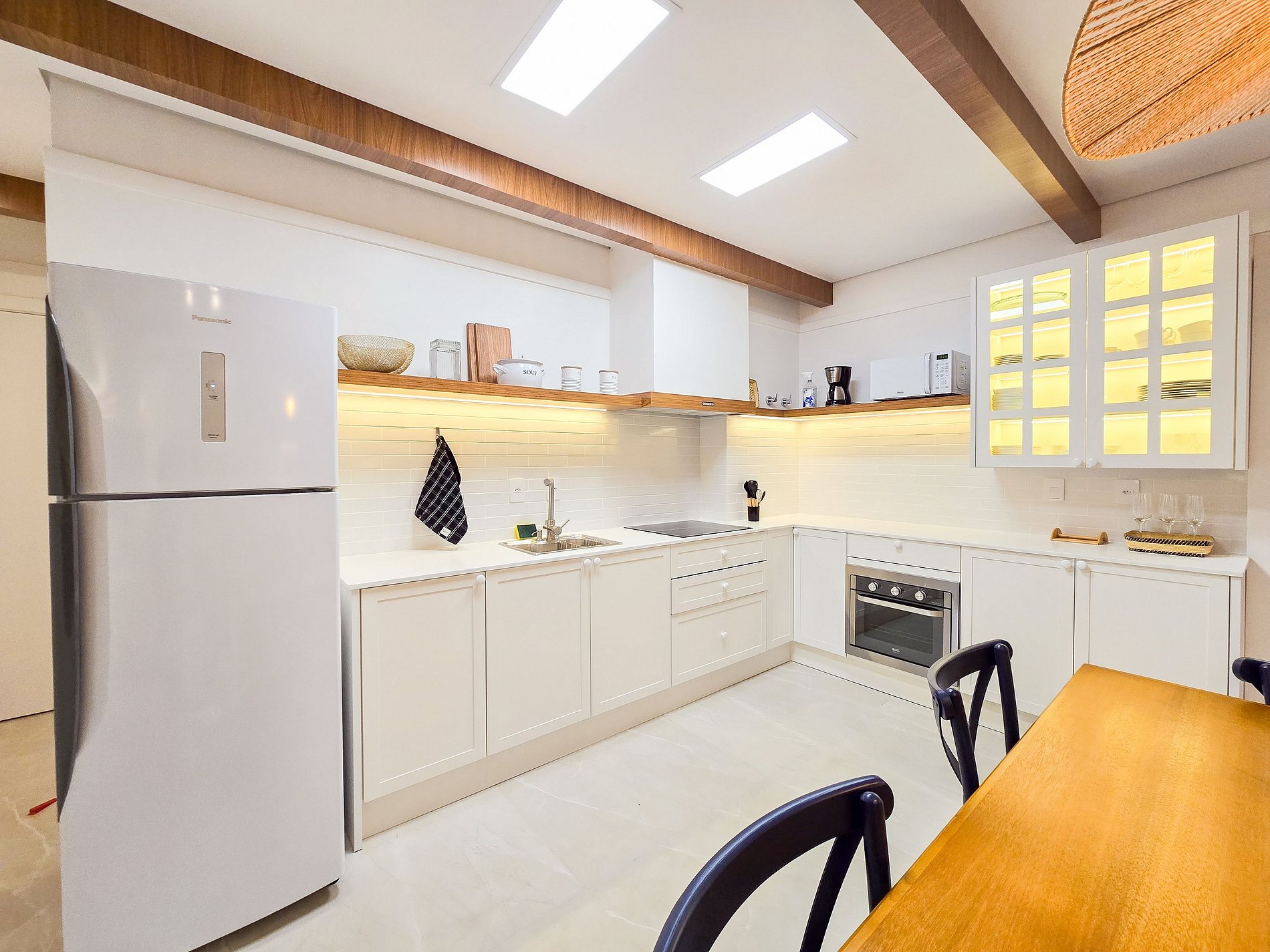 El apartamento aloja cómodamente hasta 5 huéspedes, considerando el sofá cama en la sala. Las camas Simmons y los blackouts automatizados garantizan un excelente descanso. Aire acondicionado frío/calor disponible en ambos dormitorios. El balcón es cerrado e integrado, con parrilla. La cocina está totalmente equipada, ideal para comidas diarias y asados. La lavandería cuenta con lavadora-secadora y vaporizador para ropa. El apartamento dispone de 2 plazas de garaje. El uso de las áreas comunes del edificio (piscina, gimnasio, etc.) está sujeto a las normas del condominio. Ideal para familias, parejas o estancias de workation. No se permite fumar dentro del apartamento.