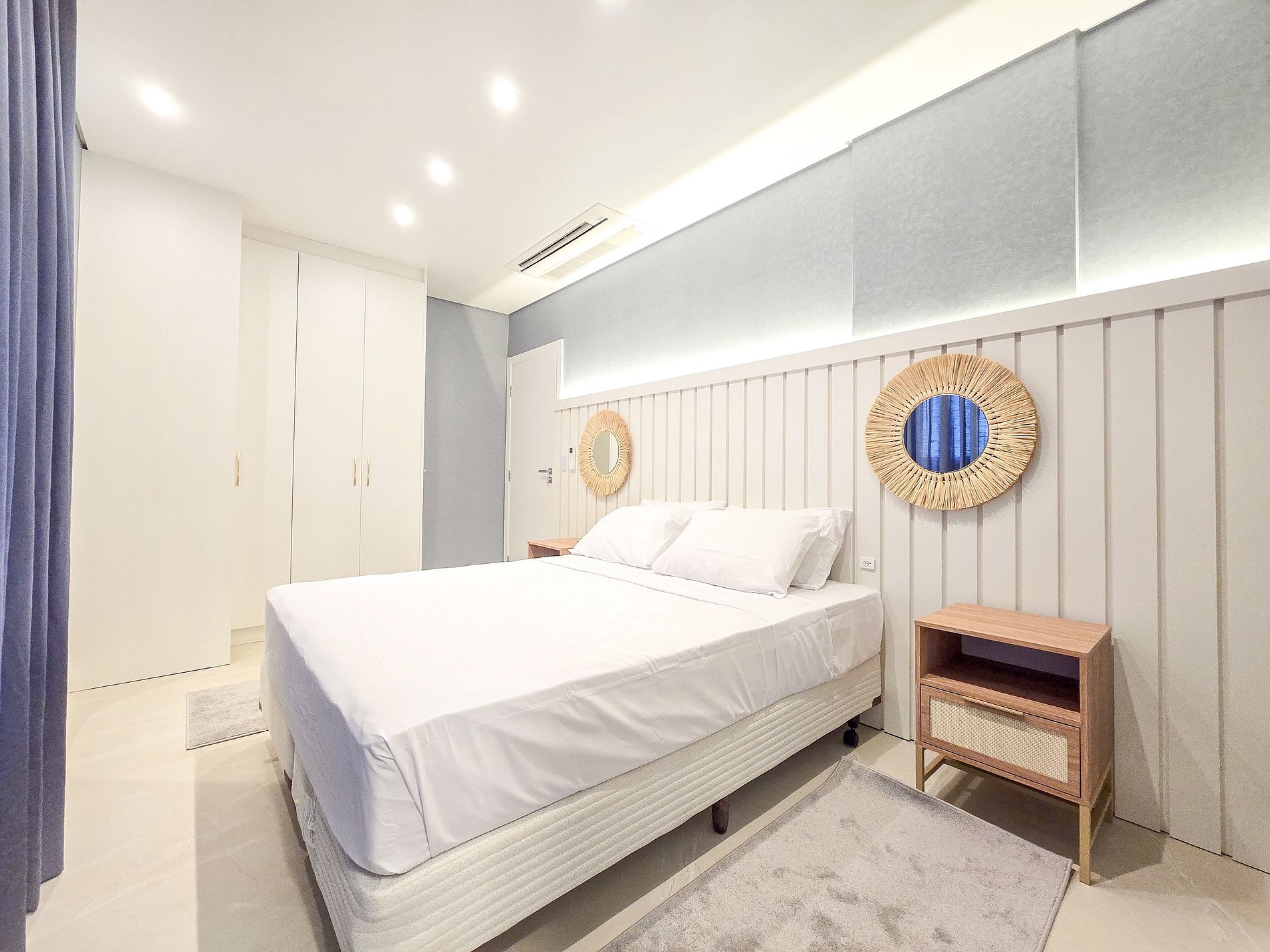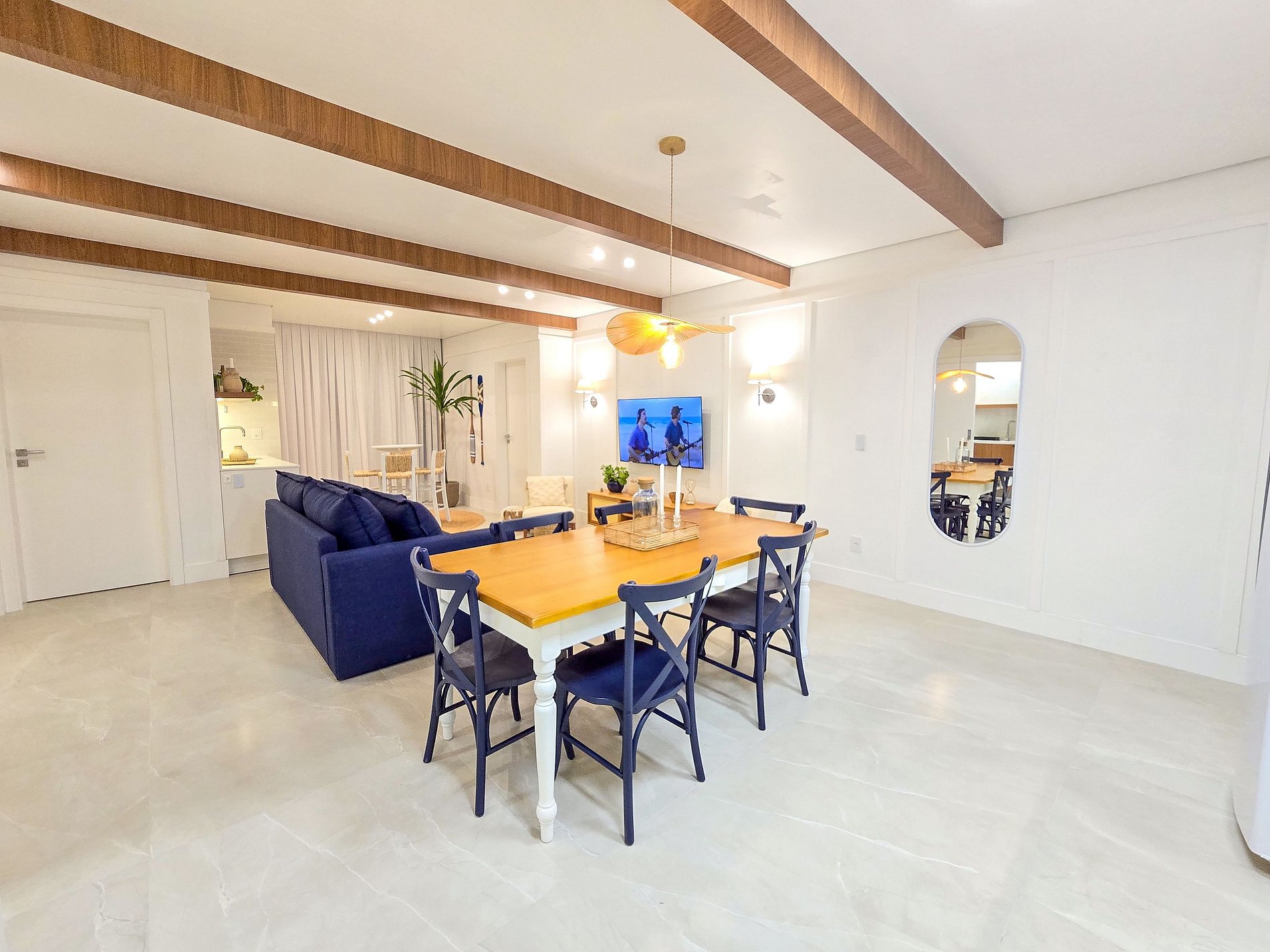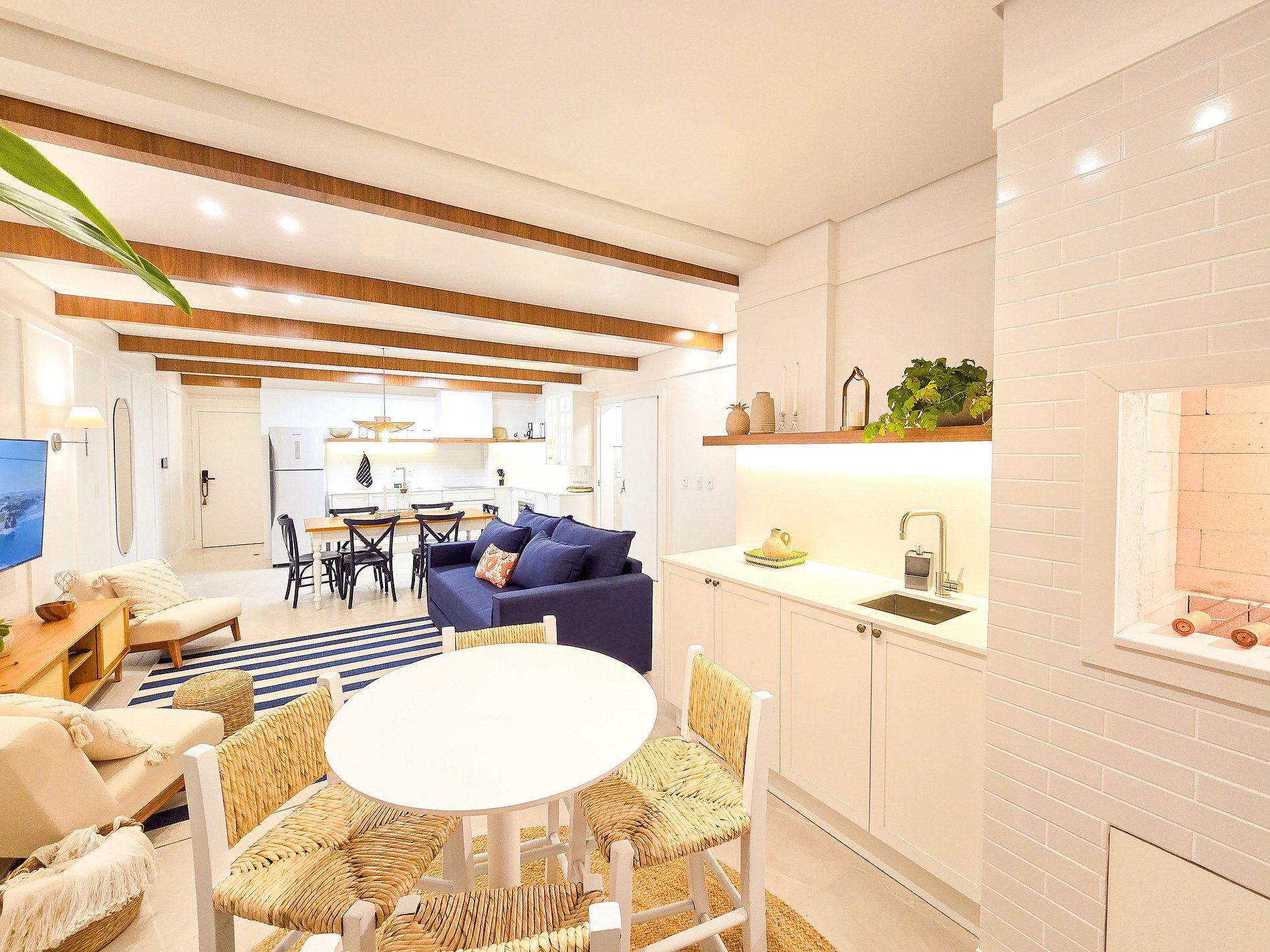El Apartamento Hampton fue diseñado para ofrecer comodidad, funcionalidad y una experiencia de playa sofisticada, con decoración inspirada en el estilo Hampton, ambientes amplios y totalmente equipados para estancias cortas o largas. El apartamento incluye ropa de cama de alta calidad, almohadas, mantas, toallas y amenities esenciales (shampoo, acondicionador, jabón y papel higiénico), garantizando comodidad desde el check-in. La cocina totalmente equipada cuenta con ollas, vasos, copas de cristal para vino y espumante, vajilla, cubiertos y utensilios básicos, además de horno eléctrico, microondas, cafetera, grill, mixer, refrigerador y kit de parrilla. El balcón cerrado e integrado con parrilla amplía el área social y es ideal para comidas y momentos de ocio. Las dos suites ofrecen excelente confort, con camas Simmons de alta gama, aire acondicionado frío/calor, armarios y blackouts automatizados, asegurando un descanso total. La sala dispone de sofá cama cómodo, mesa de comedor y Smart TV, con capacidad para hasta 5 huéspedes. La lavandería incluye lavadora-secadora y vaporizador para ropa, aportando mayor practicidad. El apartamento también ofrece Wi-Fi, luces de lectura y self check-in con cerradura digital. La propiedad cuenta con 2 plazas de garaje, un diferencial importante en la zona. Pet friendly: se aceptan mascotas pequeñas y medianas, sujeto a las normas del condominio.