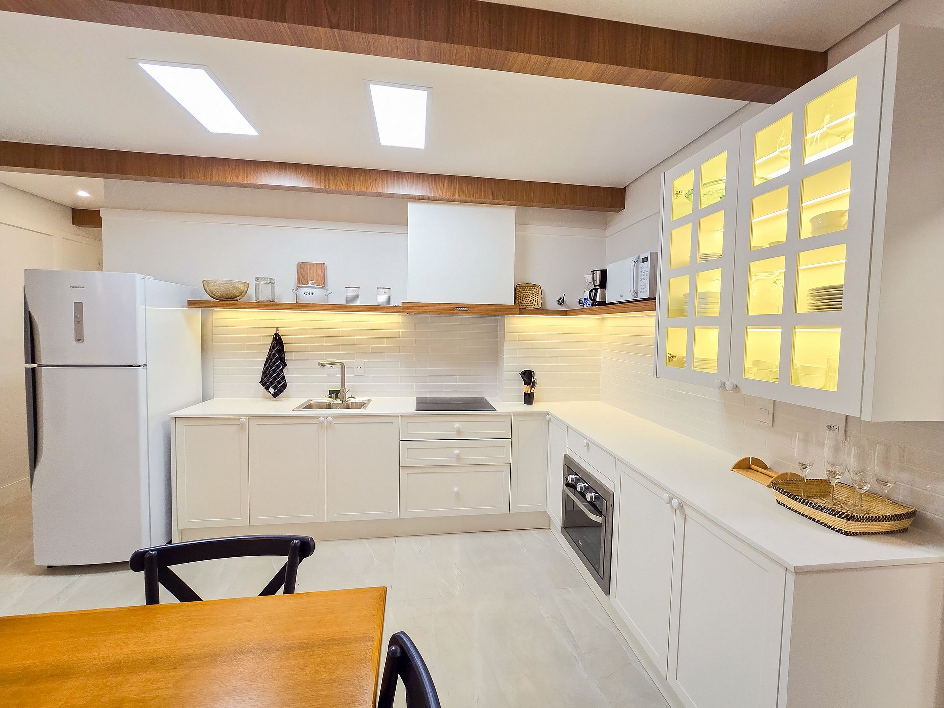 El apartamento aloja cómodamente hasta 5 huéspedes, considerando el sofá cama en la sala. Las camas Simmons y los blackouts automatizados garantizan un excelente descanso. Aire acondicionado frío/calor disponible en ambos dormitorios. El balcón es cerrado e integrado, con parrilla. La cocina está totalmente equipada, ideal para comidas diarias y asados. La lavandería cuenta con lavadora-secadora y vaporizador para ropa. El apartamento dispone de 2 plazas de garaje. El uso de las áreas comunes del edificio (piscina, gimnasio, etc.) está sujeto a las normas del condominio. Ideal para familias, parejas o estancias de workation. No se permite fumar dentro del apartamento.