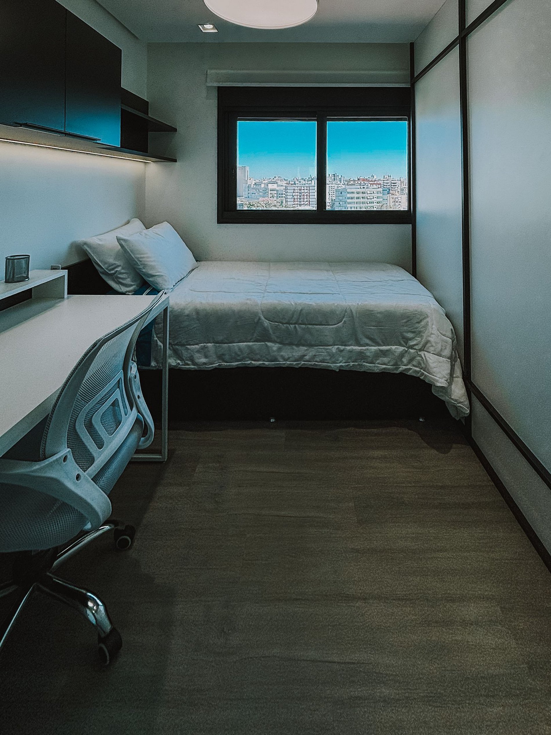 El edificio ofrece **gimnasio, piscina, lavandería, espacio de coworking y seguridad 24 horas**. Ubicado en el **barrio Rio Branco, cerca del Hospital de Clínicas, parques, restaurantes, universidades y transporte público**, garantiza **practicidad y comodidad** para tu estancia.