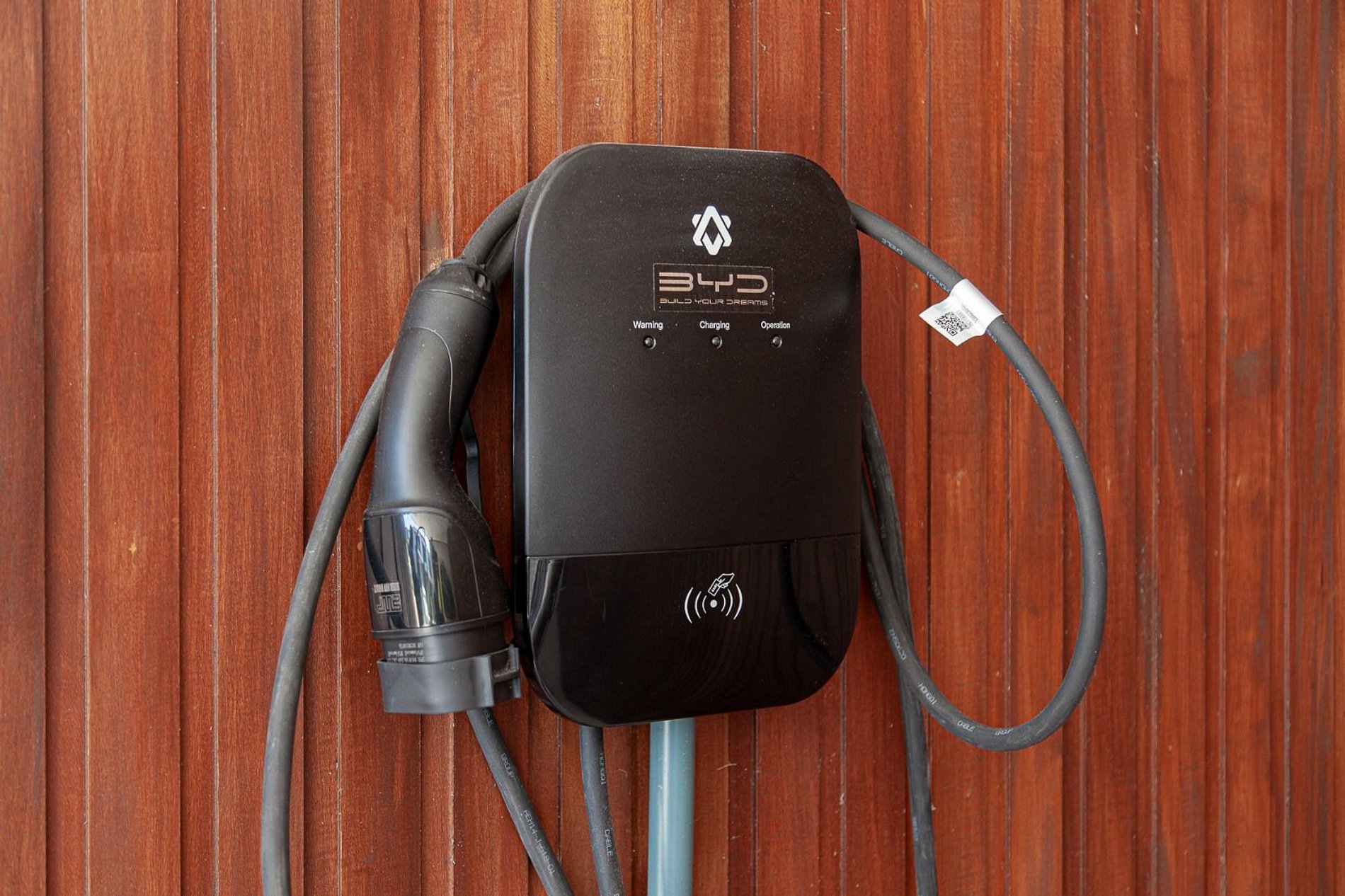 - Cargador para autos eléctricos de la marca BYD en la casa.