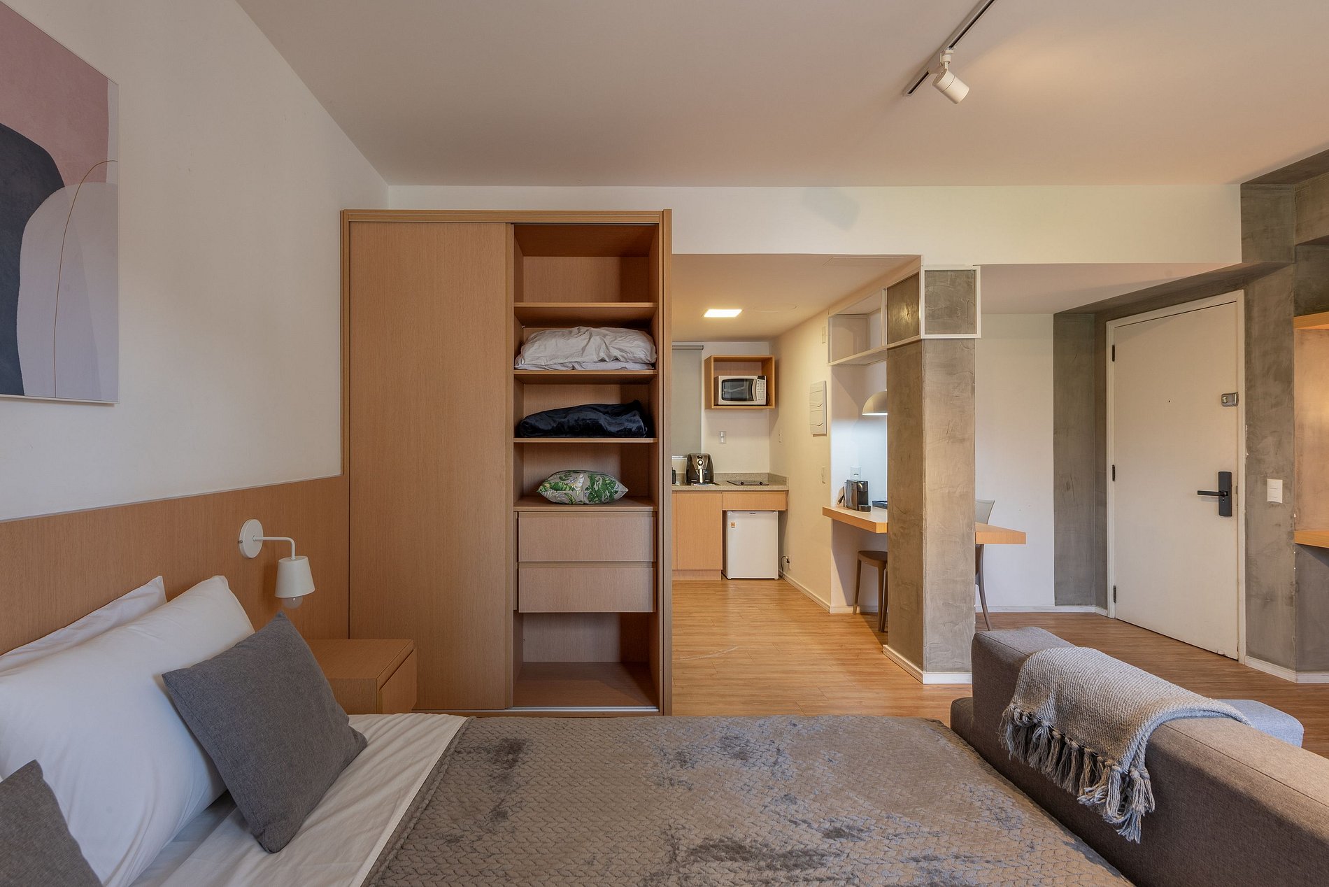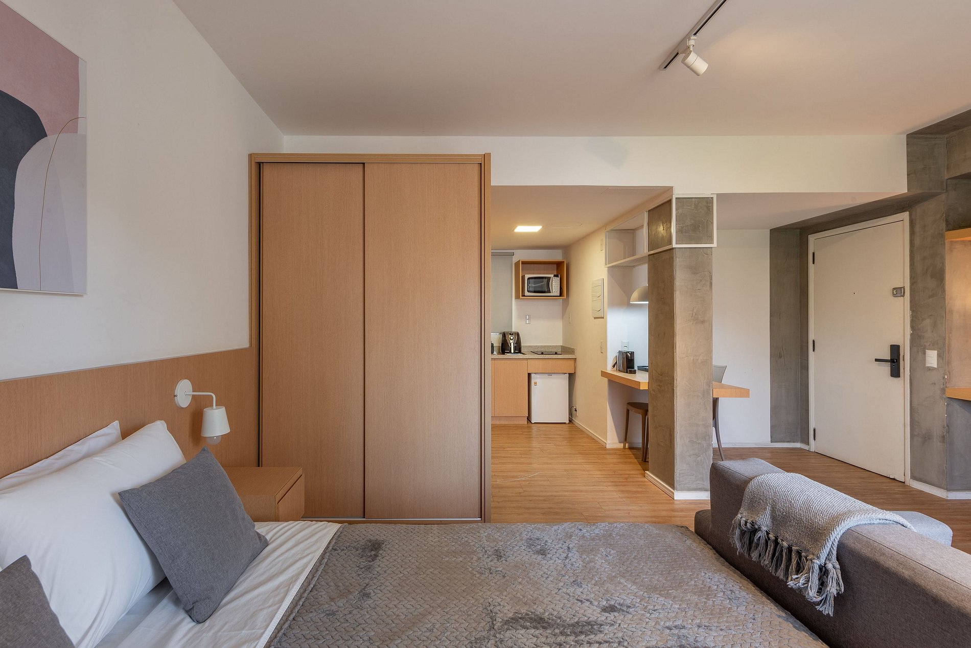 Studio Hamburgo trae el encanto europeo al corazón del Centro Histórico de Porto Alegre. Inspirado en la elegancia industrial de Hamburgo, combina madera y tonos neutros en un ambiente acogedor. Dispone de balcón privado, cocina completamente equipada, cama queen, Wi-Fi rápido y aire acondicionado frío/calor. A pocos pasos de la Orla del Guaíba, el Mercado Público y los cafés históricos, es el refugio perfecto para quienes buscan cultura, estilo y comodidad.