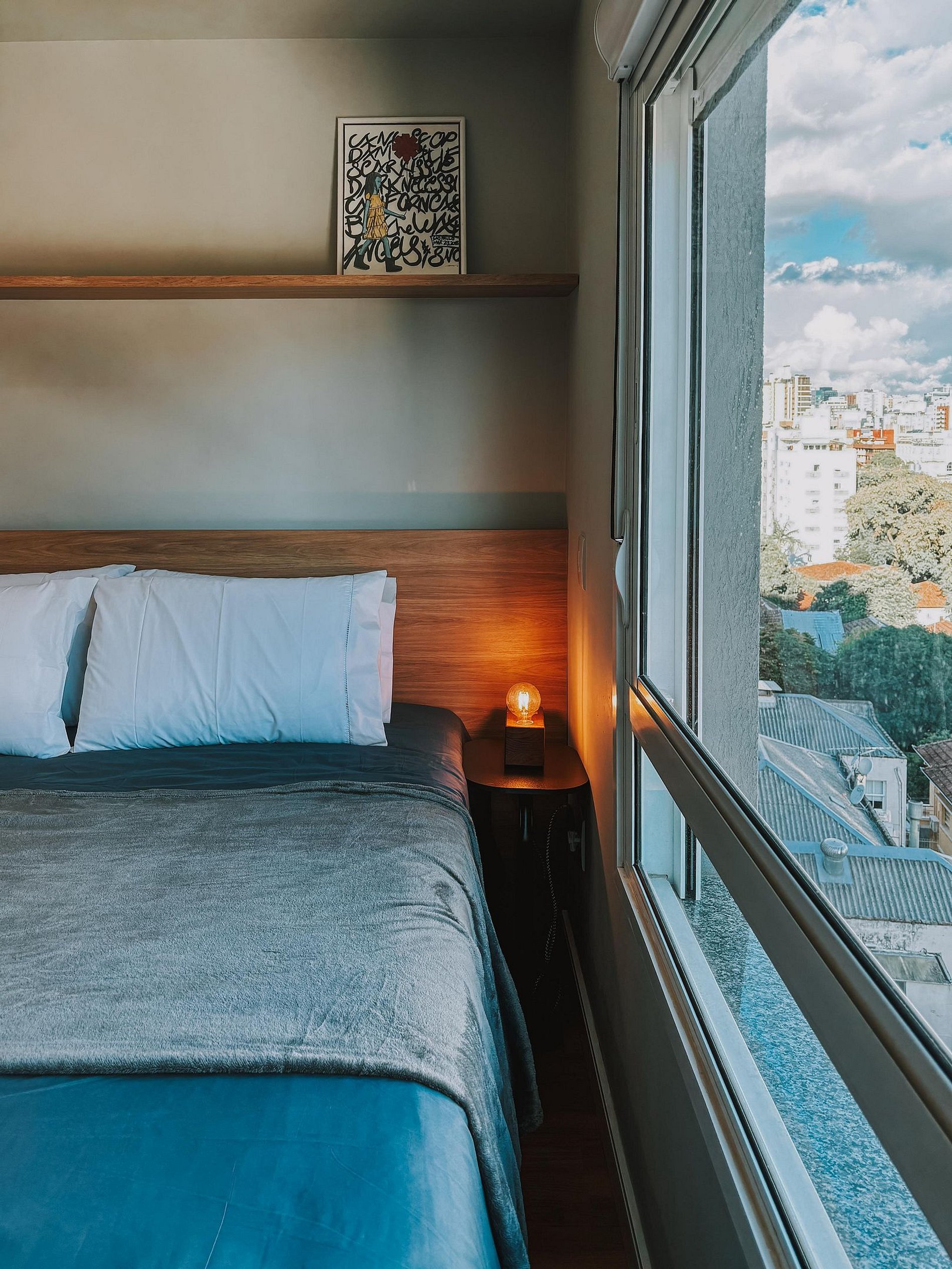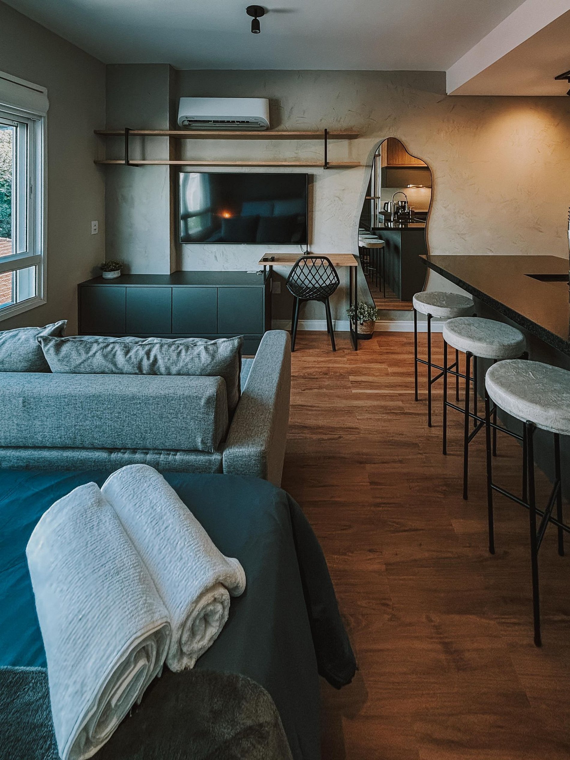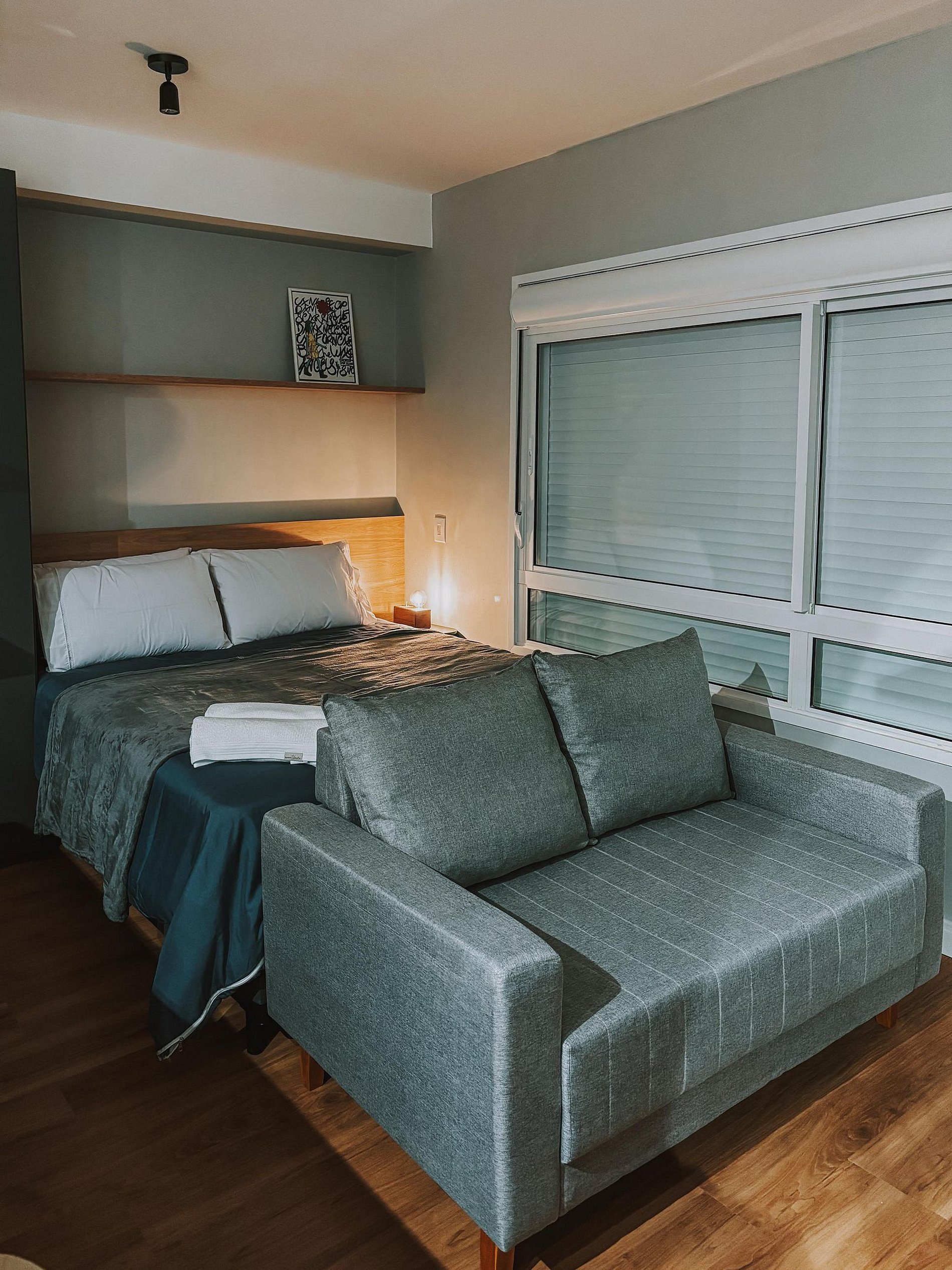 Studio moderno y acogedor en el 8º piso del edificio Quintal Moinhos, perfecto para hasta 3 huéspedes. El espacio cuenta con cama queen, colchón plegable (guardado en el armario). Además, el apartamento tiene una parrilla privada, perfecta para momentos de ocio.