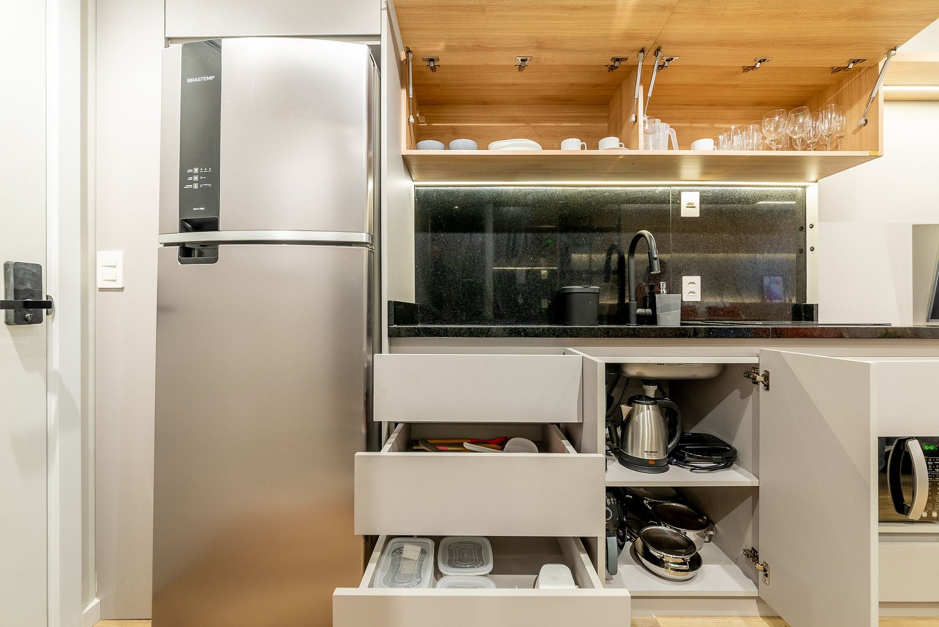 Los huéspedes podrán acceder durante su estadía al gimnasio del condominio, al coworking, a la lavandería, al bicicletario y al área de entretenimiento en la azotea. Las áreas comunes del condominio no requieren reserva y son de acceso libre para los huéspedes. Sin embargo, los espacios para fiestas, el bar retroiluminado y las parrillas en la azotea no están disponibles para los huéspedes.El edificio también cuenta con una lavandería Lavô en el segundo piso, equipada con tres lavadoras y tres secadoras. Los servicios son de pago y se realizan mediante el pago con tarjeta de crédito en un quiosco de autoservicio junto a las máquinas. El servicio de lockers en la entrada del edificio es de uso común. Al ingresar al vestíbulo, puede consultar con la recepción sobre su funcionamiento. El condominio también dispone de una máquina expendedora en el lobby para la compra de snacks. El pago se realiza a través de una aplicación.