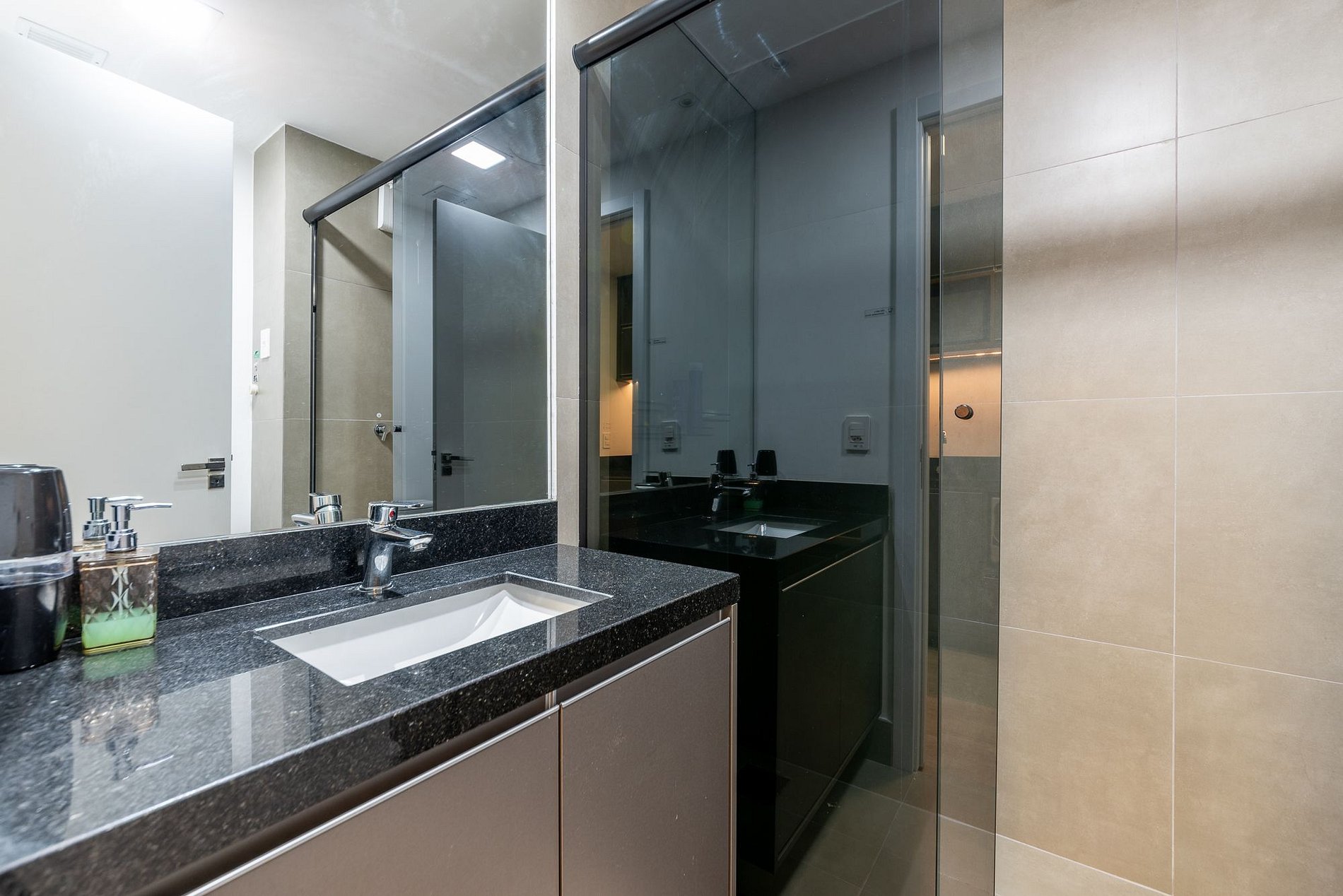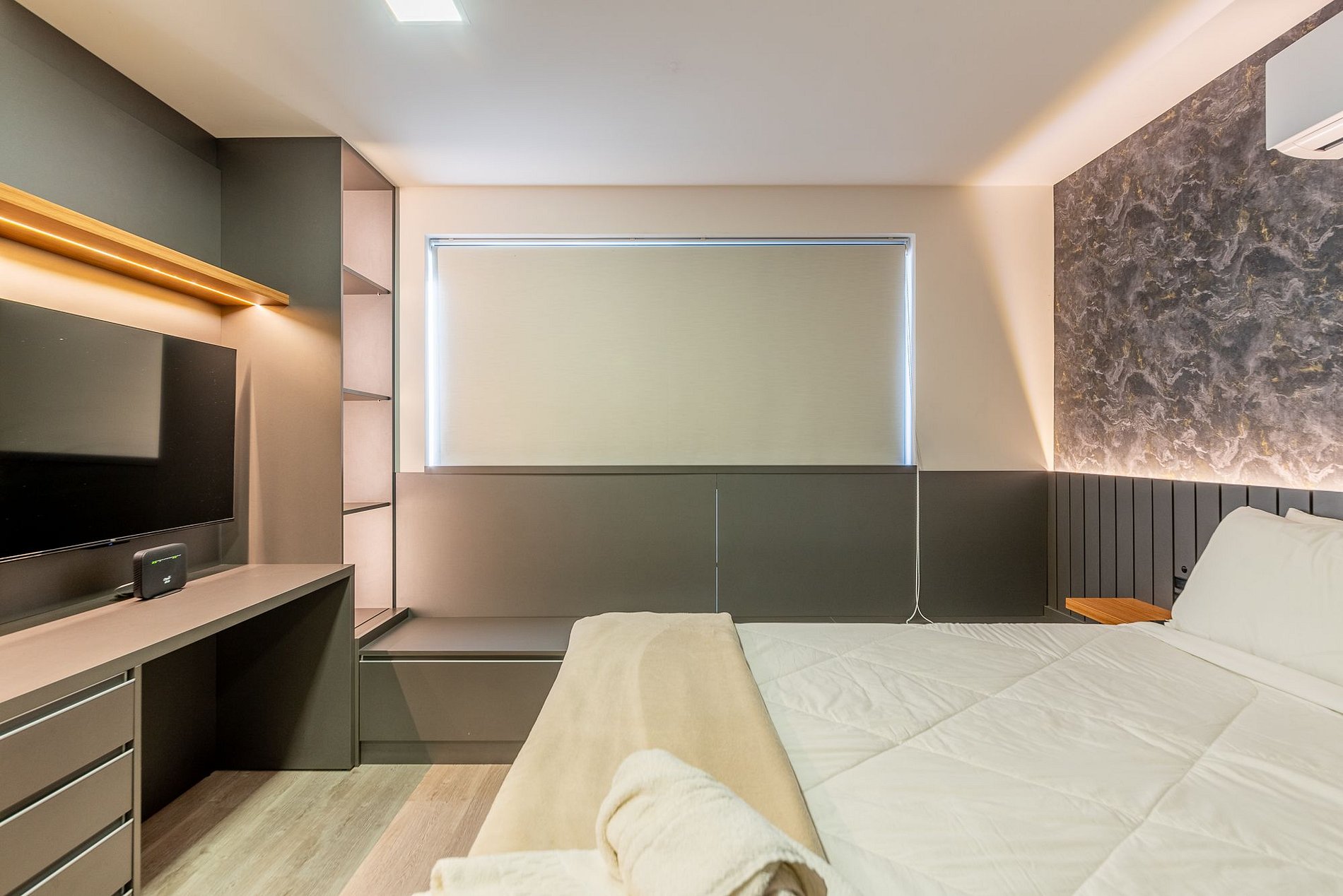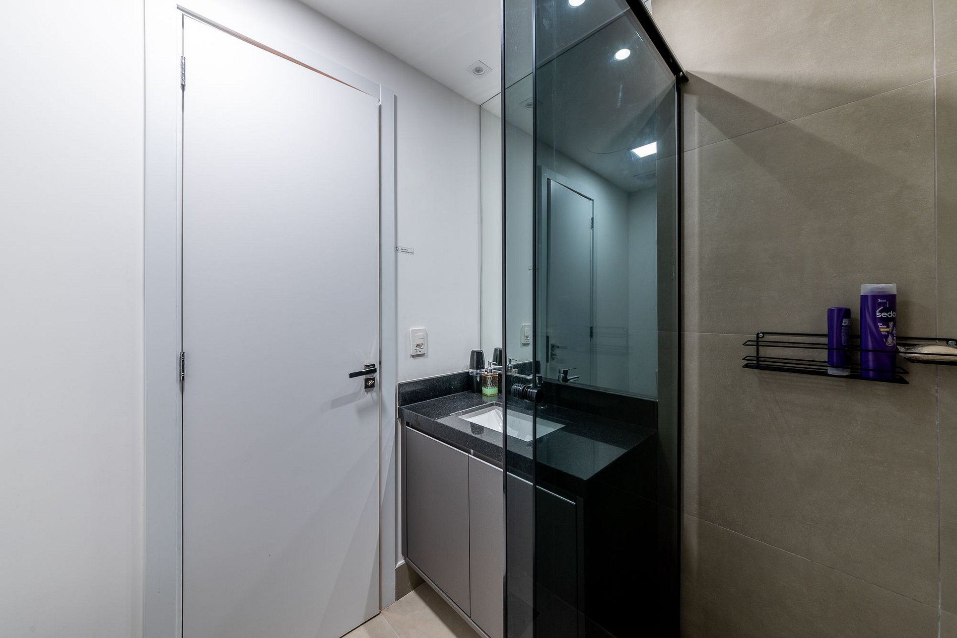 Moderno estudio en el 6º piso del edificio GO24, con una elegante decoración en negro y madera. Ideal para estancias prácticas y cómodas, con cama queen, cocina completa, Wi-Fi rápido y aire acondicionado. El edificio ofrece piscina en la azotea, gimnasio 24h, lavandería y espacio de coworking. Ubicado en la calle 24 de Outubro, en el barrio Auxiliadora, cerca de excelentes opciones gastronómicas, de compras y ocio. ¡Ven y disfruta la experiencia!