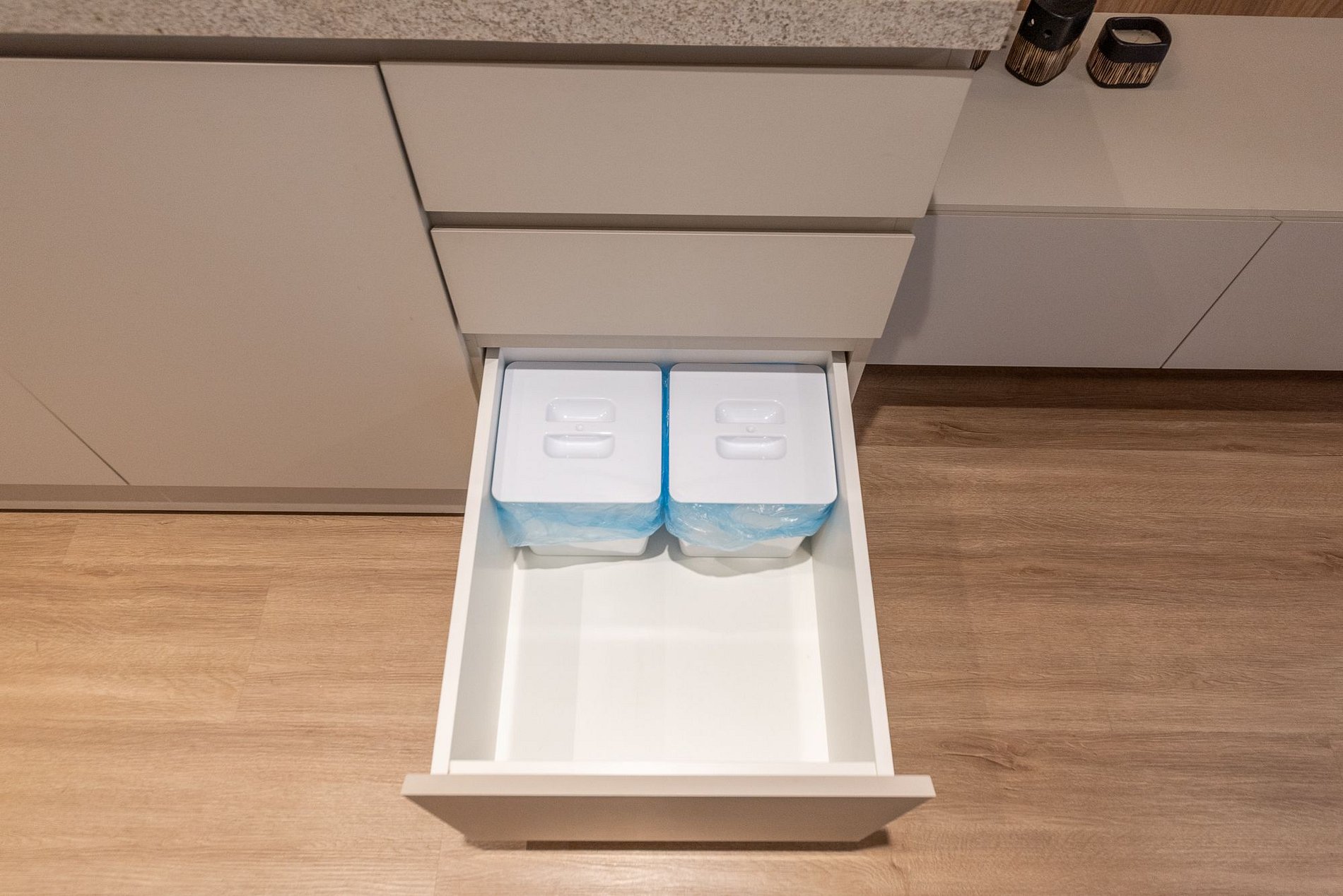 No contamos con cerraduras para los cajones ni protectores para enchufes.