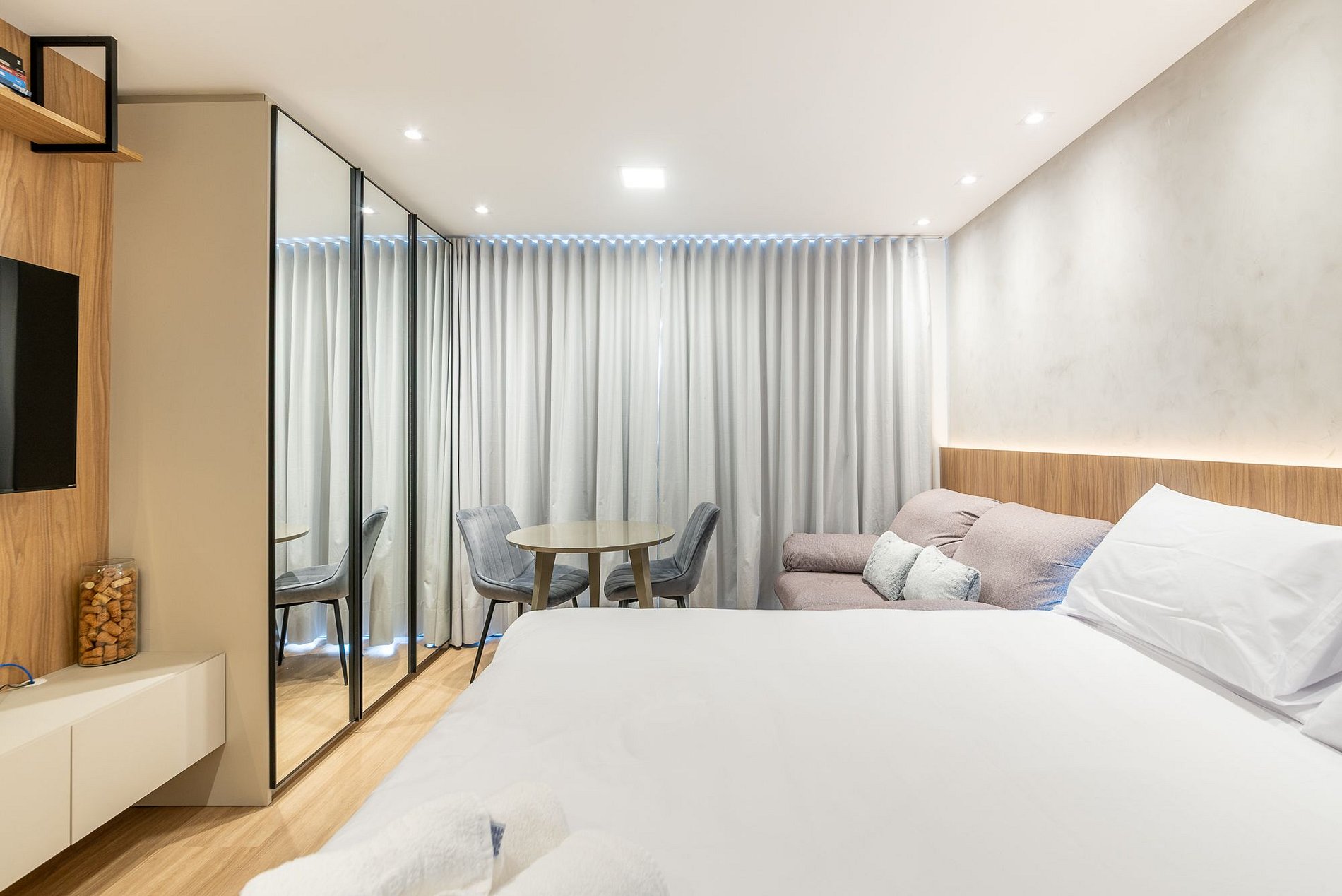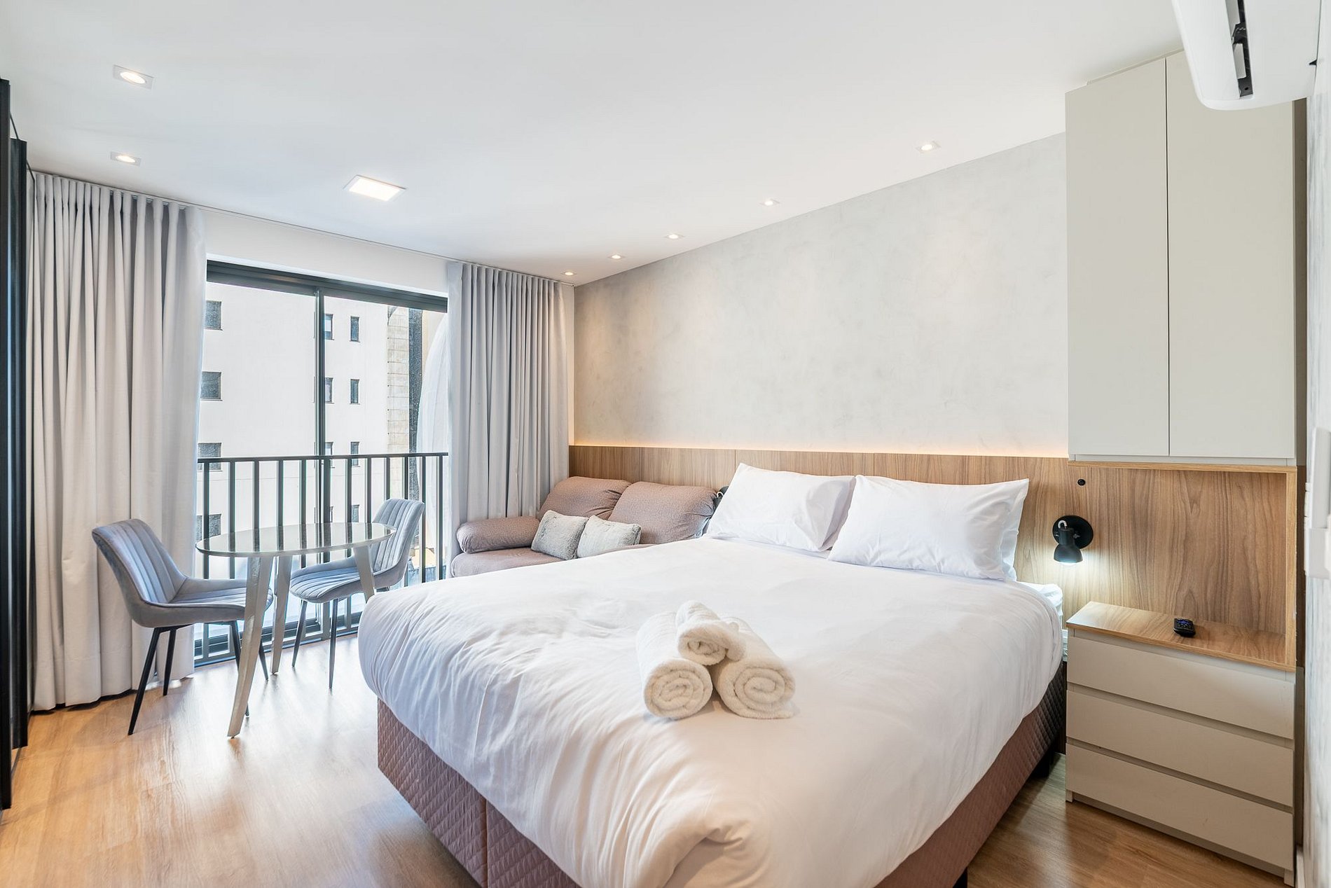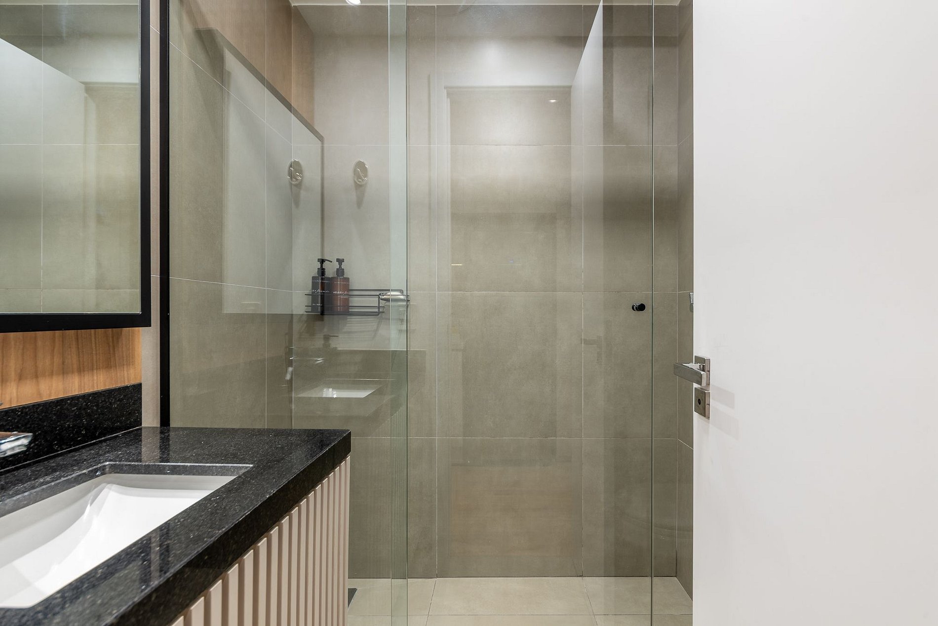 Moderno estudio en el 9º piso del edificio GO24, con una elegante decoración en negro y madera. Ideal para estancias prácticas y cómodas, con cama queen, cocina completa, Wi-Fi rápido y aire acondicionado. El edificio ofrece piscina en la azotea, gimnasio 24h, lavandería y espacio de coworking. Ubicado en la calle 24 de Outubro, en el barrio Auxiliadora, cerca de excelentes opciones gastronómicas, de compras y ocio. ¡Ven y disfruta la experiencia!