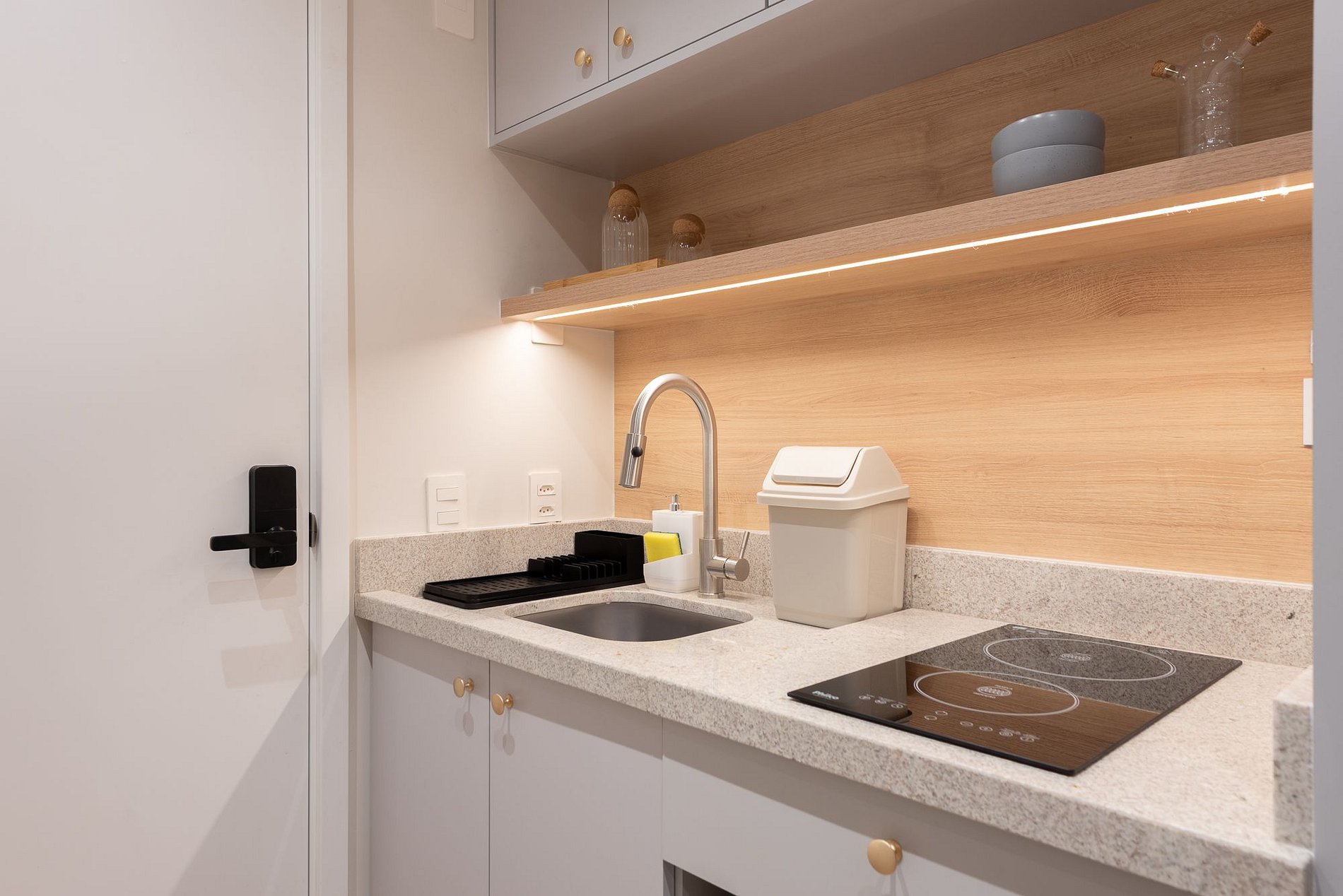Encantador Studio Belle en el 4.º piso del moderno condominio Skyline, a pocos pasos del Parcão. Ambientes luminosos, decorados con buen gusto, que ofrecen comodidad y practicidad. Cuenta con cama doble, aire acondicionado frío/calor, cocina equipada, Wi-Fi y Smart TV. Edificio con portería 24 horas, cochera rotativa y ubicación privilegiada en el corazón de Moinhos de Vento. ¡Ideal para descansar o trabajar!