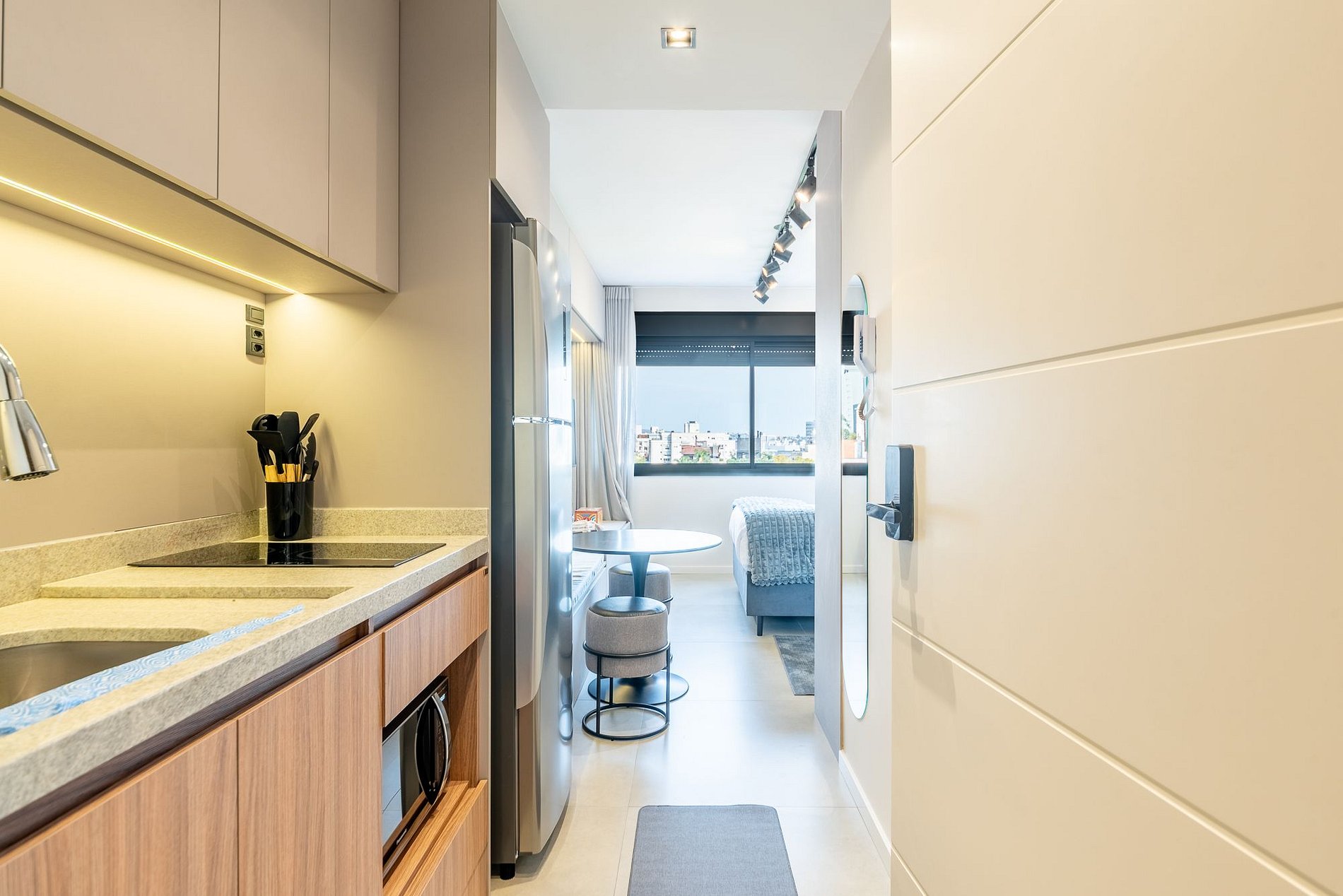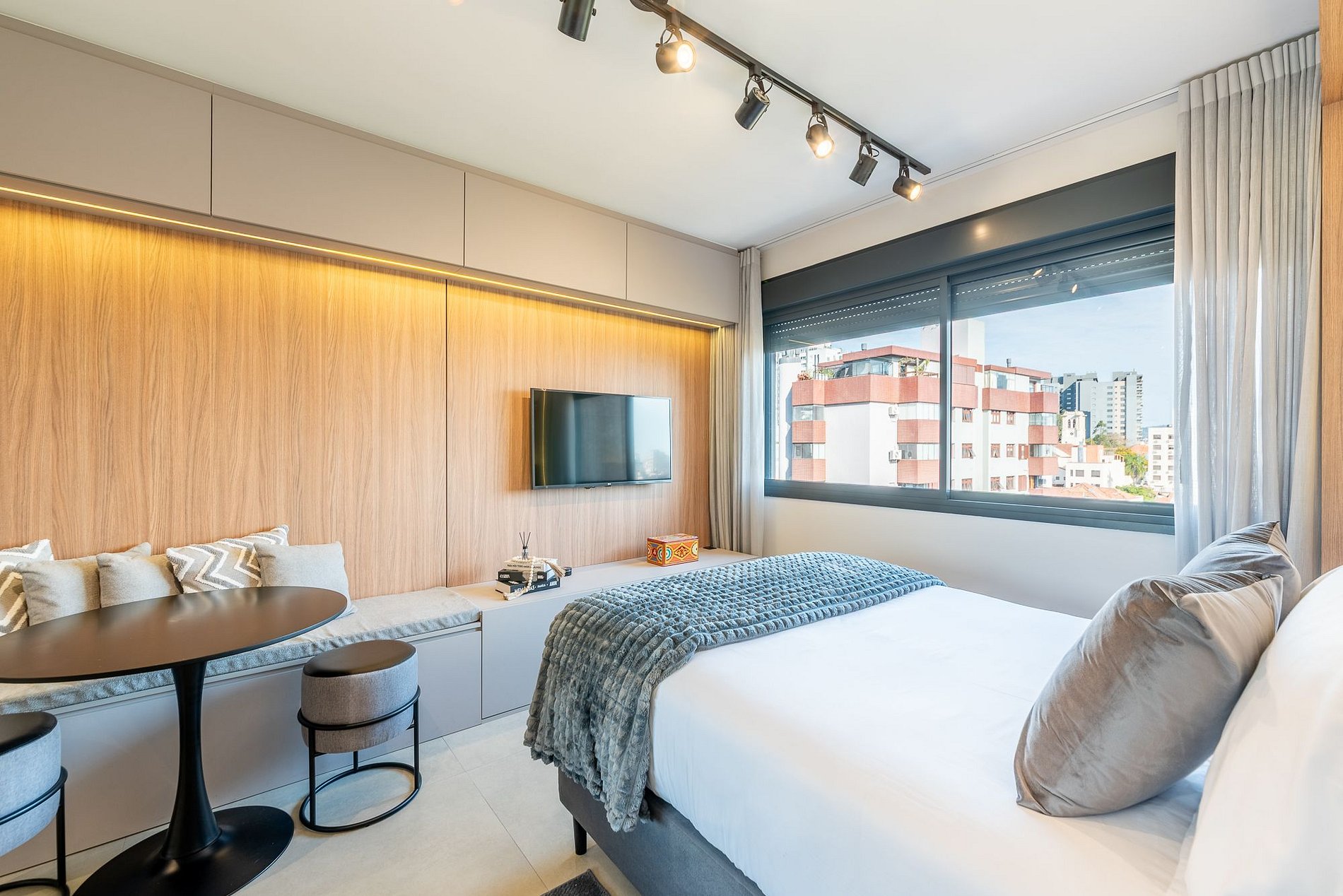 El Studio Di Luce es un refugio urbano lleno de encanto en el Skyline Parque Moinhos. En el 7º piso, la luz natural entra por las elegantes cortinas y revela un espacio moderno y acogedor. Cama doble, cocina equipada, aire acondicionado frío/calor y Smart TV garantizan comodidad. Con portería 24h, self check-in digital y estacionamiento rotativo, estarás cerca de los mejores cafés, restaurantes y de la vibrante vida de Porto Alegre.