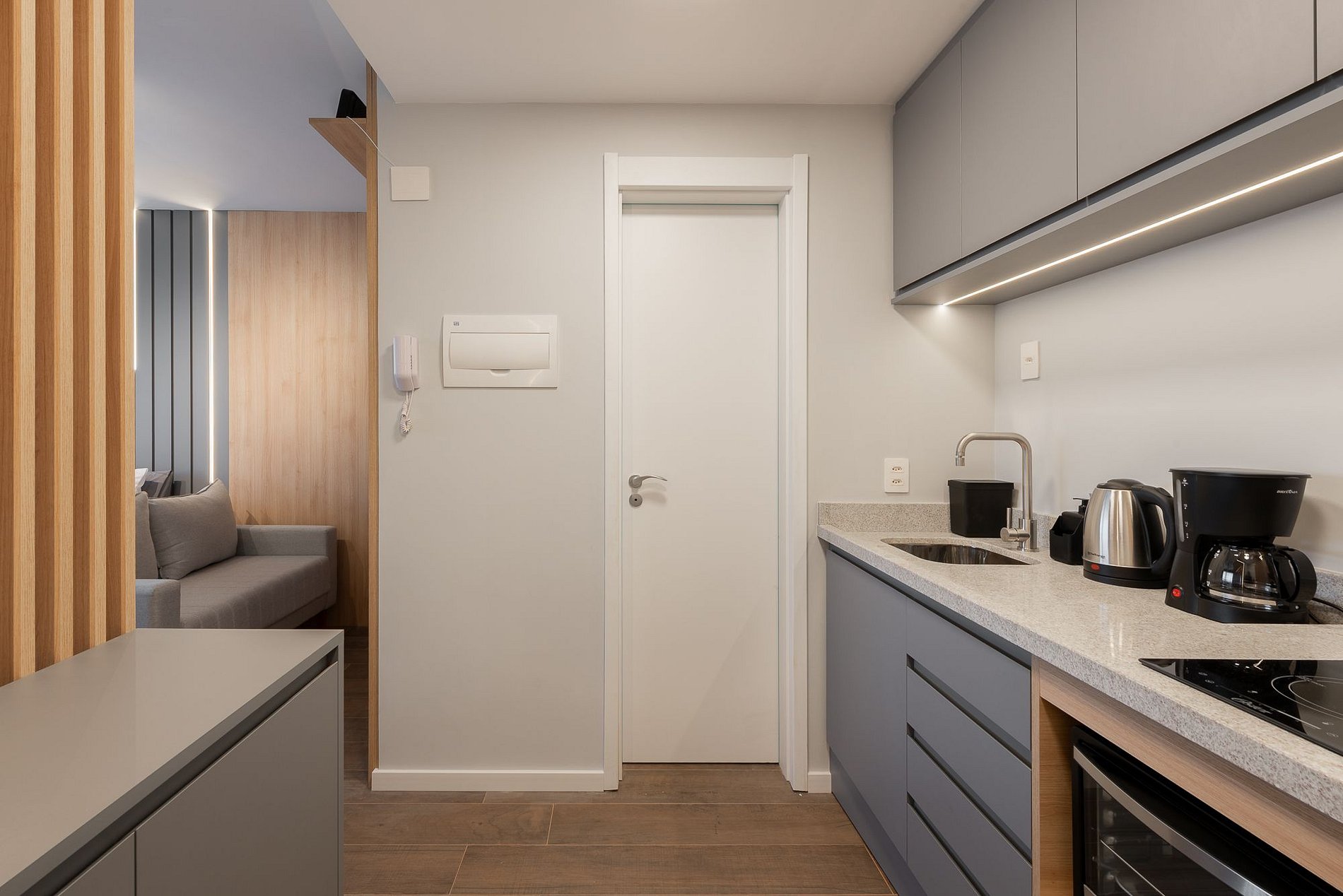 El apartamento Berlim, ubicado en el moderno condominio Skyline en Porto Alegre, combina diseño contemporáneo y funcionalidad. Con un diseño integrado, ofrece cocina totalmente equipada, espacio de trabajo, cama doble y un sofá acogedor. La decoración mezcla tonos de madera y gris, creando un ambiente sofisticado y cálido. Ideal para quienes buscan confort, practicidad y fácil acceso a las principales zonas de la ciudad.