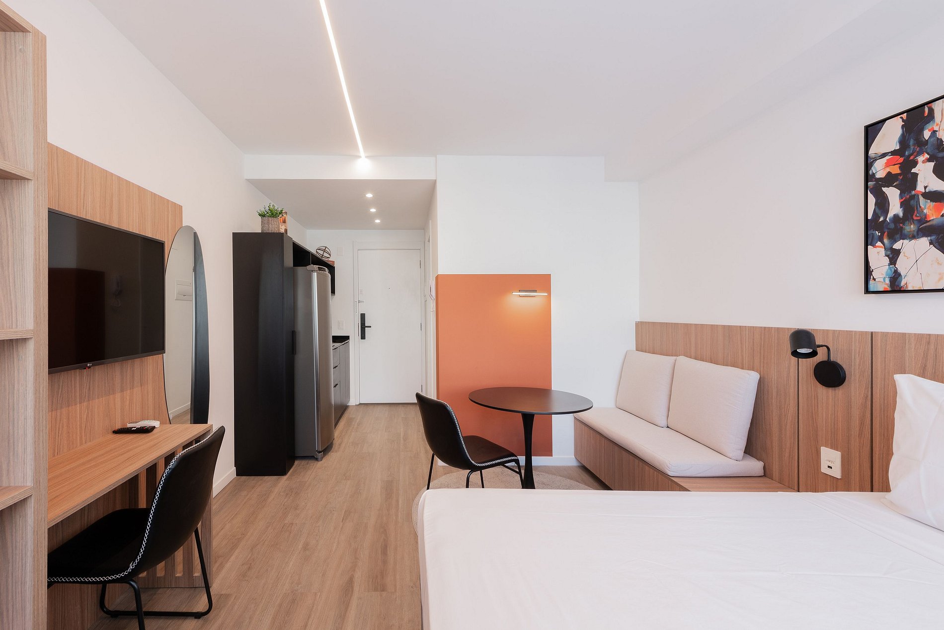 El Loft Holanda, ubicado en el elegante barrio Bela Vista de Porto Alegre, combina comodidad y estilo en un ambiente moderno dentro del condominio Skyline. Dispone de cocina totalmente equipada, Wi-Fi de alta velocidad, cama queen y aire acondicionado frío/calor. Ideal para ocio o trabajo, el loft ofrece una vista privilegiada de la ciudad y fácil acceso a cafés, restaurantes y al Parque Moinhos de Vento, en una de las zonas más nobles y seguras de la ciudad.