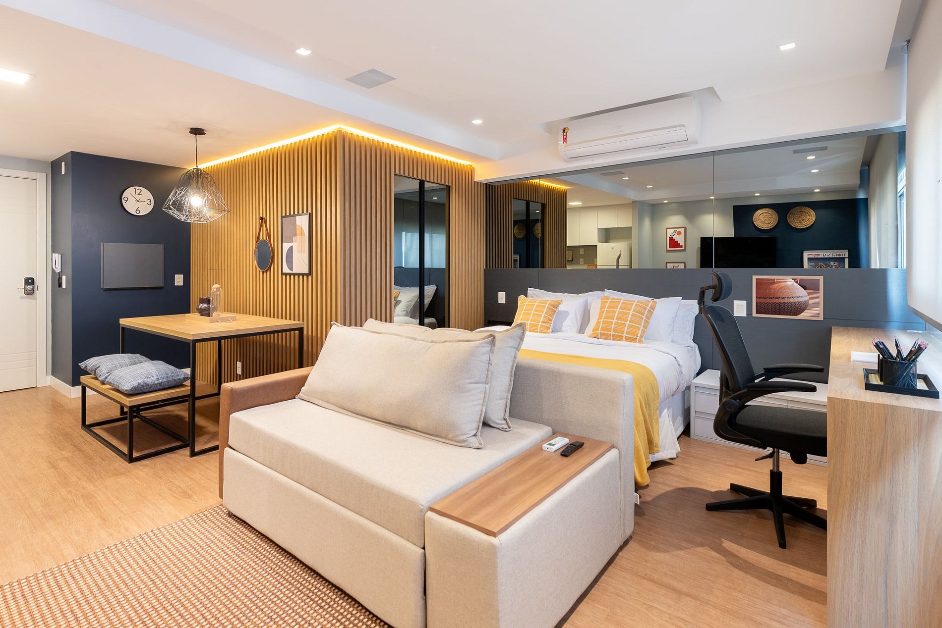 El loft Viajante, en el condominio HOM Nilo, se encuentra en una de las zonas más exclusivas de Porto Alegre. Completamente renovado, cuenta con una cama queen, aire acondicionado, cocina completa, lavadora, televisor, armario y espacio de trabajo con vistas. También cuenta con estacionamiento gratuito. A cinco minutos del Centro Comercial Iguatemi y cerca del Parque Germânia, es ideal para quienes buscan comodidad, practicidad y una ubicación privilegiada.