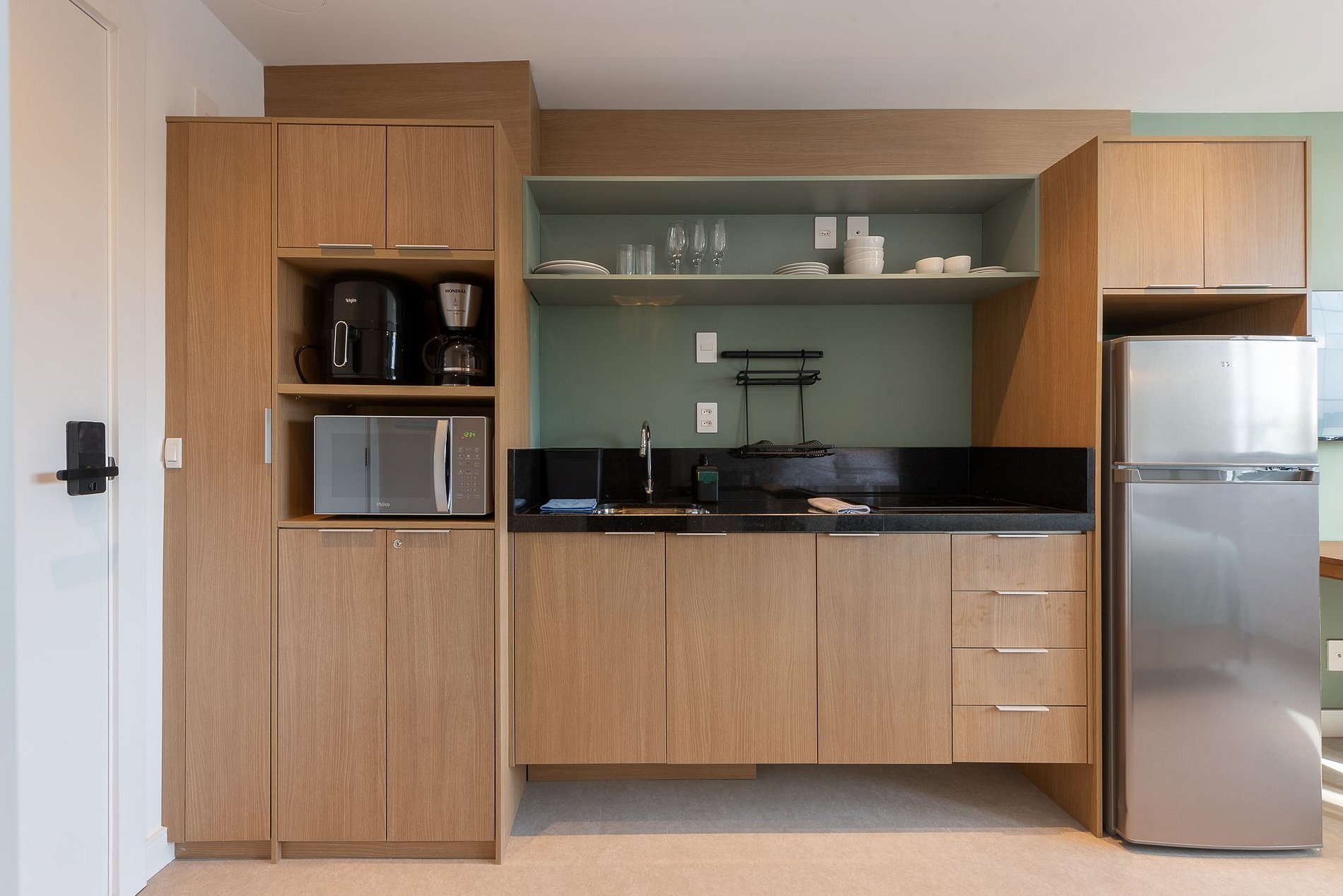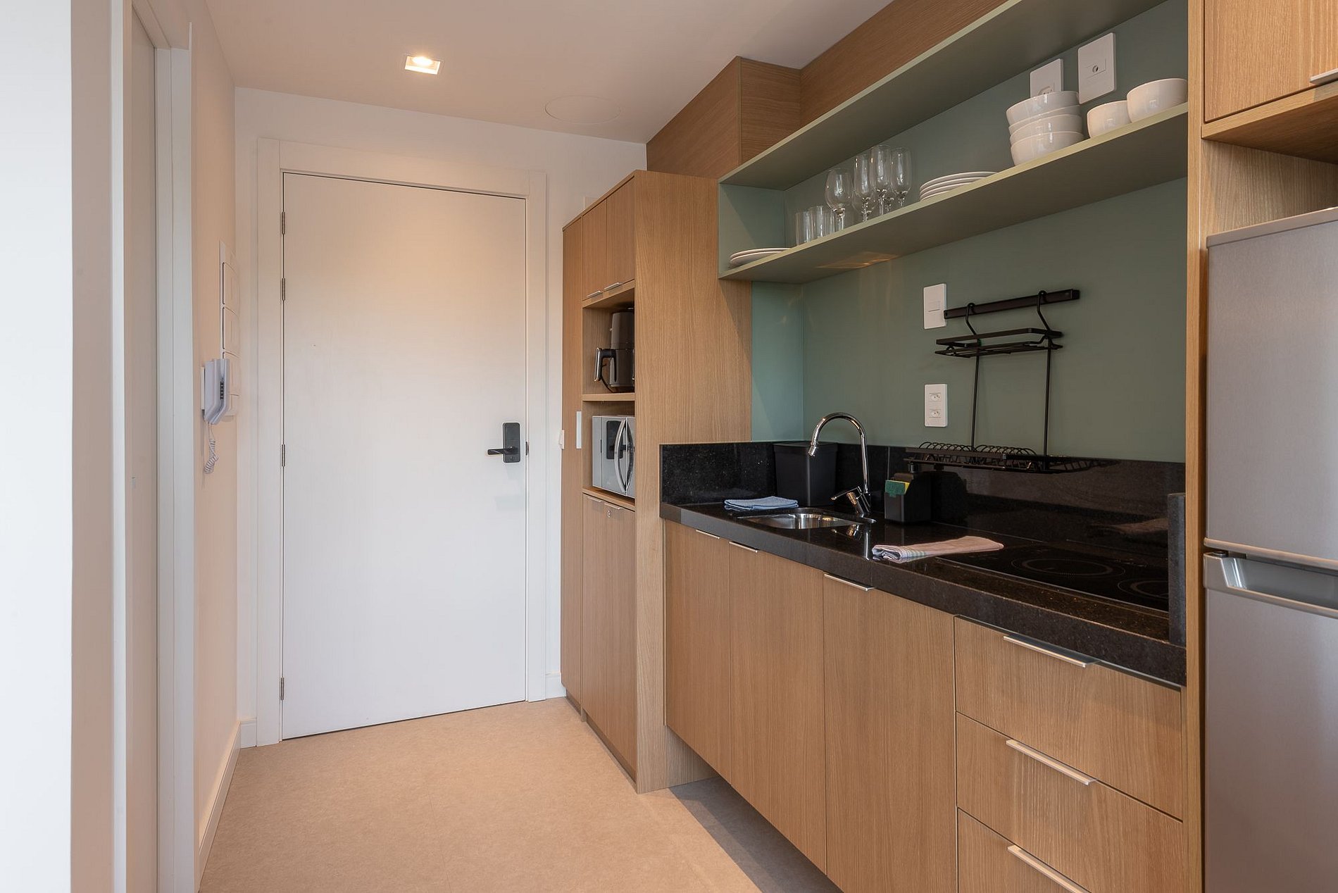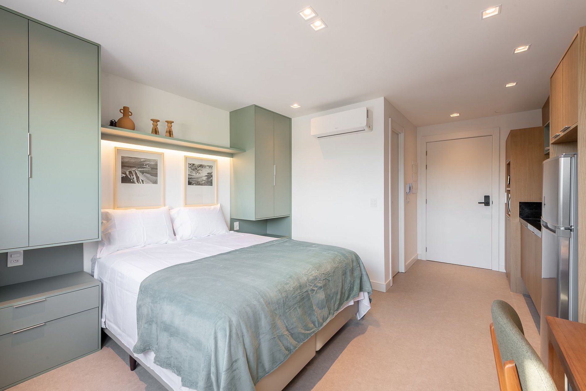 O Studio Oliva une conforto, praticidade e design em tons verdes suaves no coração do bairro Boa Vista. Localizado no moderno GO Carlos Gomes, oferece cama de casal, cozinha completa, mesa para refeições ou home office e uma linda vista da cidade. Com acesso à piscina, academia, lavanderia e rooftop, é o refúgio ideal para quem busca bem-estar e conveniência em Porto Alegre.