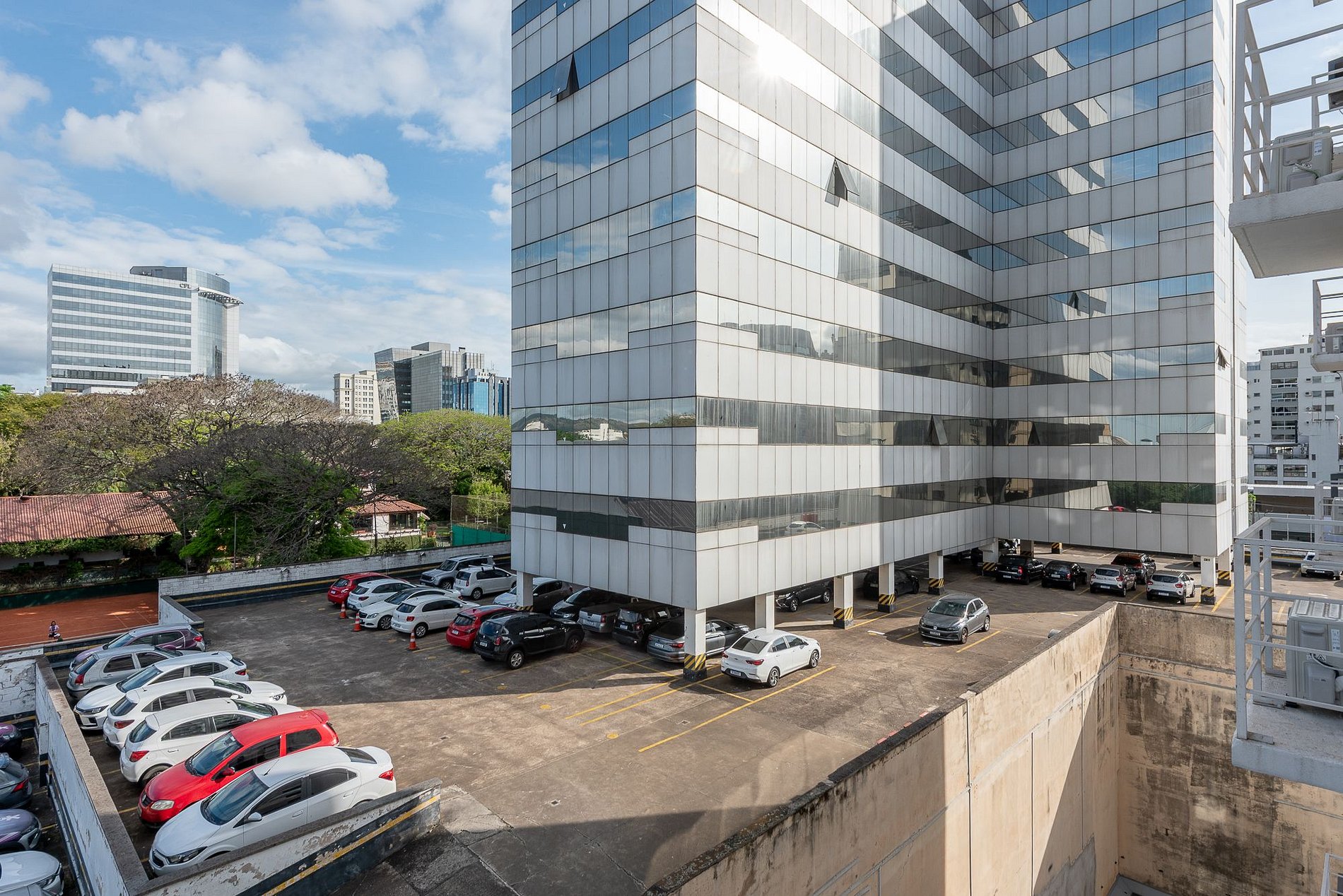 O condomínio conta com estacionamento rotativo pago, com vagas cobertas e descobertas.