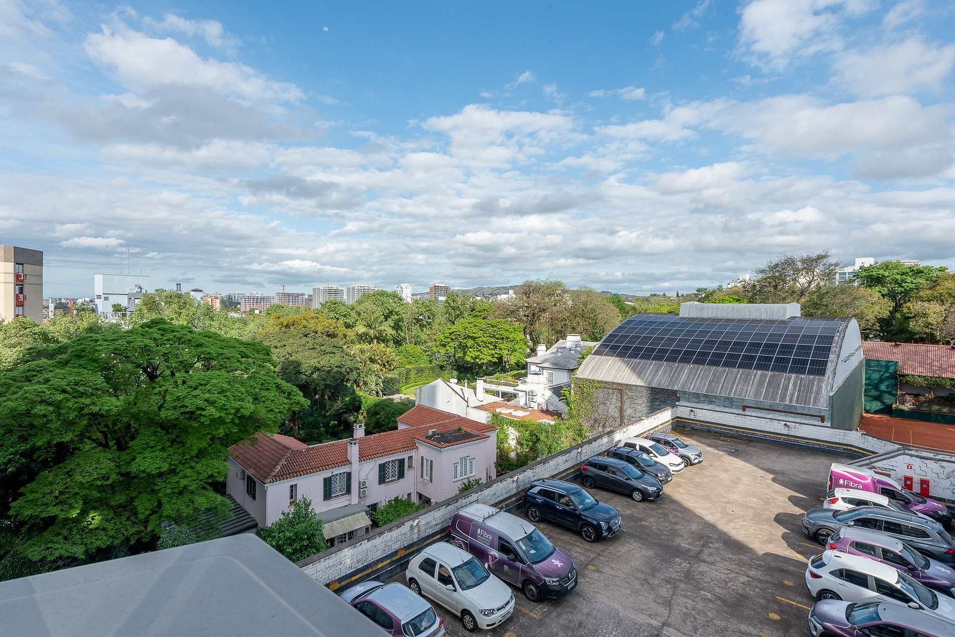 O condomínio conta com estacionamento rotativo pago, com vagas cobertas e descobertas.