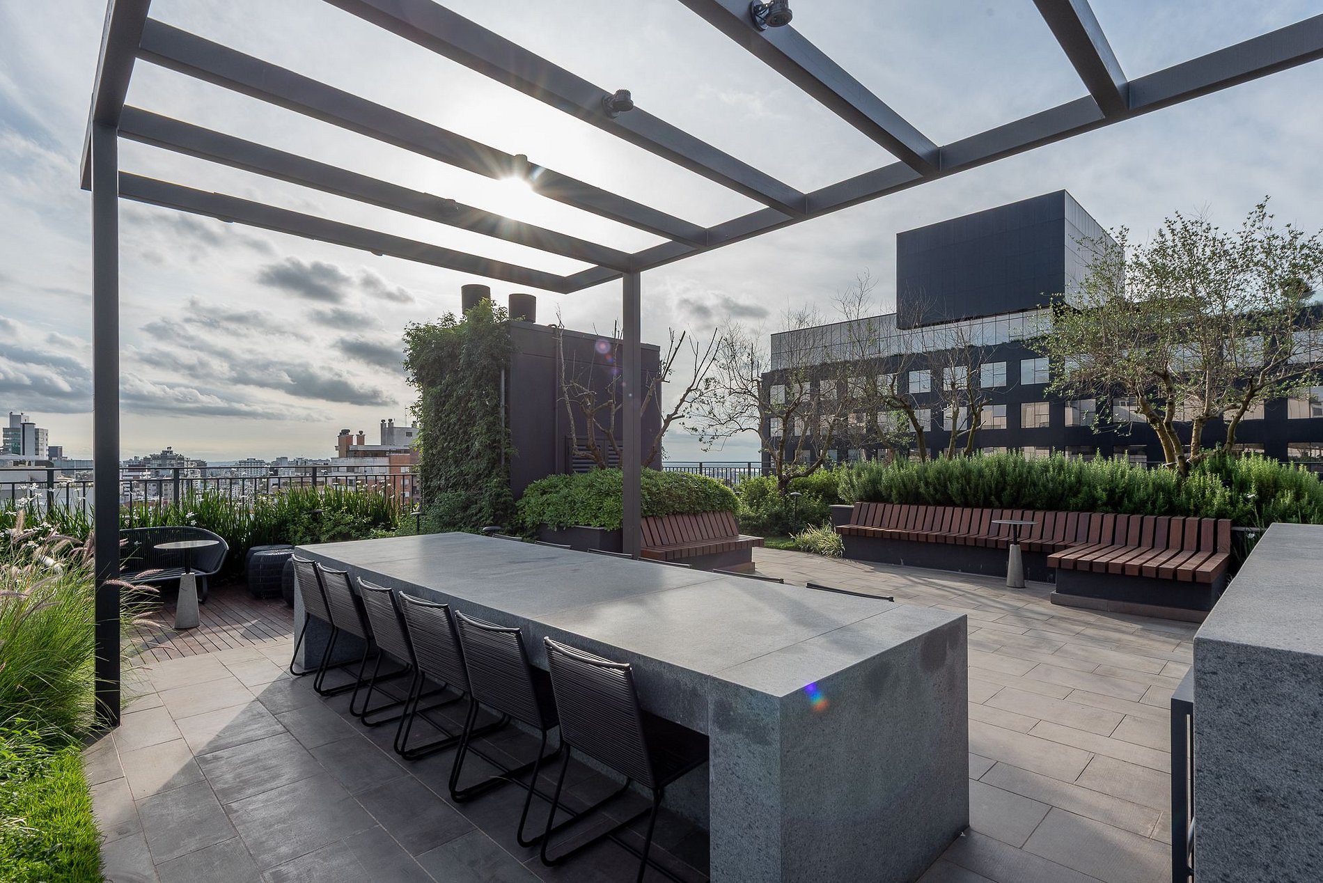- Área de entretenimento no rooftop, que inclui uma piscina