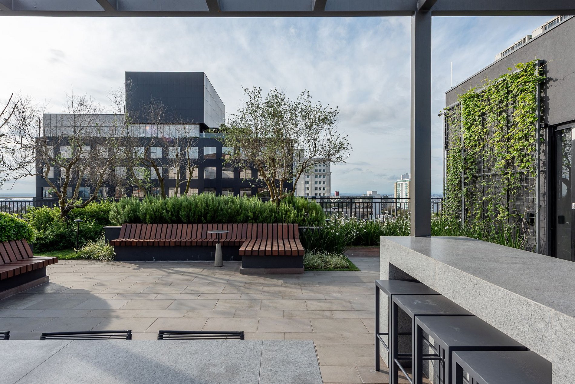 - Área de entretenimento no rooftop, que inclui uma piscina