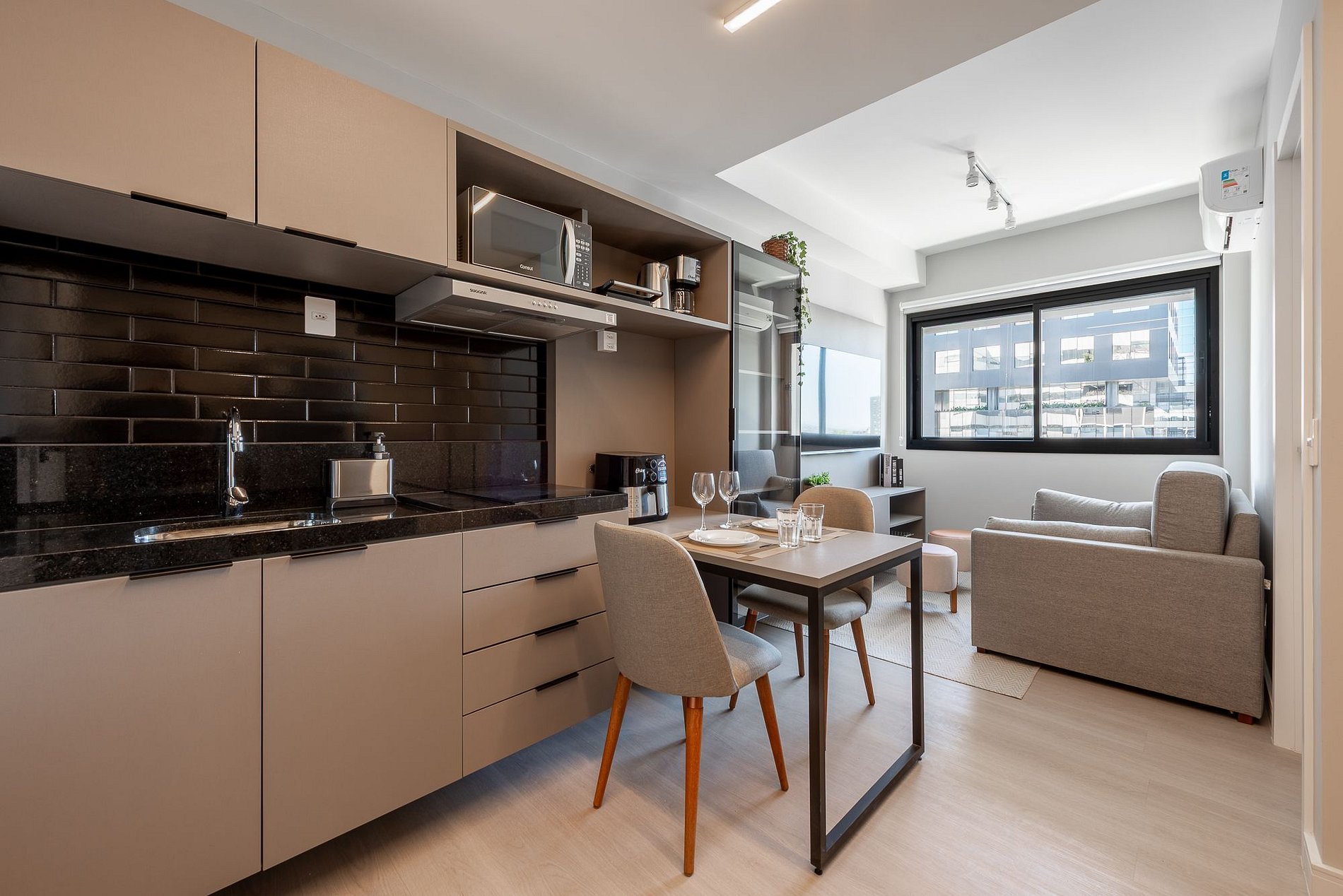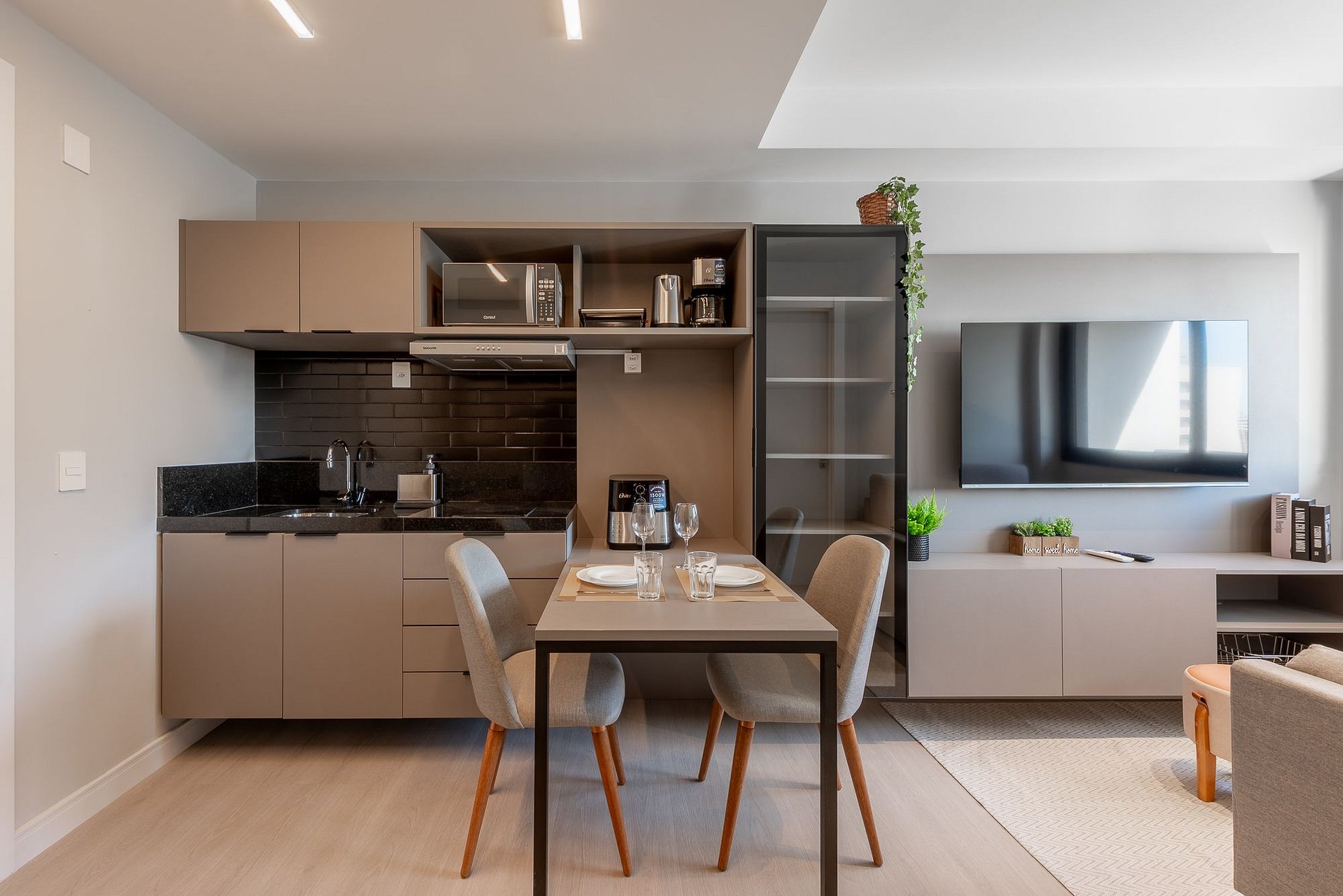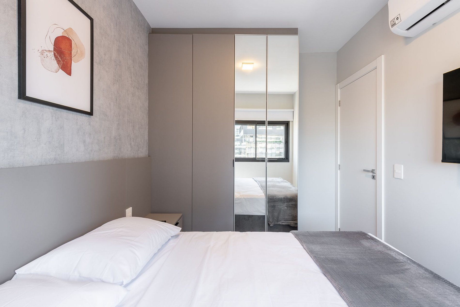 O Apartamento Ágata, conta com um dormitório com TV, une conforto, praticidade e design em tons verdes suaves no coração do bairro Boa Vista. Localizado no moderno GO Carlos Gomes, oferece cama de casal, cozinha completa, mesa para refeições ou home office e uma linda vista da cidade. Com acesso à piscina, academia, lavanderia e rooftop, é o refúgio ideal para quem busca bem-estar e conveniência em Porto Alegre.
