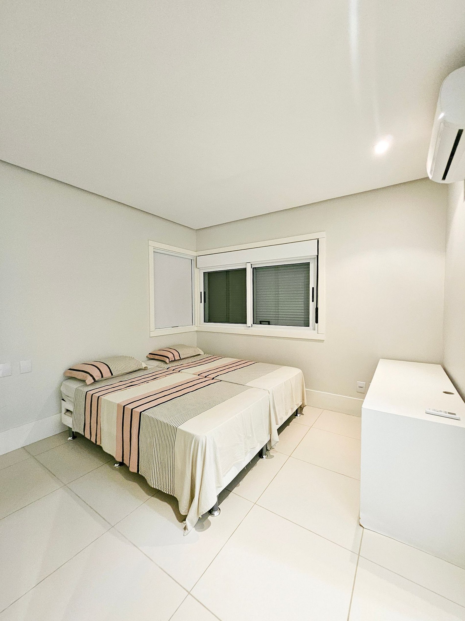 Suíte 2 (térrea): duas camas de solteiro, sendo uma delas bicama. Suíte com ar condicionado e armário para roupas.
