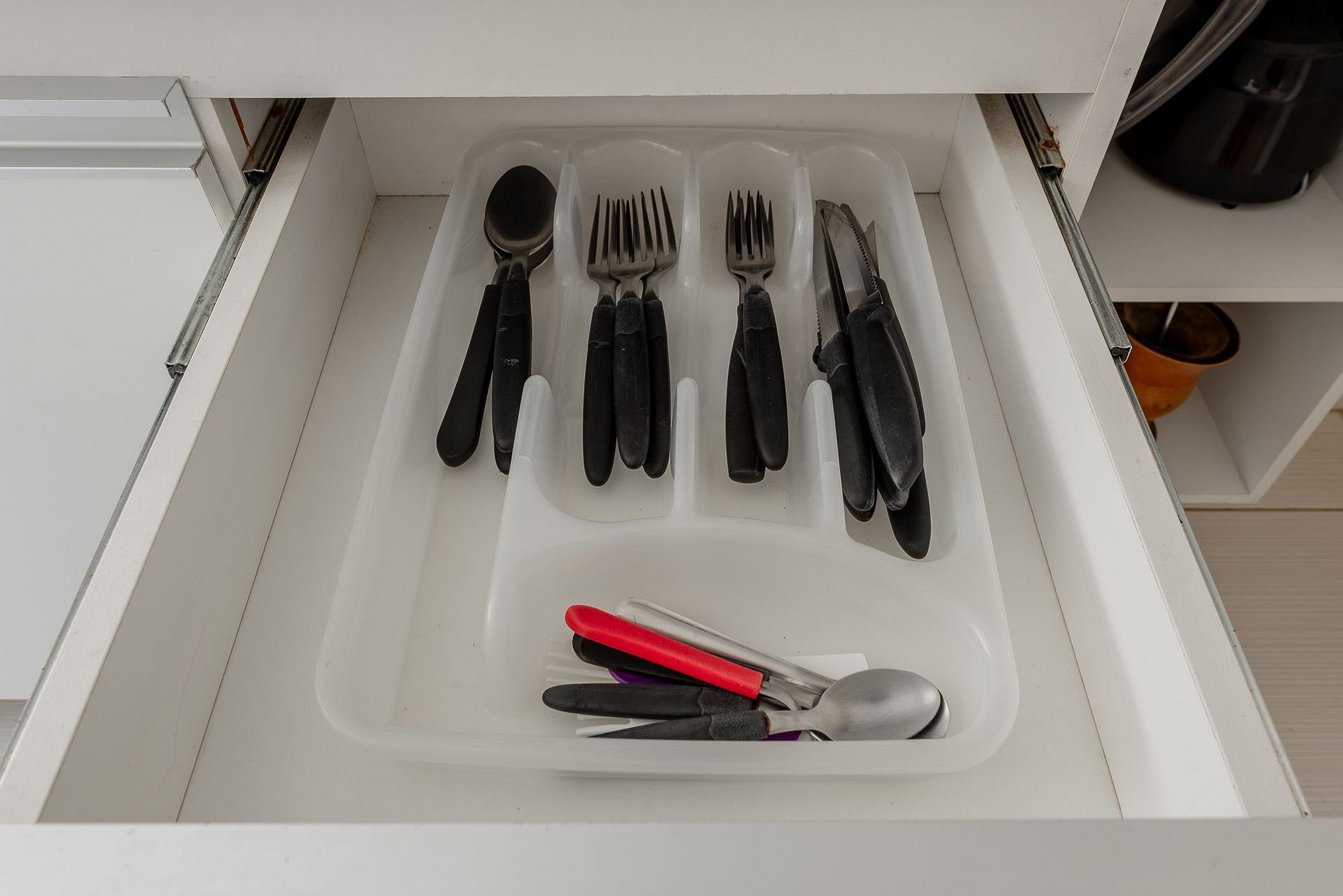 - Cozinha equipada com panelas, copos, taças, louças, talheres e acessórios para cozinhar