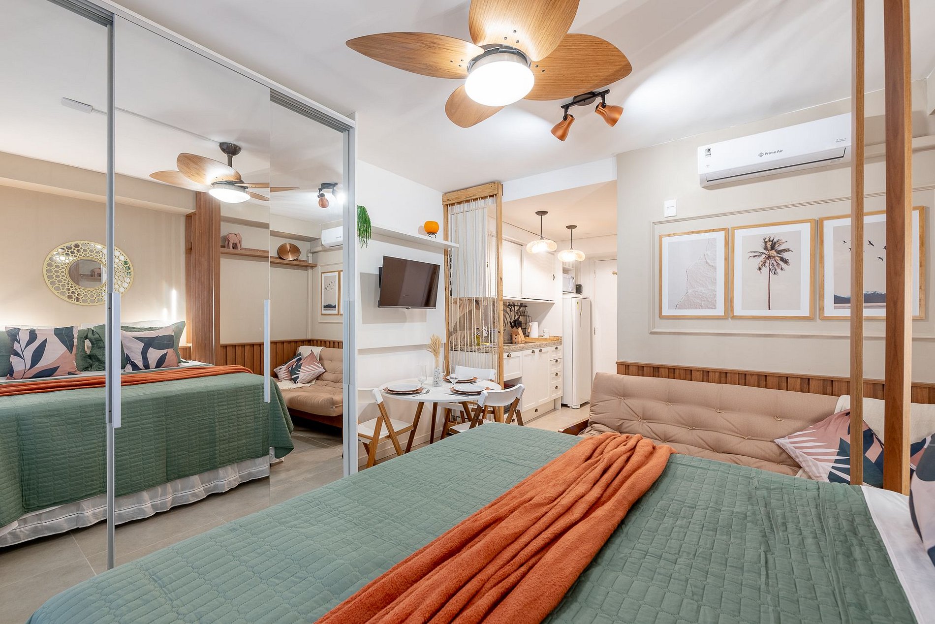 O Studio Palms é um apartamento muito bem decorado e completo, localizado próximo à PUC. Oferece uma vaga de estacionamento descoberta e rotativa, garantindo praticidade durante sua estadia. Com um ambiente moderno e acolhedor, o Studio está totalmente equipado para proporcionar conforto e conveniência, sendo a escolha ideal para quem busca uma estadia agradável e funcional.