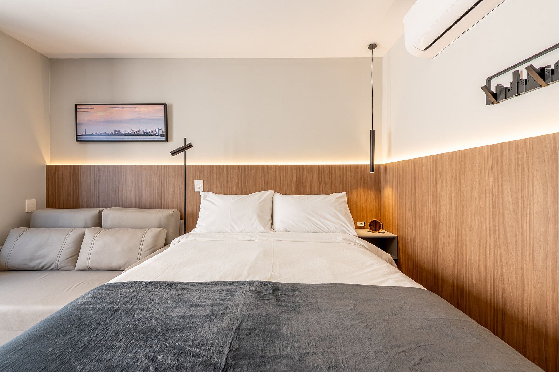 Importante: O apartamento é preparado para receber duas pessoas em cama de casal. Caso os hóspedes prefiram dormir separadamente, será necessário solicitar enxoval extra para o sofá-cama (ou cama auxiliar). Esse serviço pode ter custo adicional e precisa ser combinado antes da reserva.