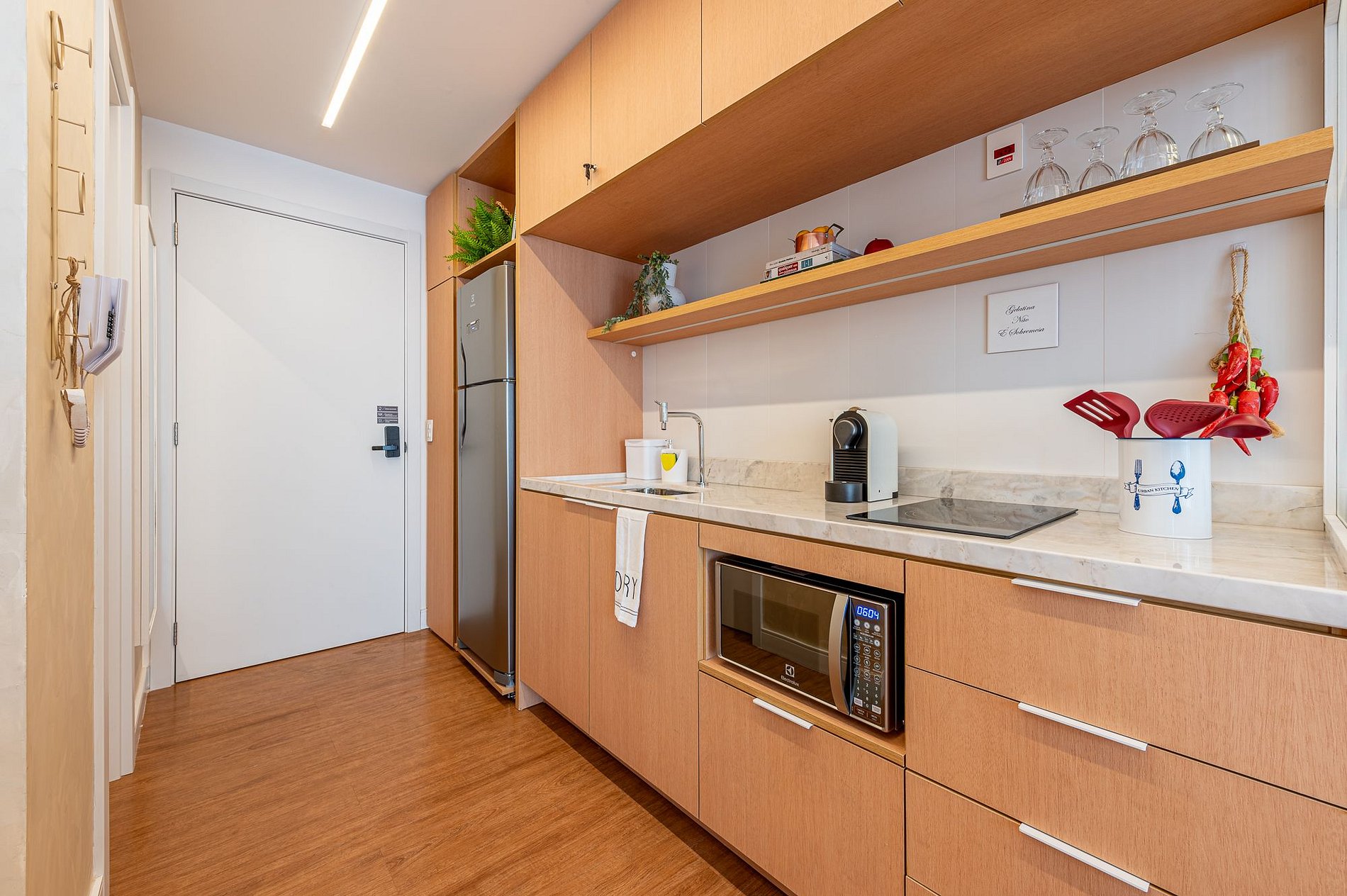 • Conveniência: No saguão, você encontrará uma máquina de snacks e bebidas (vending machine) e lockers de uso comum (consulte a portaria para mais detalhes).