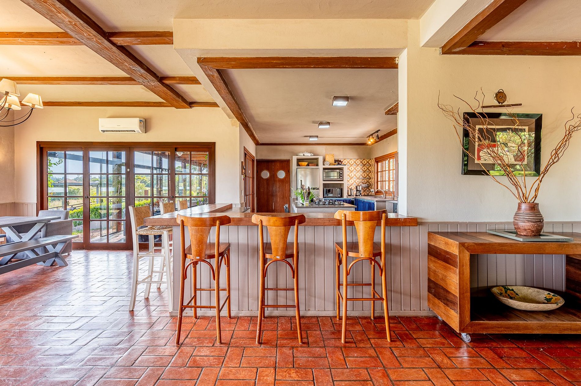 Além da experiência de estar numa casa de campo cercada da natureza e estilo, em seus mais de 300 m2 ela conta com:
