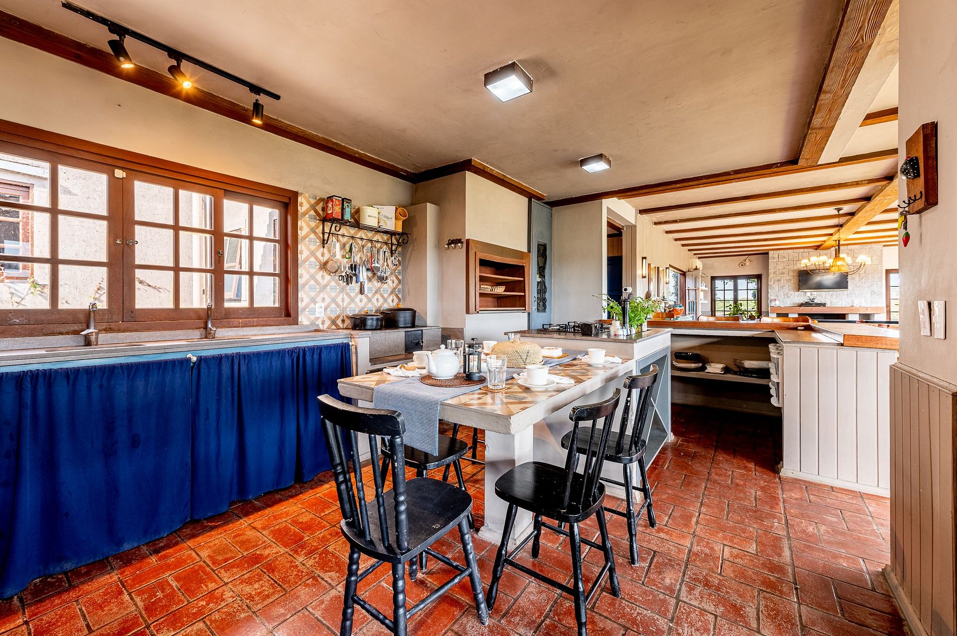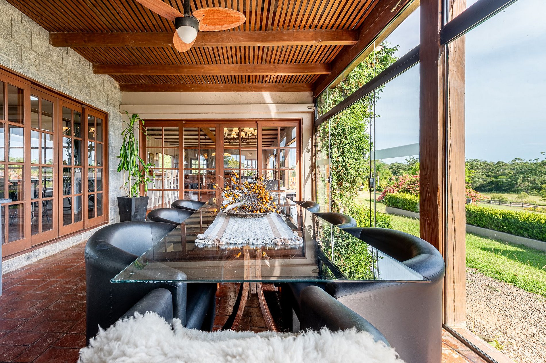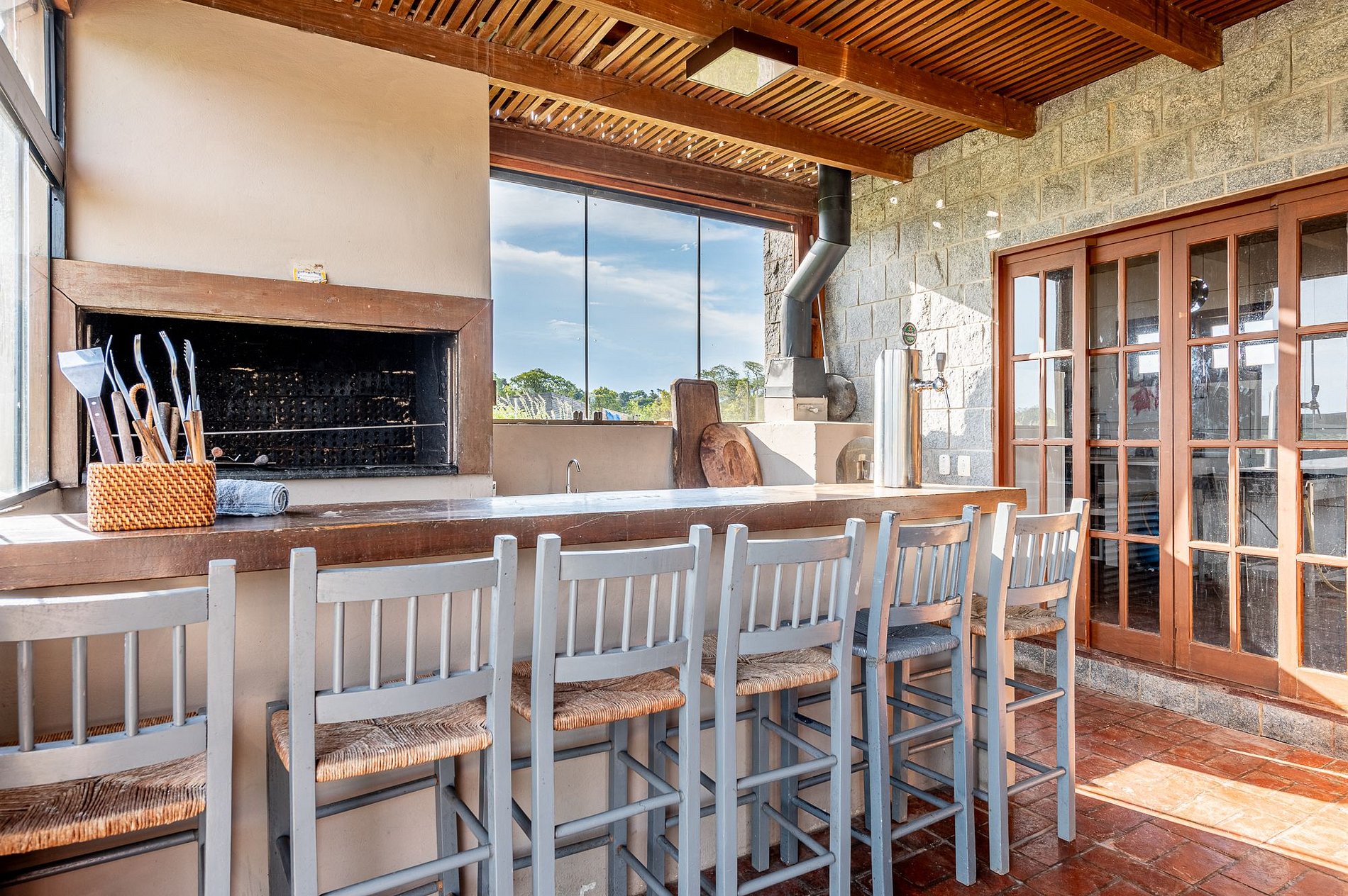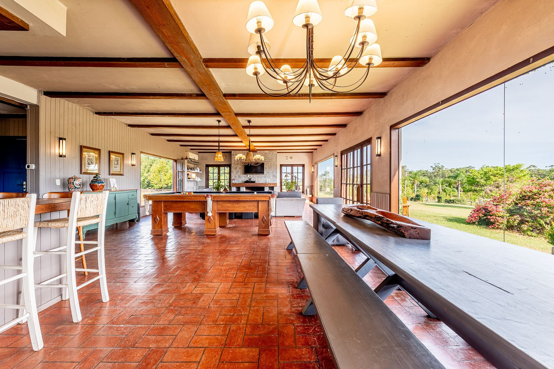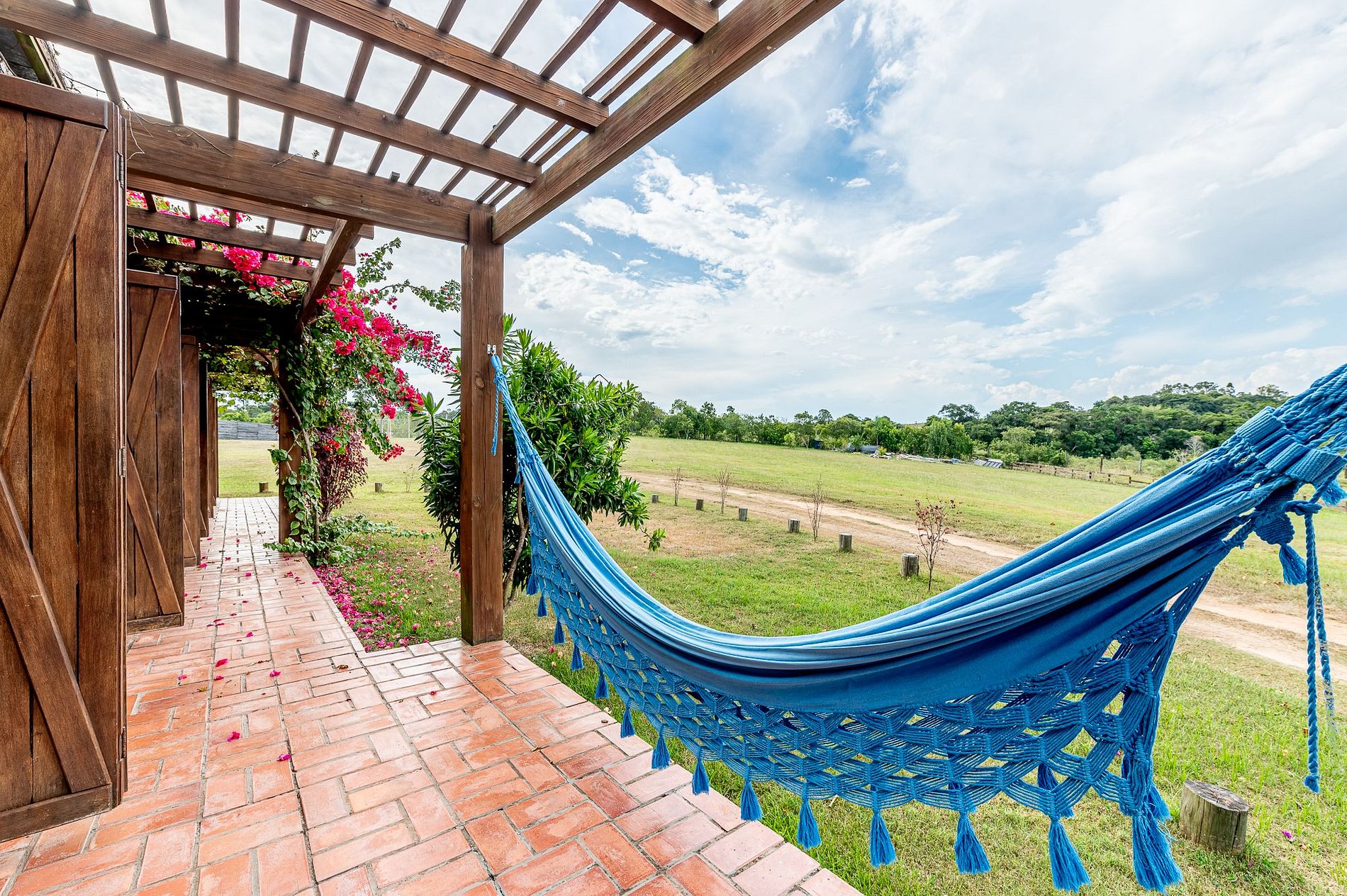 Além da experiência de estar numa casa de campo cercada da natureza e estilo, em seus mais de 300 m2 ela conta com: