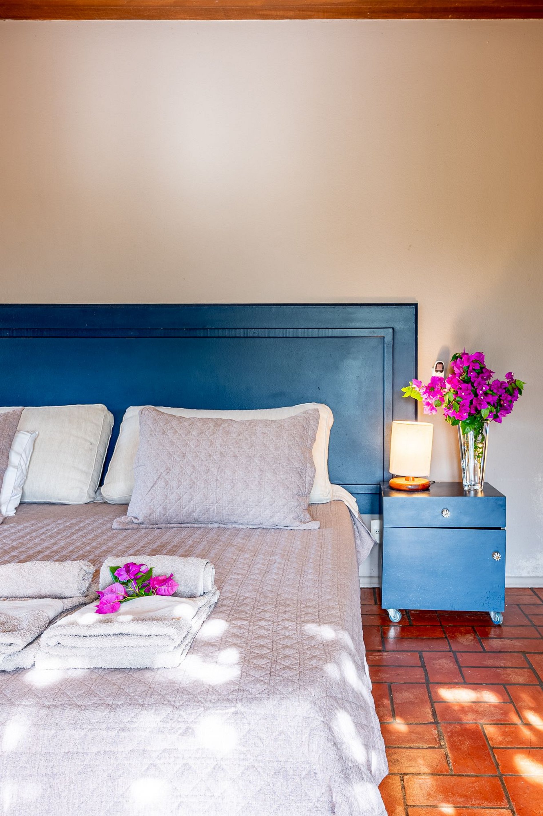 A casa recebe para hospedagem até 10 pessoas acomodadas em camas.