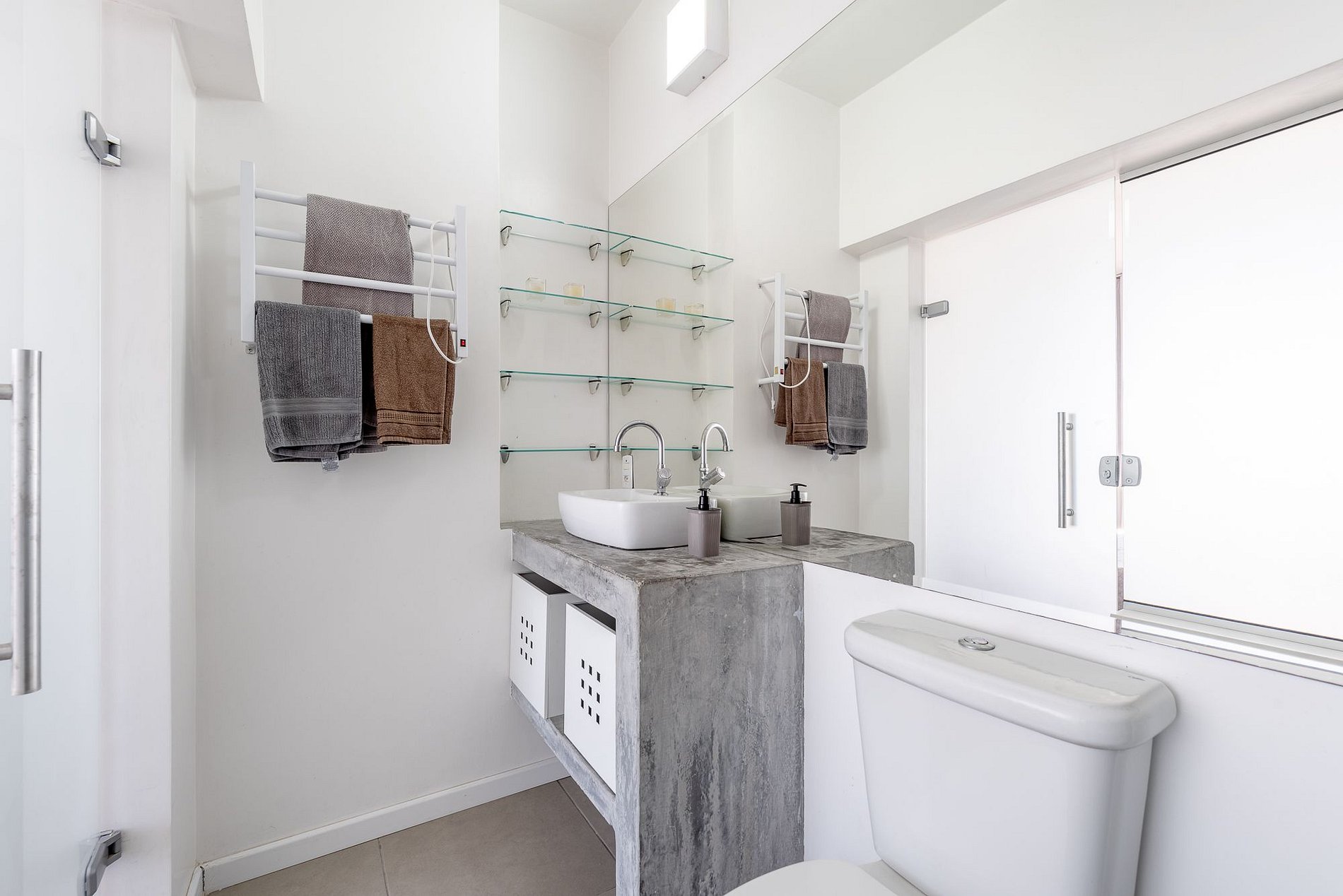 - O apartamento possuí dois banheiros. Um dentro da suíte e outro no corredor atendendo os outros dois dormitórios. Ambos são equipados com itens básicos como toalhas, shampoo, condicionador.