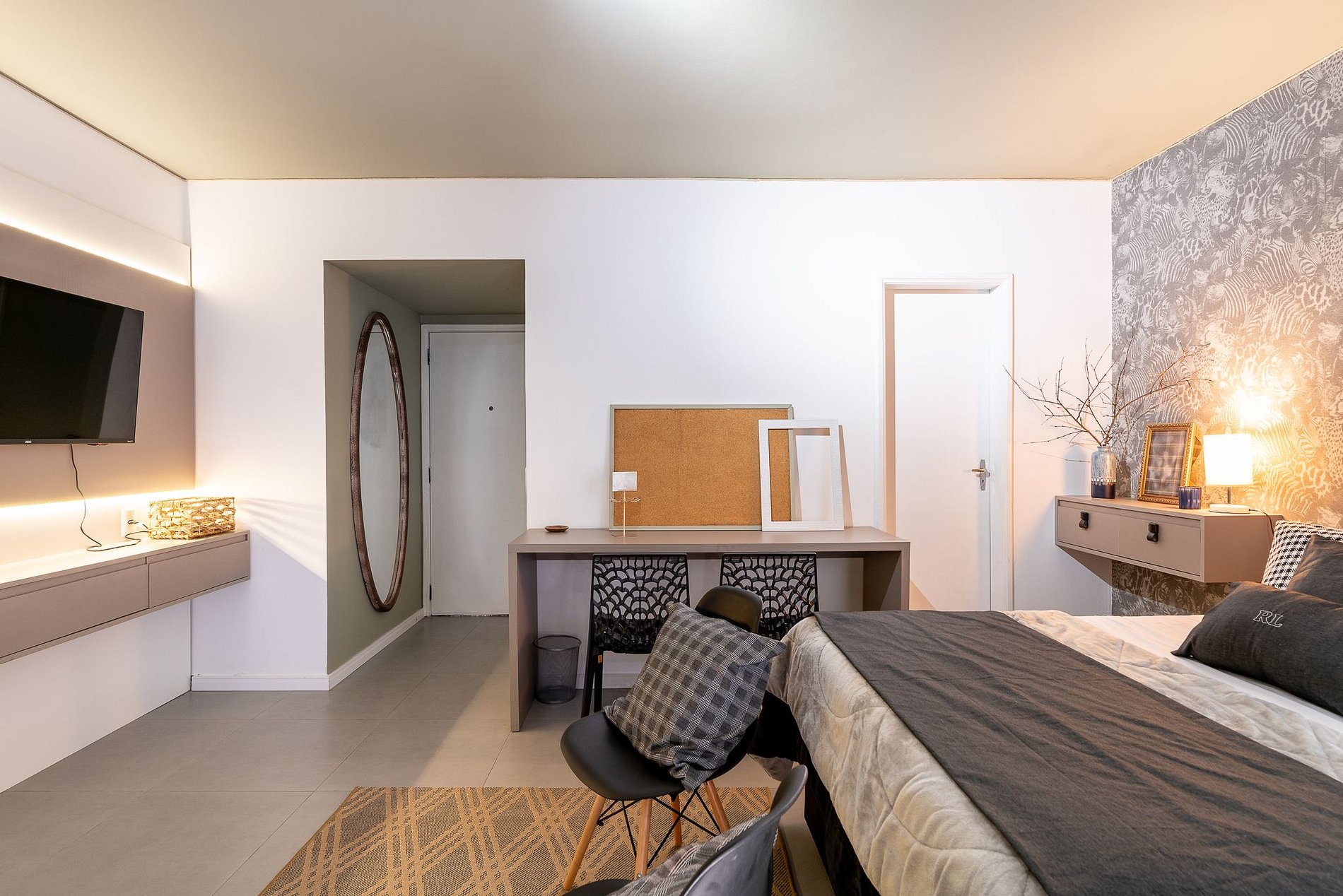 Este apartamento é o refúgio perfeito para quem busca elegância e praticidade em um ambiente contemporâneo. Com uma paleta de cores sóbrias em tons de cinza e preto, cada detalhe foi pensado para criar um ambiente acolhedor e ao mesmo tempo sofisticado. O equilíbrio perfeito entre design e funcionalidade