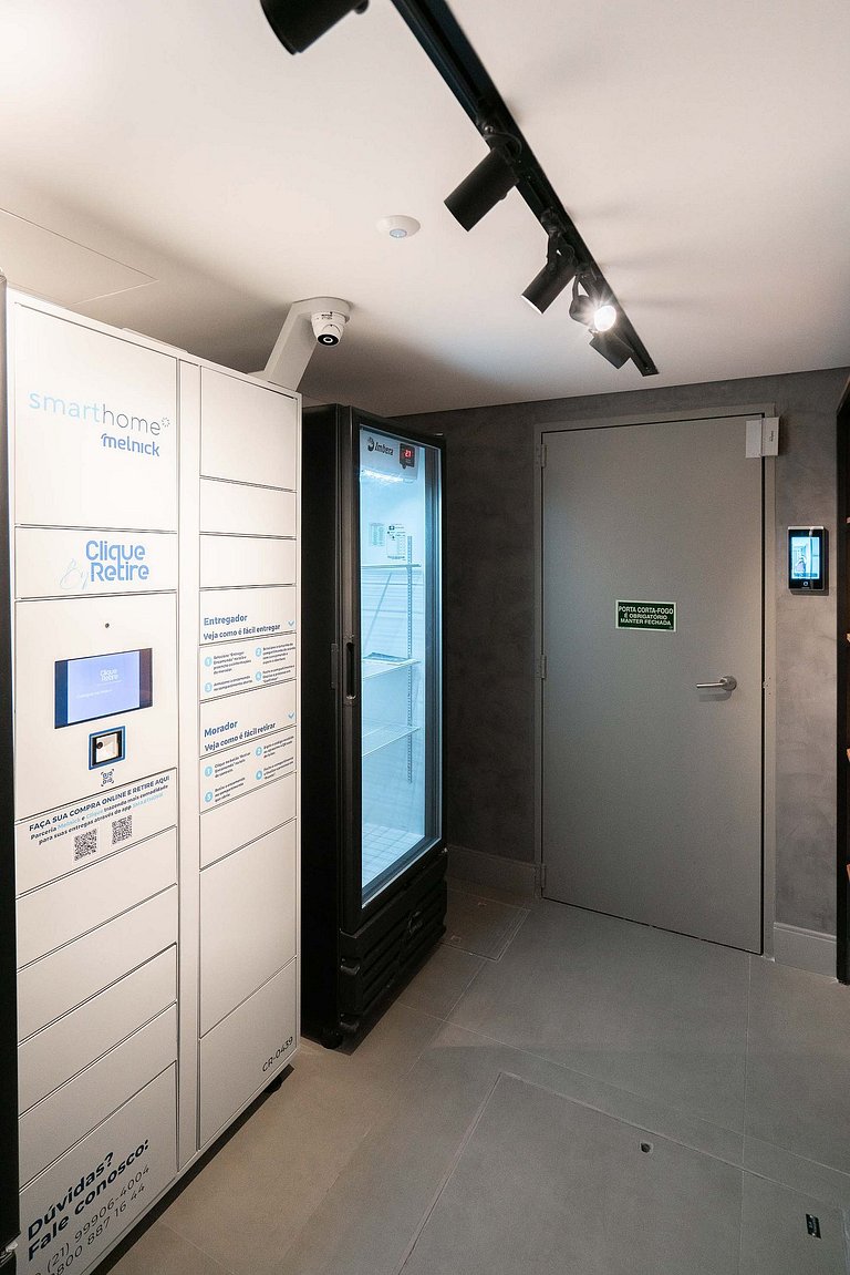 O condomínio também possuí no saguão uma máquina de vending machine para compra de snacks. O pagamento é realizado via aplicativo.