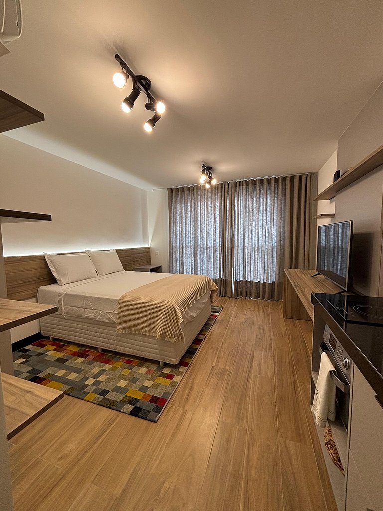 O Studio Aurora, localizado no acolhedor prédio GO24, foi pensado para proporcionar uma experiência confortável e tranquila. Com uma cama de casal aconchegante, cozinha totalmente equipada, Wi-Fi rápido e ar condicionado split, tudo foi preparado para que você se sinta em casa. Sua localização central permite fácil acesso aos melhores pontos da cidade, tornando este espaço a escolha ideal para quem busca conforto e praticidade em um ambiente acolhedor e convidativo.