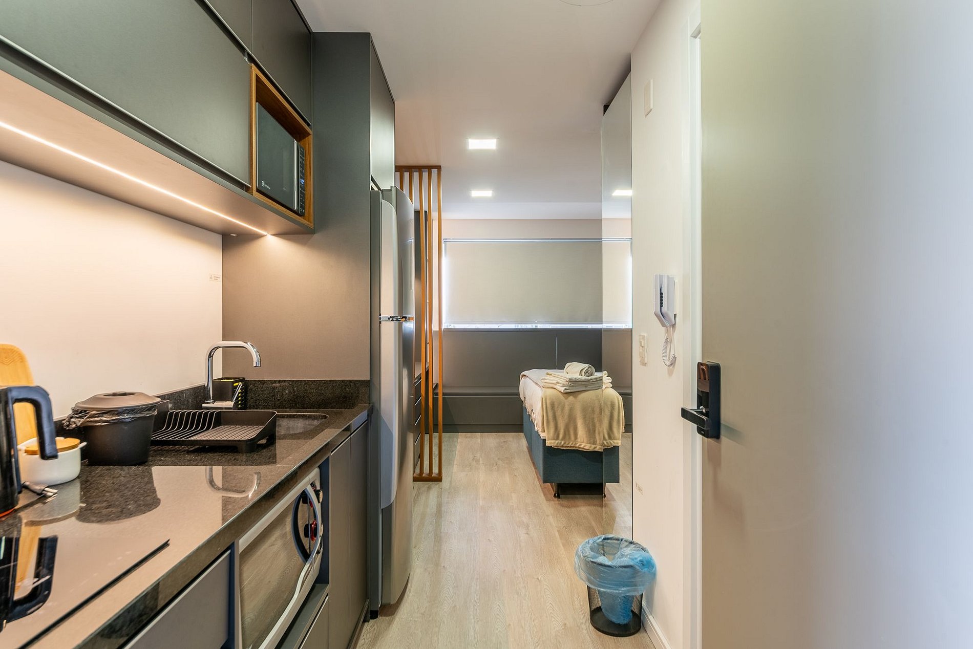 O studio oferece toda a estrutura necessária para uma estadia confortável e prática. Confira os itens disponíveis: