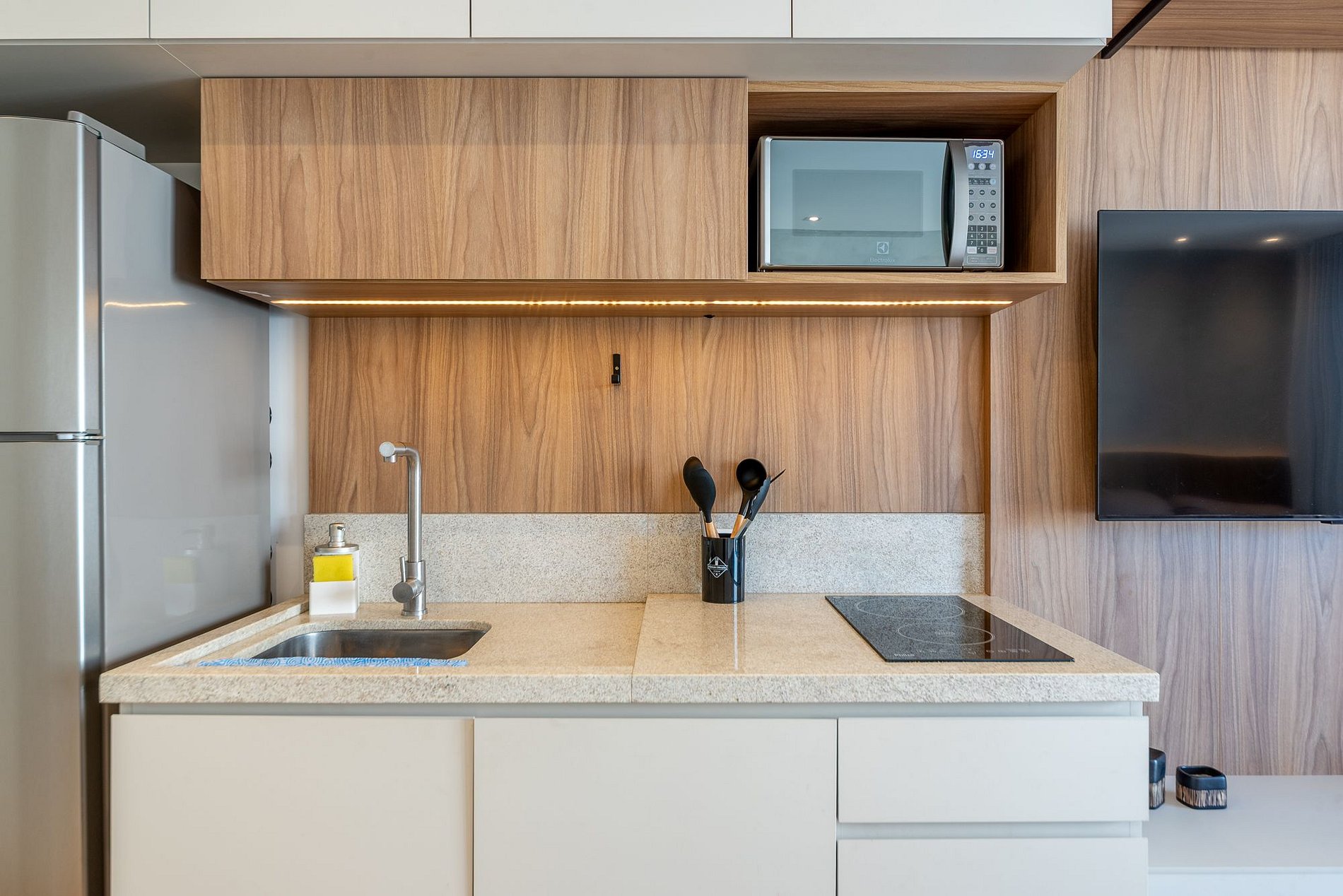 O studio oferece toda a estrutura necessária para uma estadia confortável e prática. Confira os itens disponíveis: