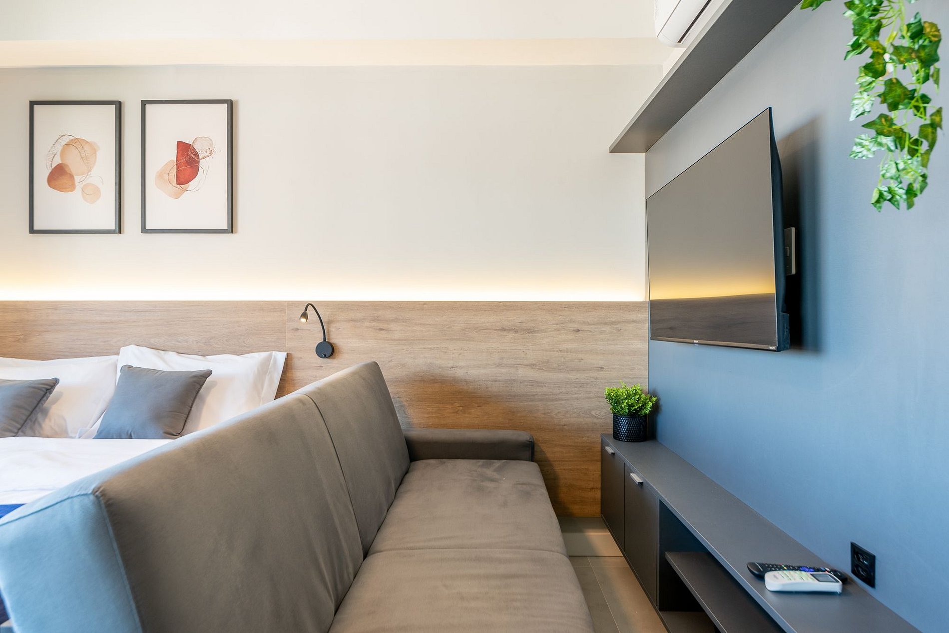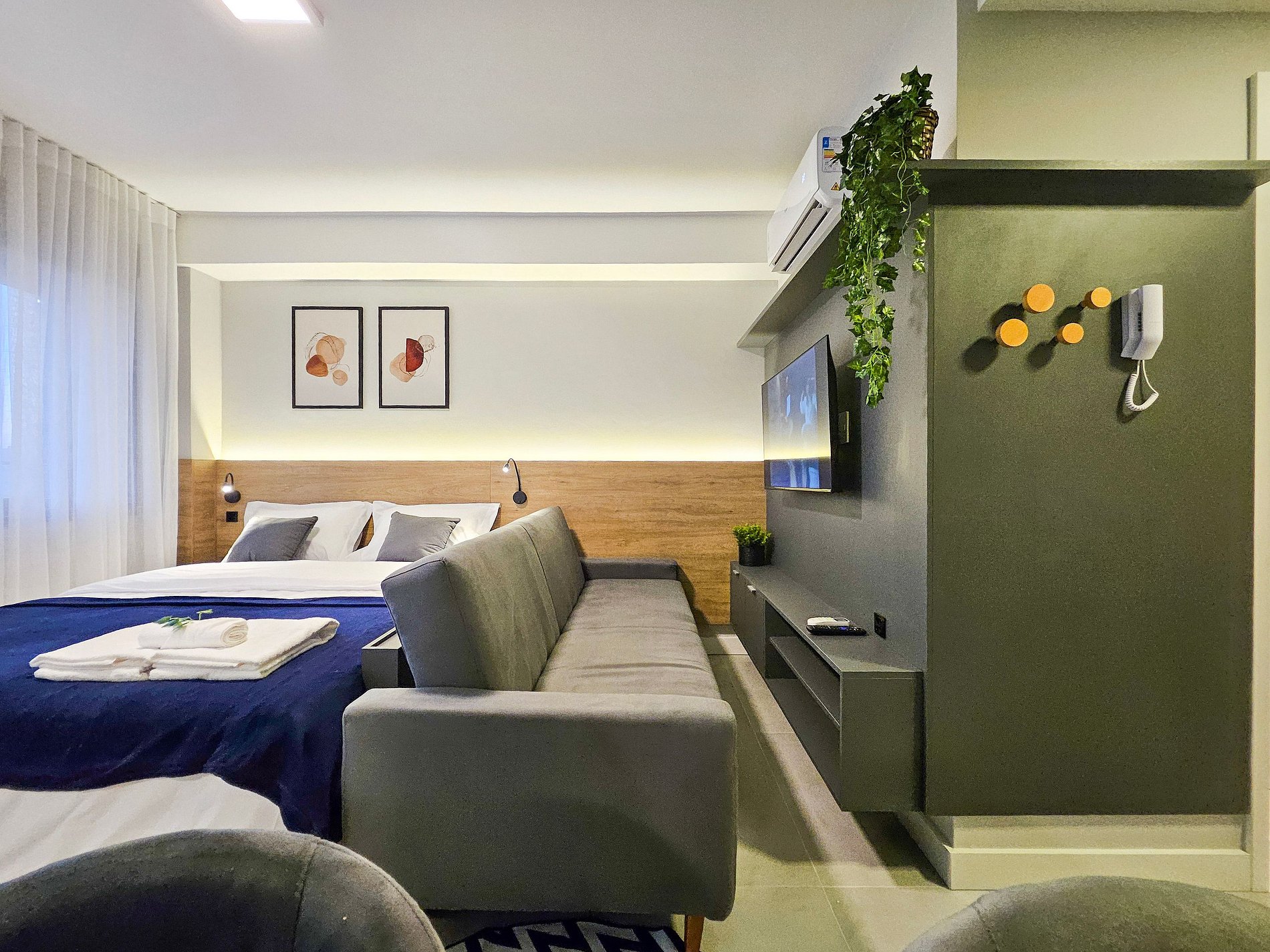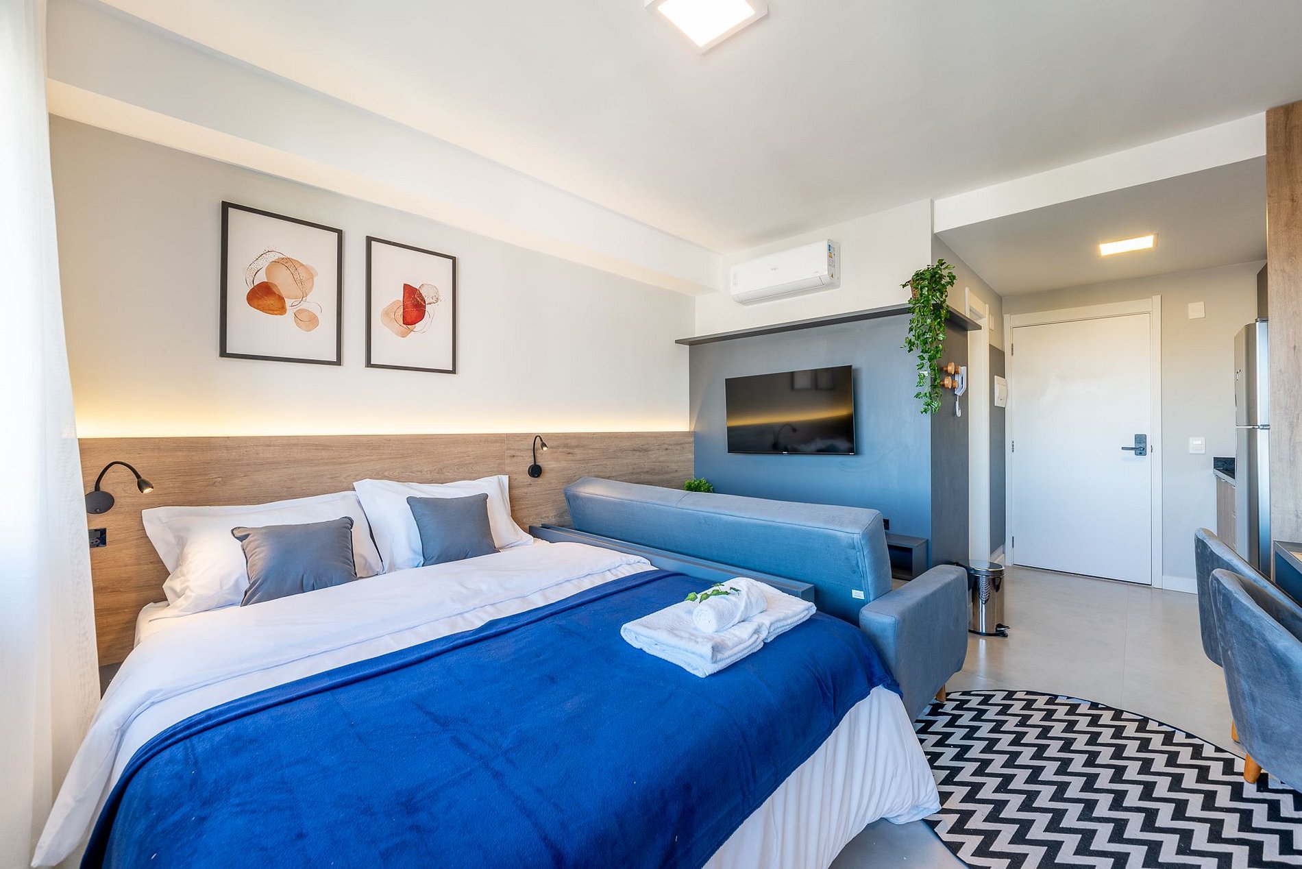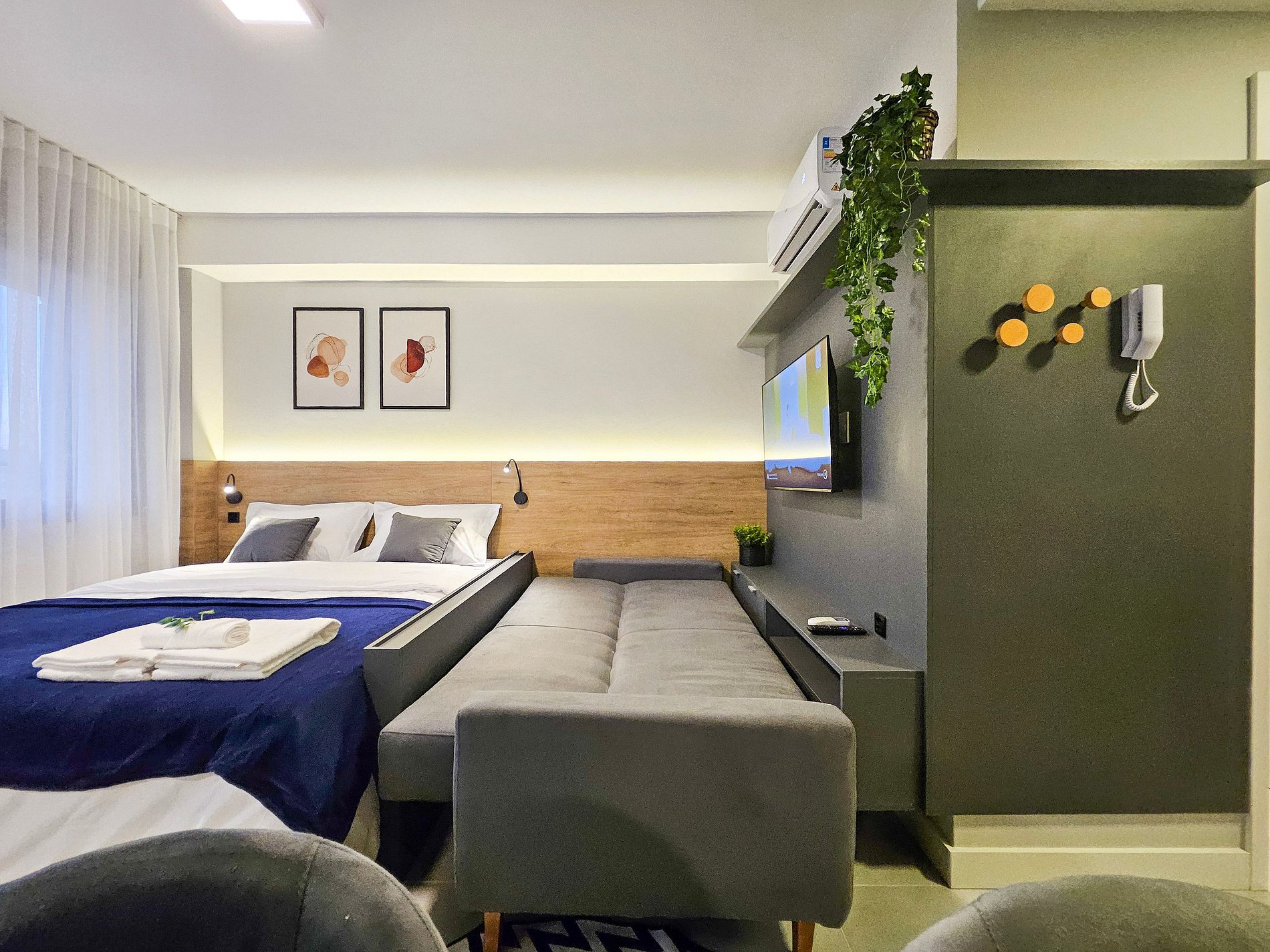Importante: O apartamento é preparado para receber duas pessoas em cama de casal. Caso os hóspedes prefiram dormir separadamente, será necessário solicitar enxoval extra para o sofá-cama (ou cama auxiliar). Esse serviço pode ter custo adicional e precisa ser combinado antes da reserva.