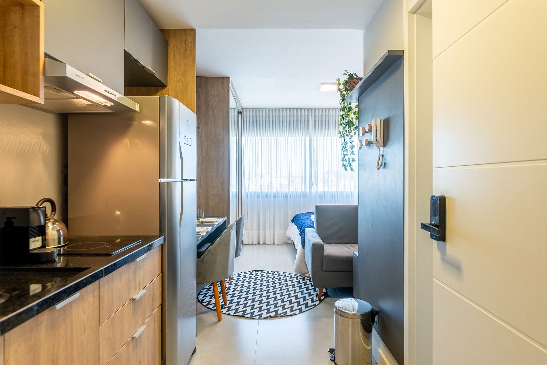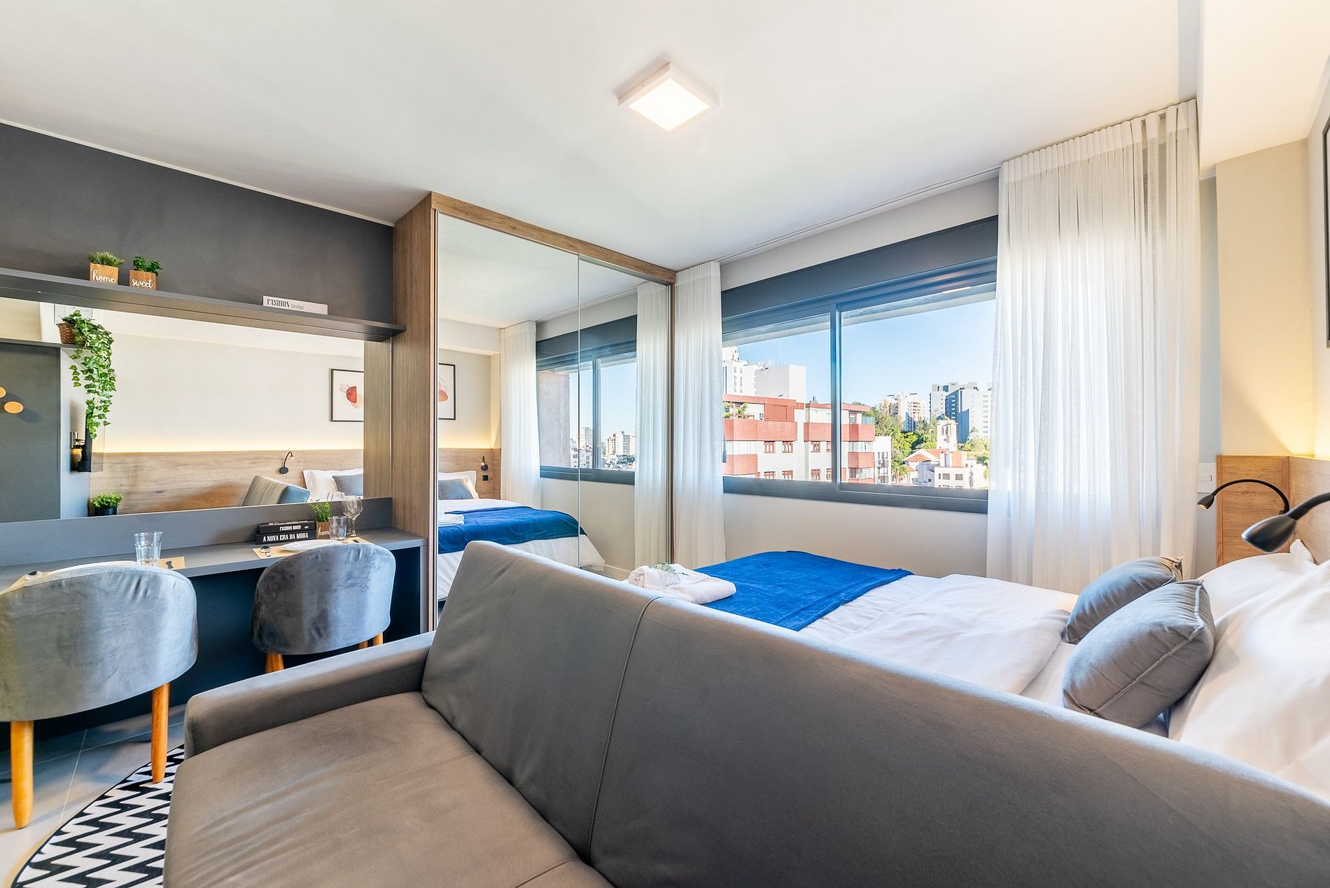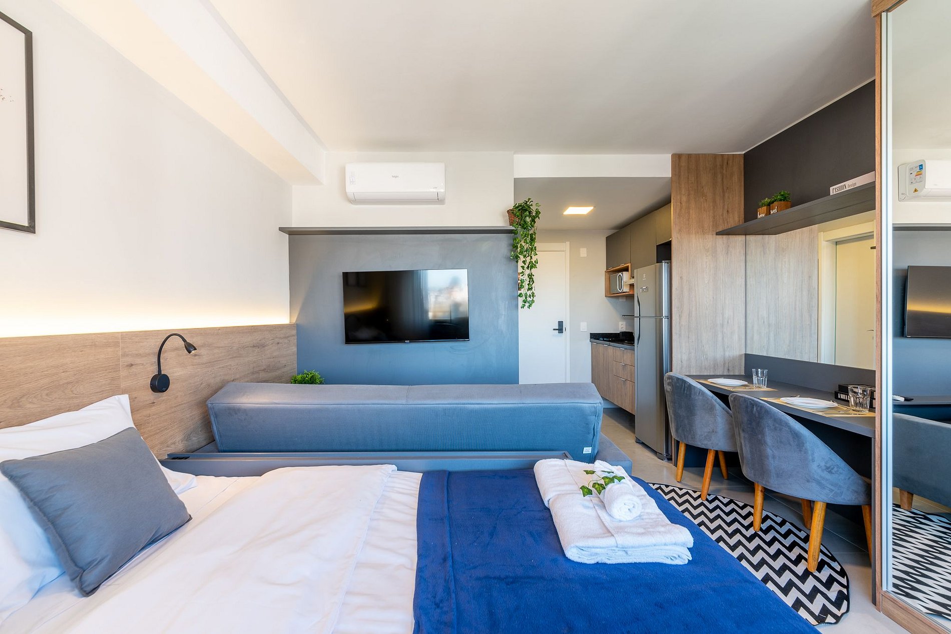 No 8º andar do Skyline Parque Moinhos, o Studio Noma une conforto, estilo e praticidade. Cozinha completa, cama de casal, sofá-cama, ar-condicionado, Smart TV e blackout para noites perfeitas. Acomoda até 3 pessoas com conforto. Mesa ideal para trabalho ou refeições. Banheiro moderno e ambiente acolhedor. Perfeito para relaxar ou produzir no bairro mais desejado de POA. Reserve e sinta-se em casa!